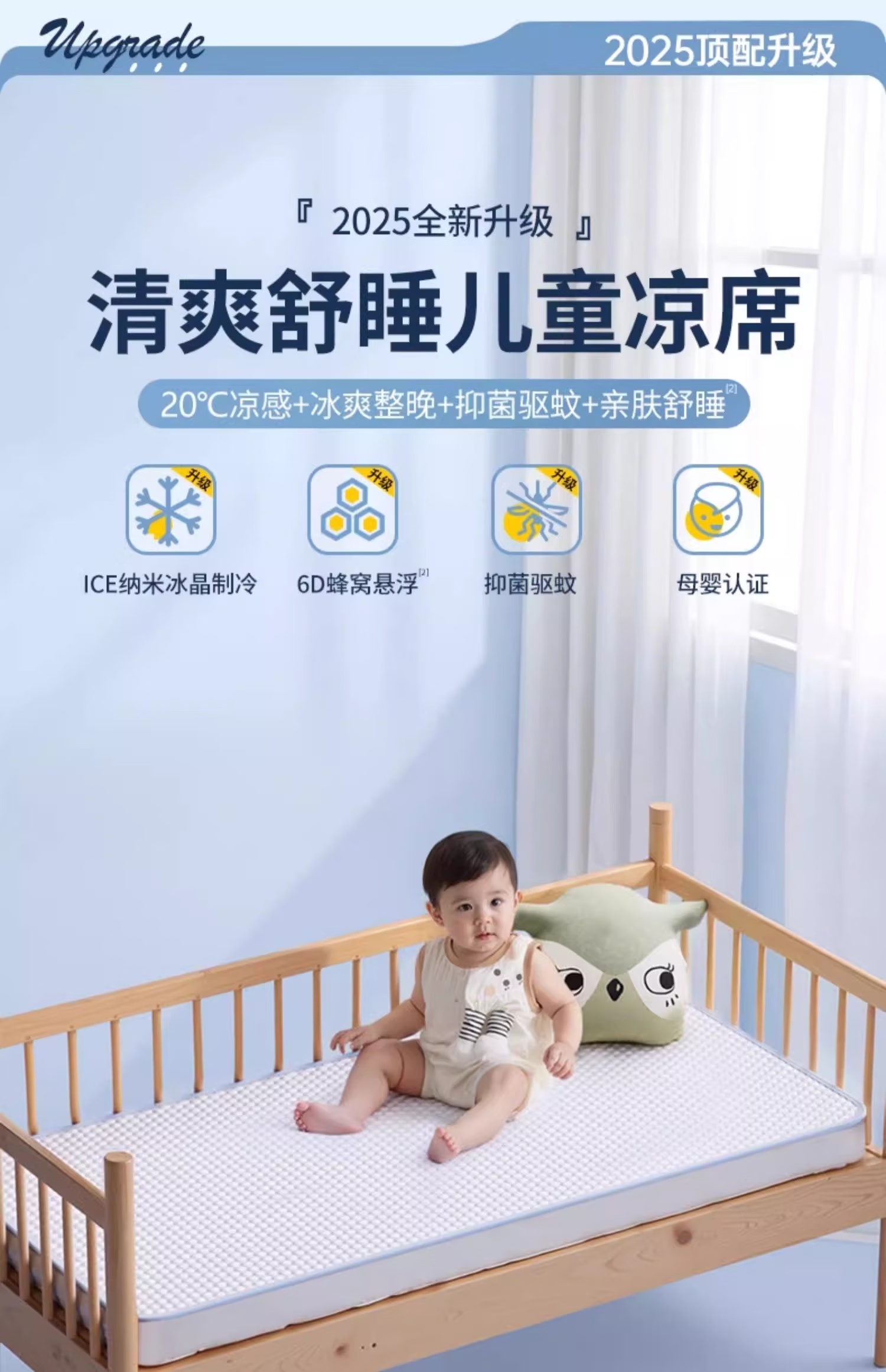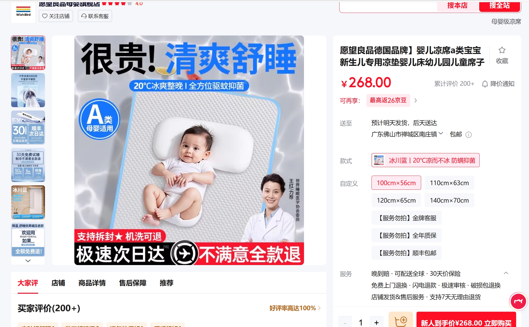 【京东热卖268元】愿望良品 婴儿凉席 A类宝宝专用儿童席子 20℃凉而不冰 防螨抑菌 冰川蓝