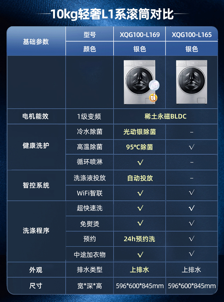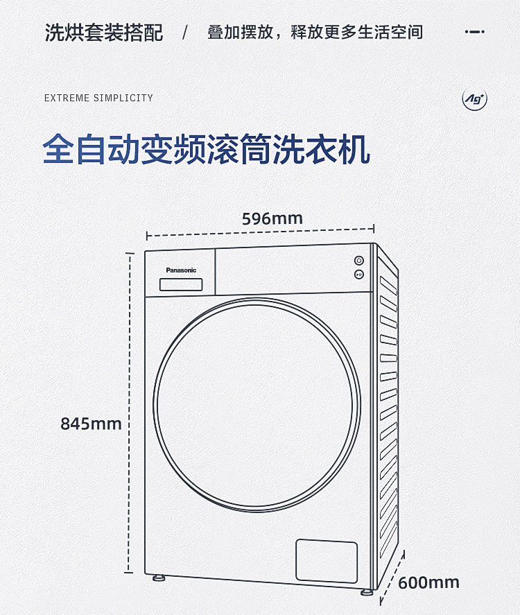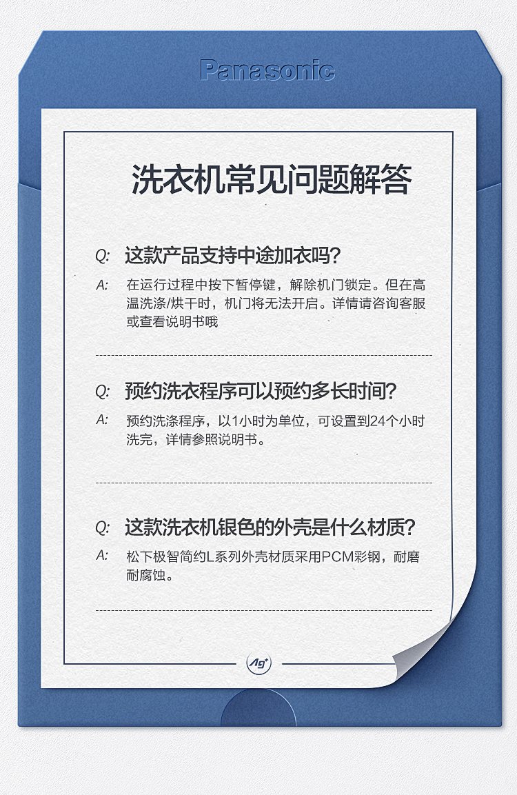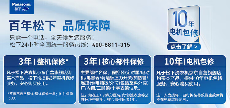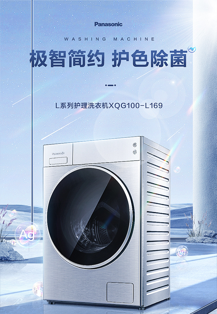 松下(Panasonic)滚筒洗衣机全自动10kg 光动银常温除菌 智能投放 洗衣免熨烫泡沫净 【门店颜值担当】XQG100-L169
