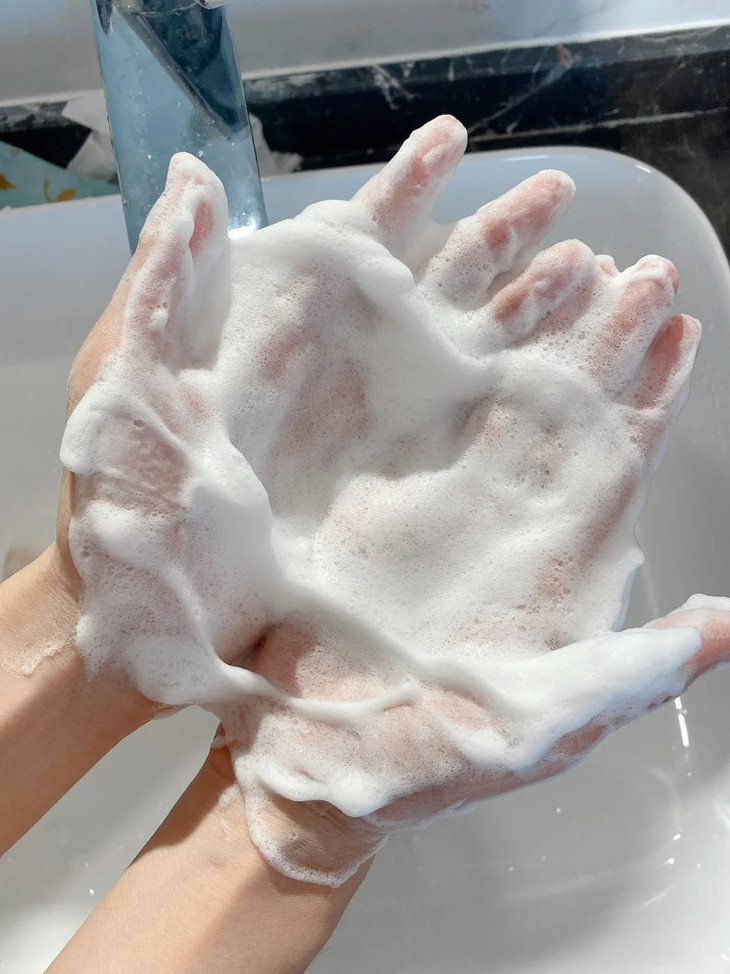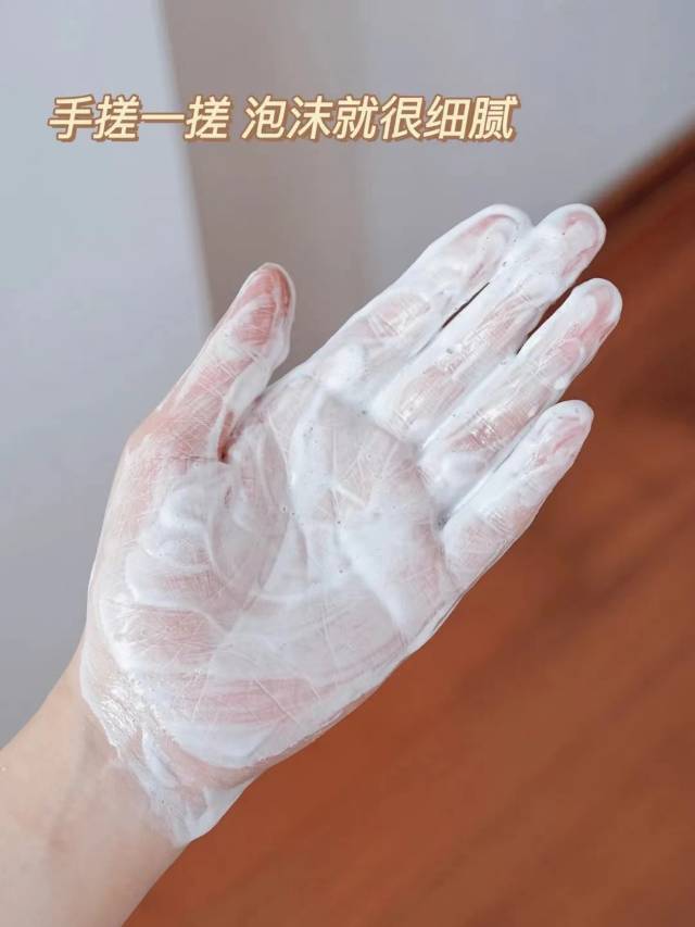 这款洁面的泡沫还挺丰富的💯 挤出来一点,轻轻搓揉〰 就有大量细腻丰盈的泡沫🫧 绵密、有棉花糖的质感 就算不小心进了眼睛, 也没有刺痛感 👀
