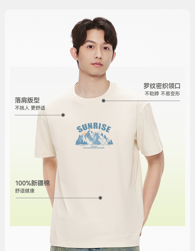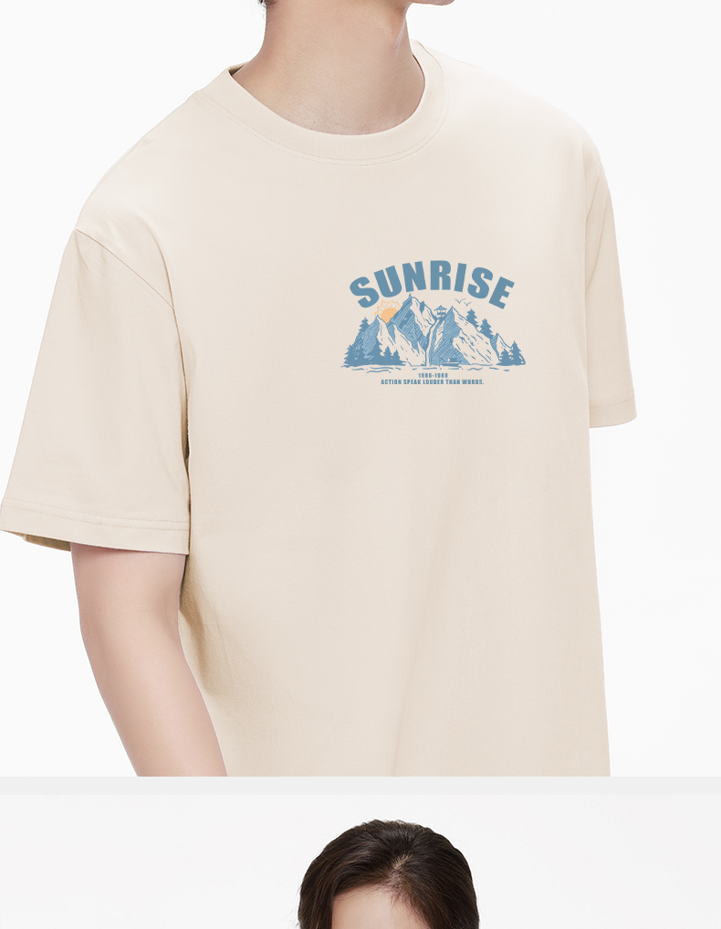 「棉的美学」230G重磅短袖t恤男夏季2025新款日照金山印花上衣潮