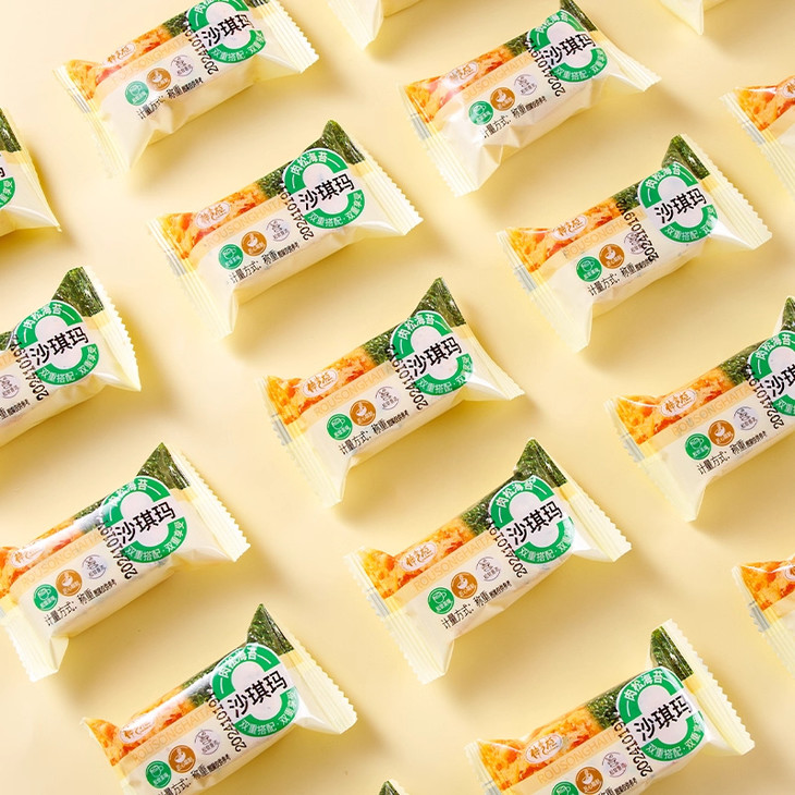 【商品名称】肉松海苔沙琪玛 【上架规格】到手约100包(净重750g左右) 【保质期】6个月 【生产日期】最新(随批次更新) 【储存条件】置于阴凉干燥通风处 【发货地】山东临沂 【生产地】山东临沂 【发货快递】邮政,圆通,中通随机发货 【不发货地区】新疆、西藏、青海、港澳台 【加运费地区】北京、上海、深圳➕1元/件,甘肃、宁夏、内蒙➕2元/件 【发货时效】72小时 【售后规则】 1、食品类不支持7天无理由退换货 2、若收到产品有质量问题或者破损少件,请签收24小时内对产品拍照+快递箱面单照片联系售后处理 3、个人口味问题不在售后范围内 【拦截/拒收费用】拦截/拒收/退货扣除3元