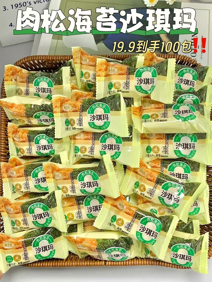 💰19.9到手约100包‼️【神掌柜 肉松海苔沙琪玛】每包不到💰2毛❗ 🔻鲜蛋制作🥚蛋香麦香浓郁,优质肉松➕鲜香海苔完美融合 🔻软 fufu 不粘牙、不掉渣☁️