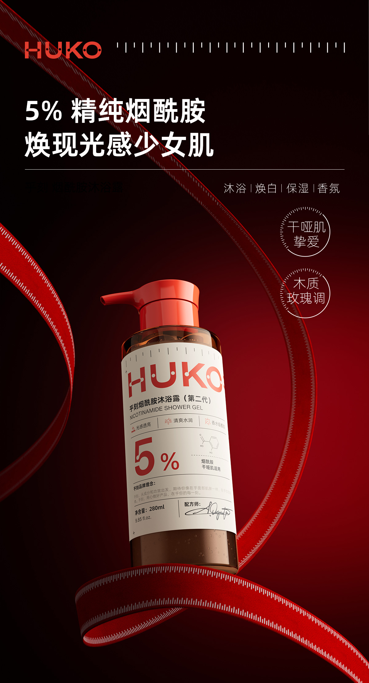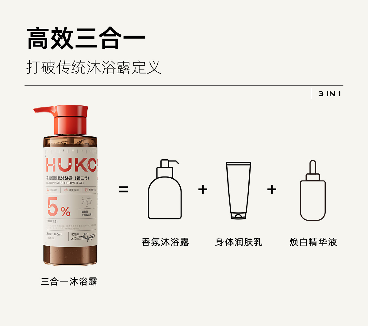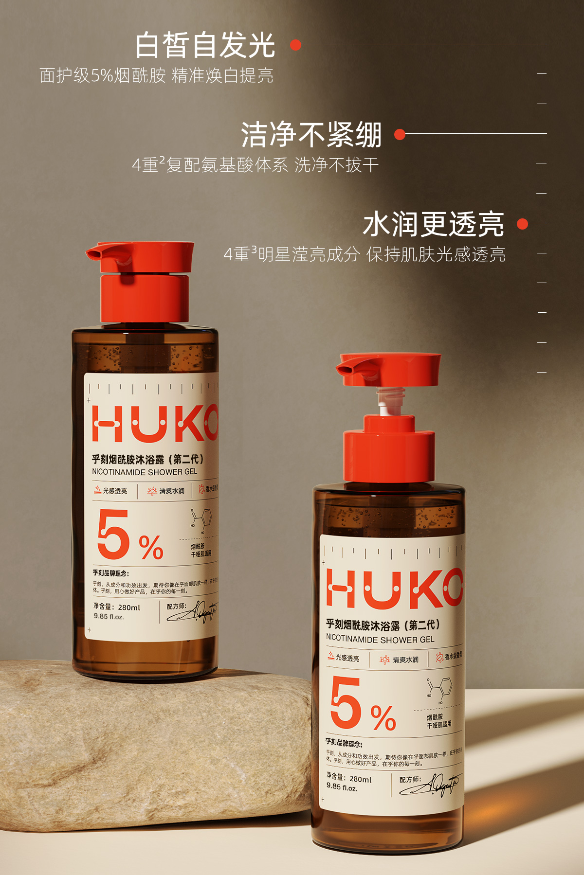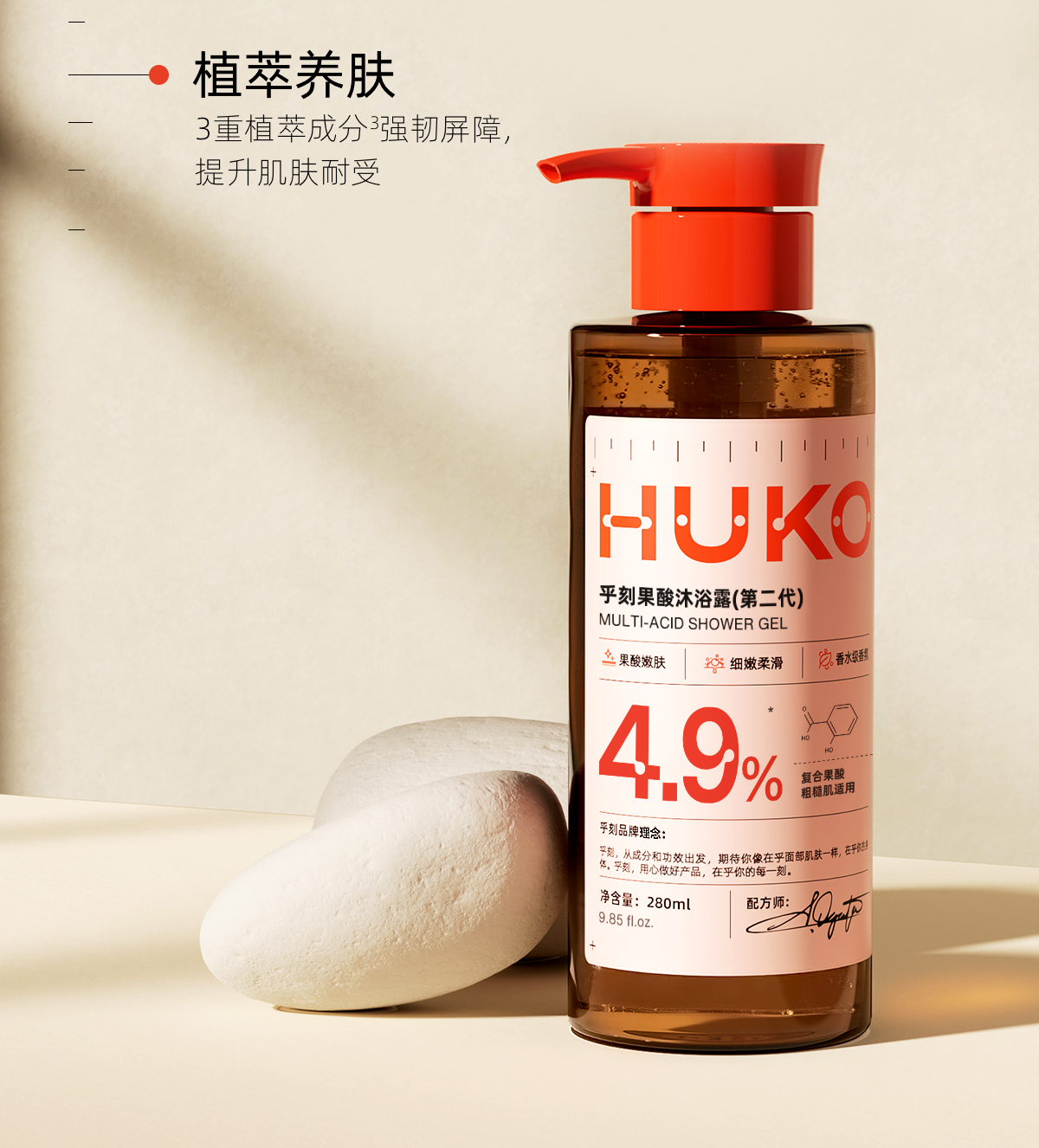 严选 | 乎刻沐浴露 280ml/瓶 果酸款/玻尿酸款/烟酰胺款 高效清洁 水润不紧绷