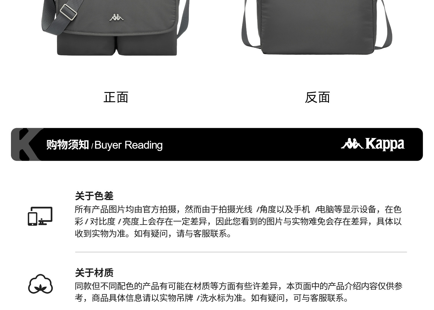 Kappa 卡帕背靠背休闲简约风翻盖斜挎包男女大容量通勤单肩包包K0GX8BD10