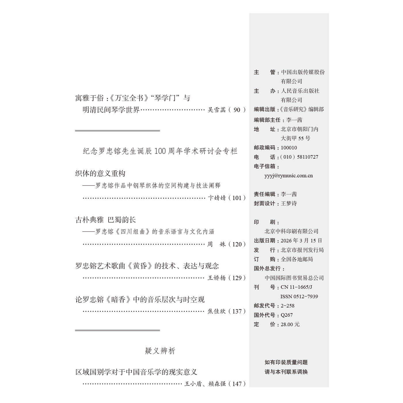 音乐研究 2026.2