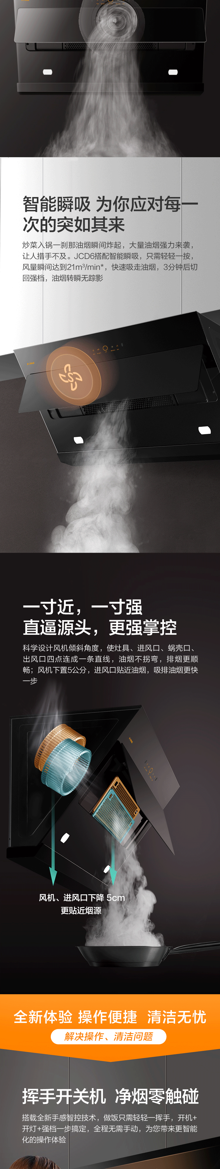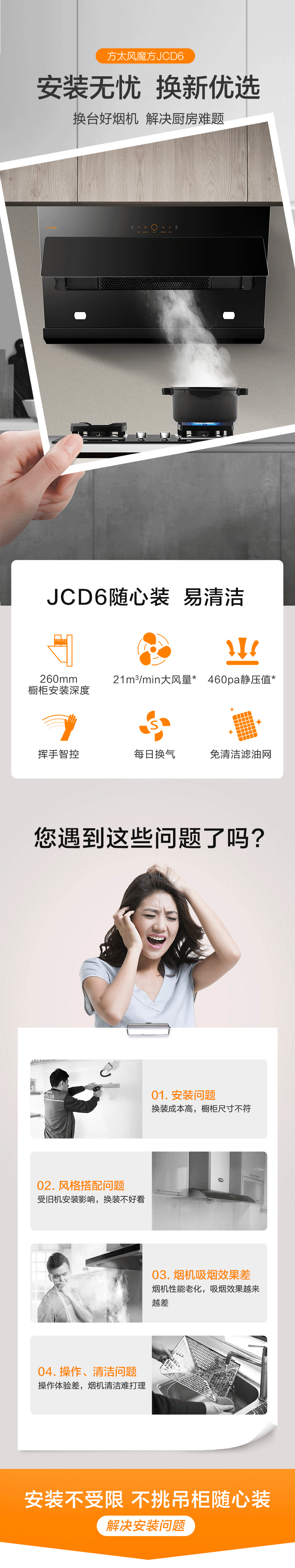 方太油烟机侧吸式抽吸油烟机近吸式7家用厨房脱排挥手智控新品21立方大风量一级能效烟灶套装JCD6+FD1B