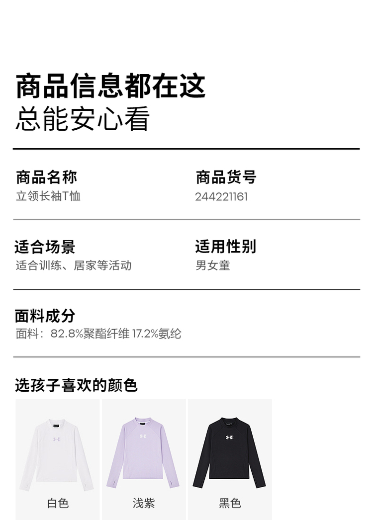 【12月-特惠福利】Under Armour安德玛儿童立领长袖T恤244221161超低折扣