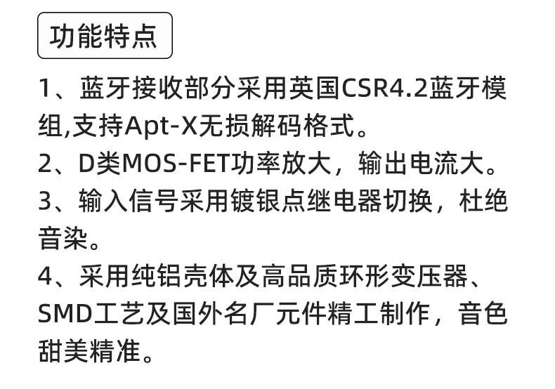 欧洲定制 Esxtnon 立体声高通蓝牙数字音频功率D类放大器 EA-B892x