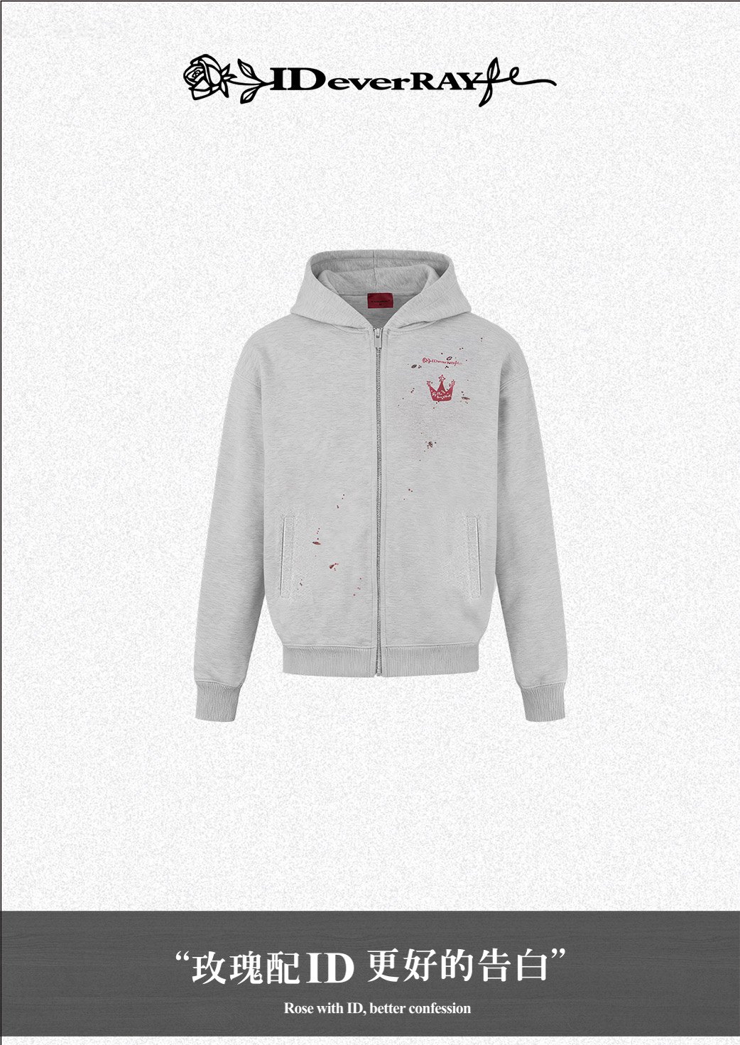 IDEVERRAY【陈立农联名款】加冕皇冠麻灰色卫衣开衫双开拉链加绒加厚温暖款情侣卫衣