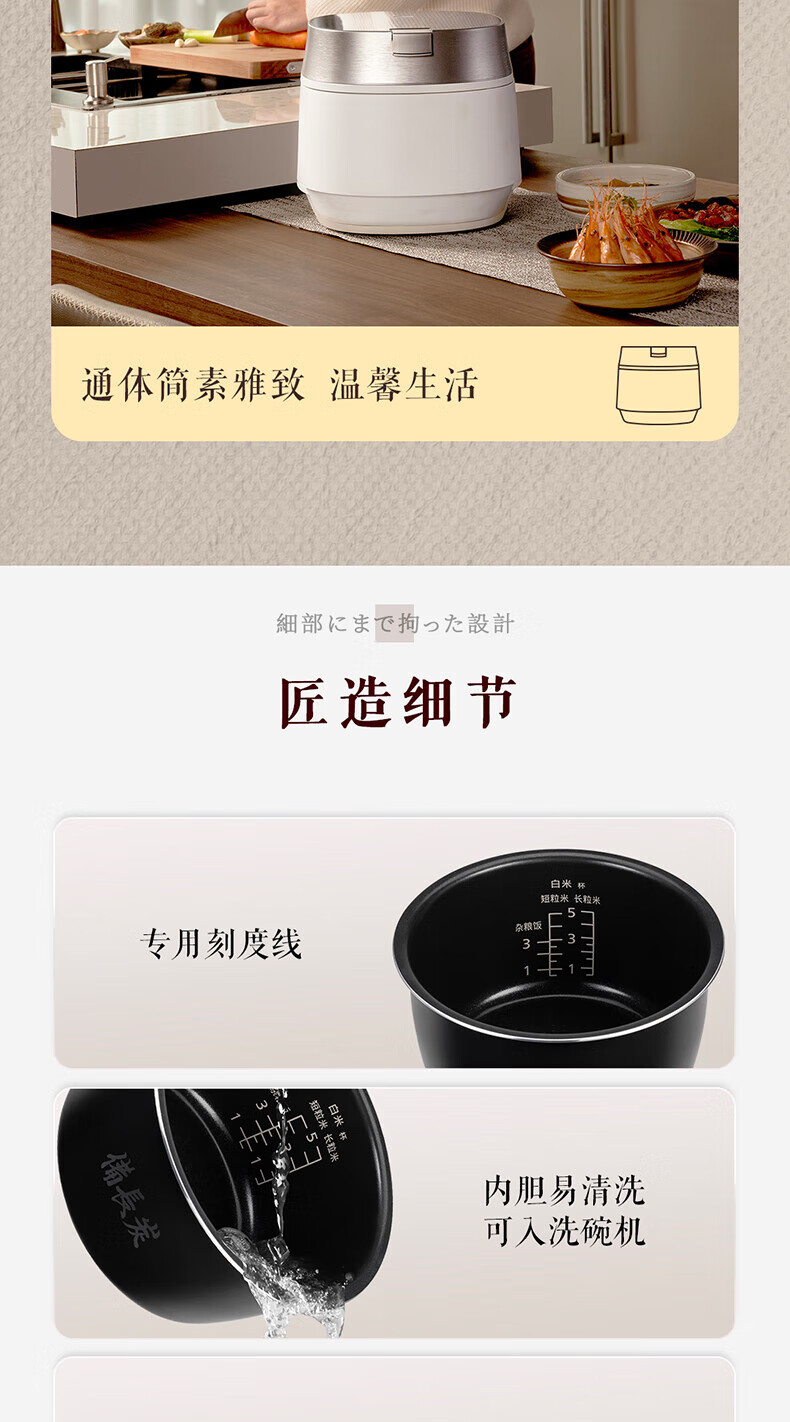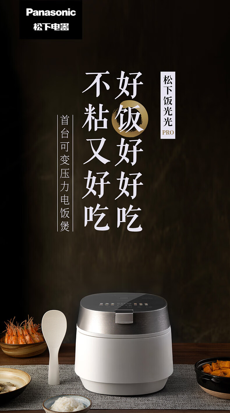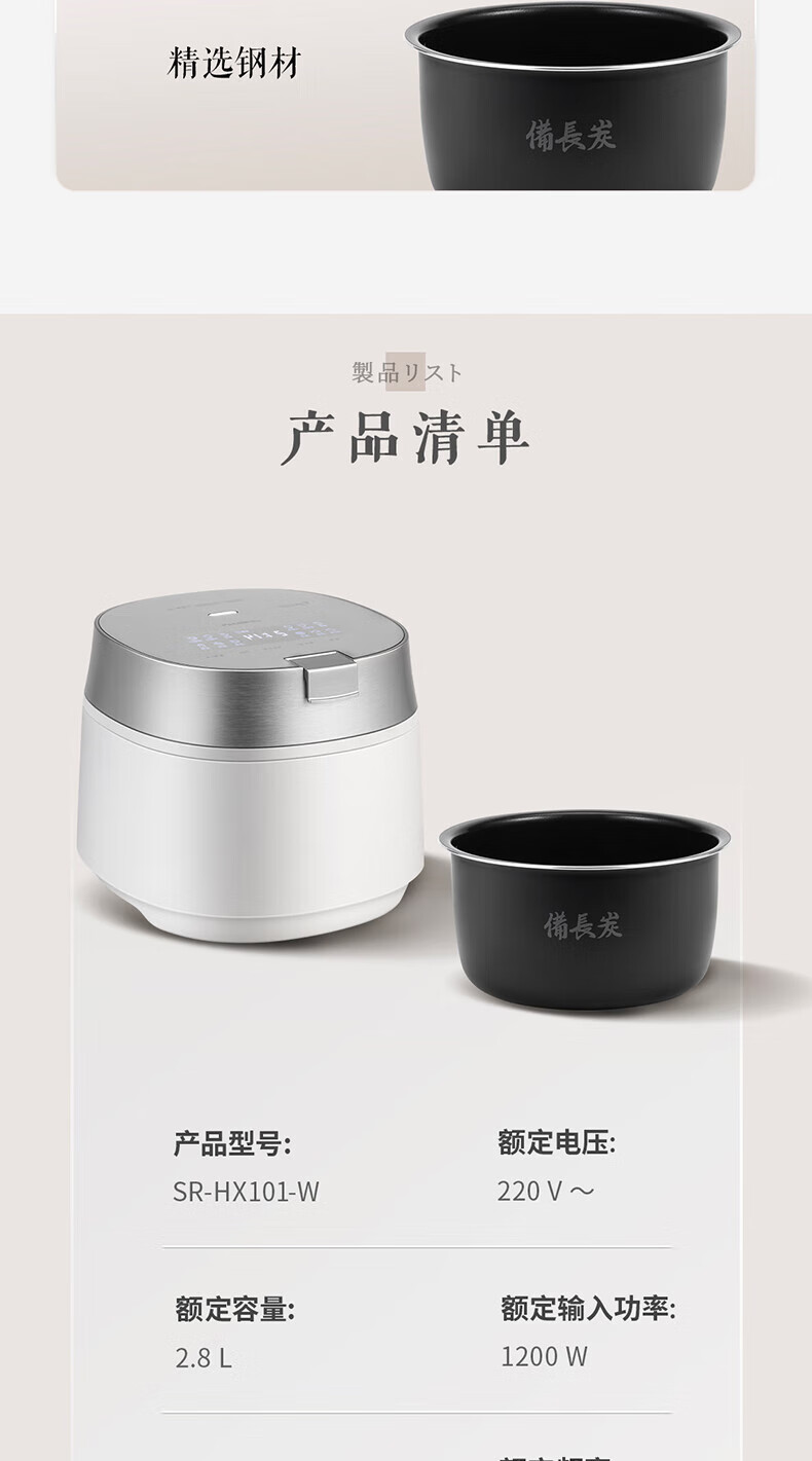 松下(Panasonic)电饭煲家用2-3人IH可变压 变频电饭锅备长炭不粘加厚内胆智能预约煮饭锅2.8升 SR-HX101-W_qb
