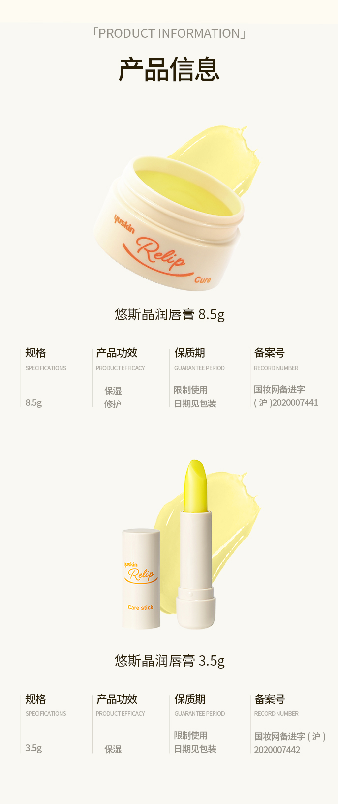 悠斯晶(yuskin)维生素修护润唇膏女保湿滋润干燥唇膜男学生淡化防干裂打底正品 入门润护型3.5g/滋养修护型8.5g_YK