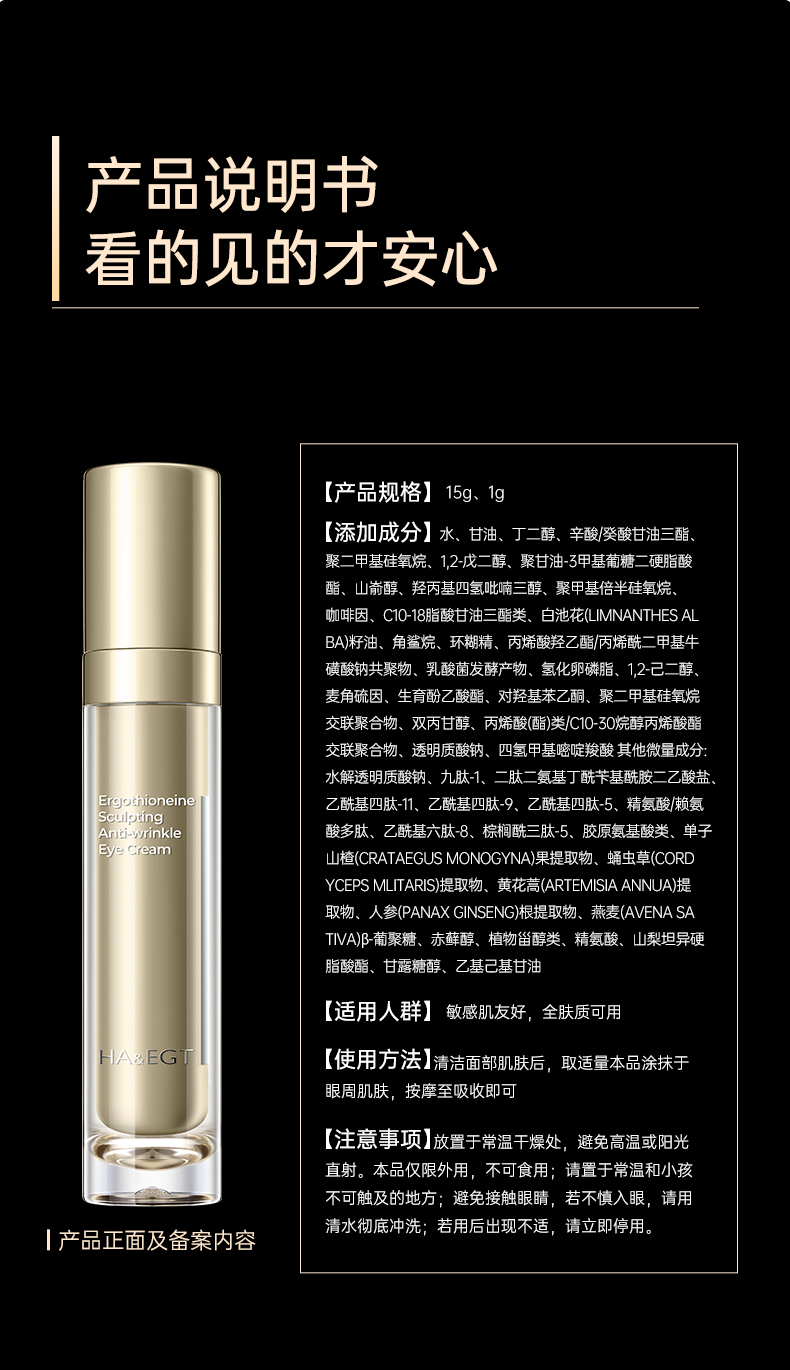 【八肽分工】玻麦研 5000+PPM麦角硫因塑颜紧致眼霜 15g/瓶 锚定表真皮张力深层胶原焕新生