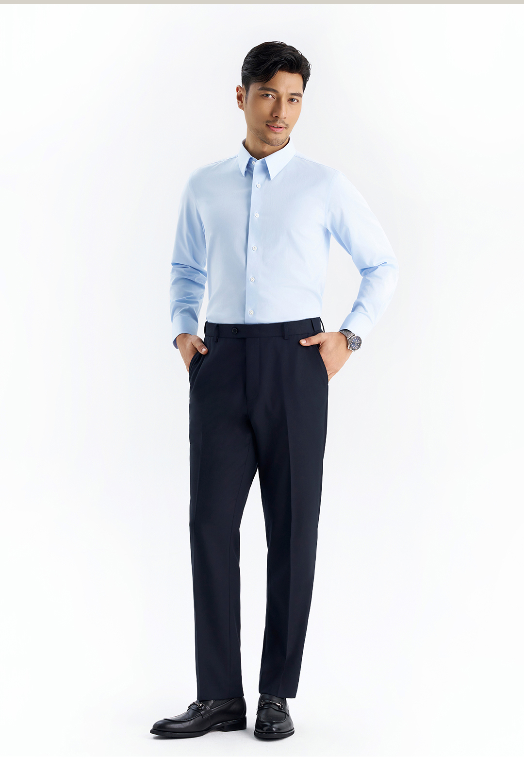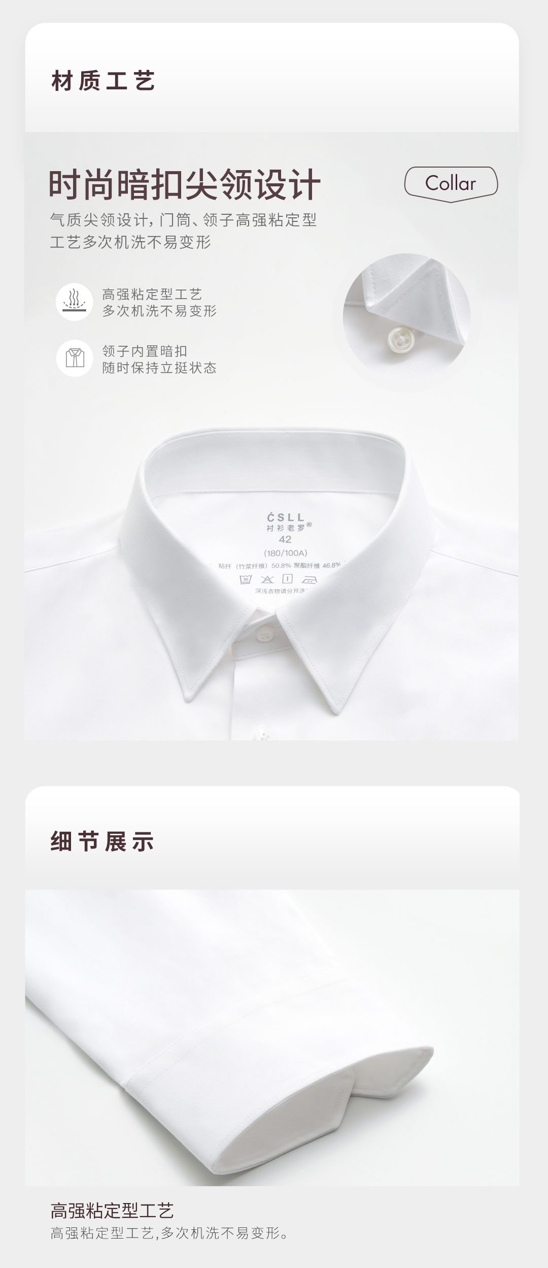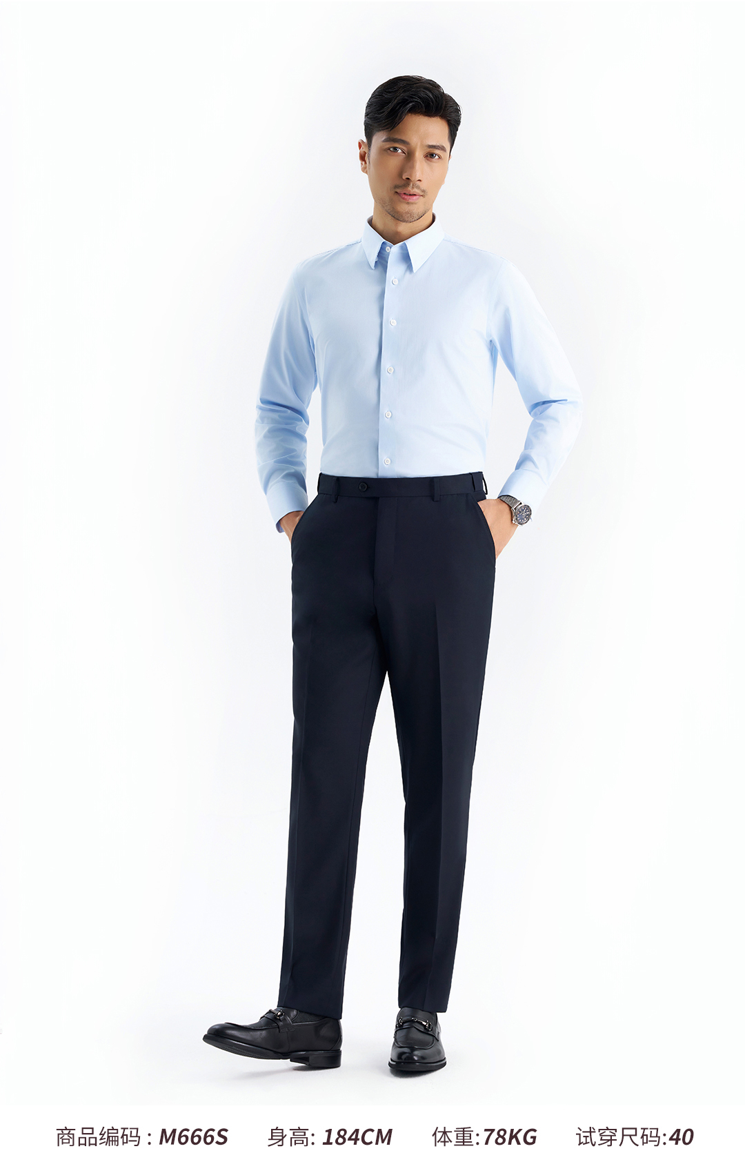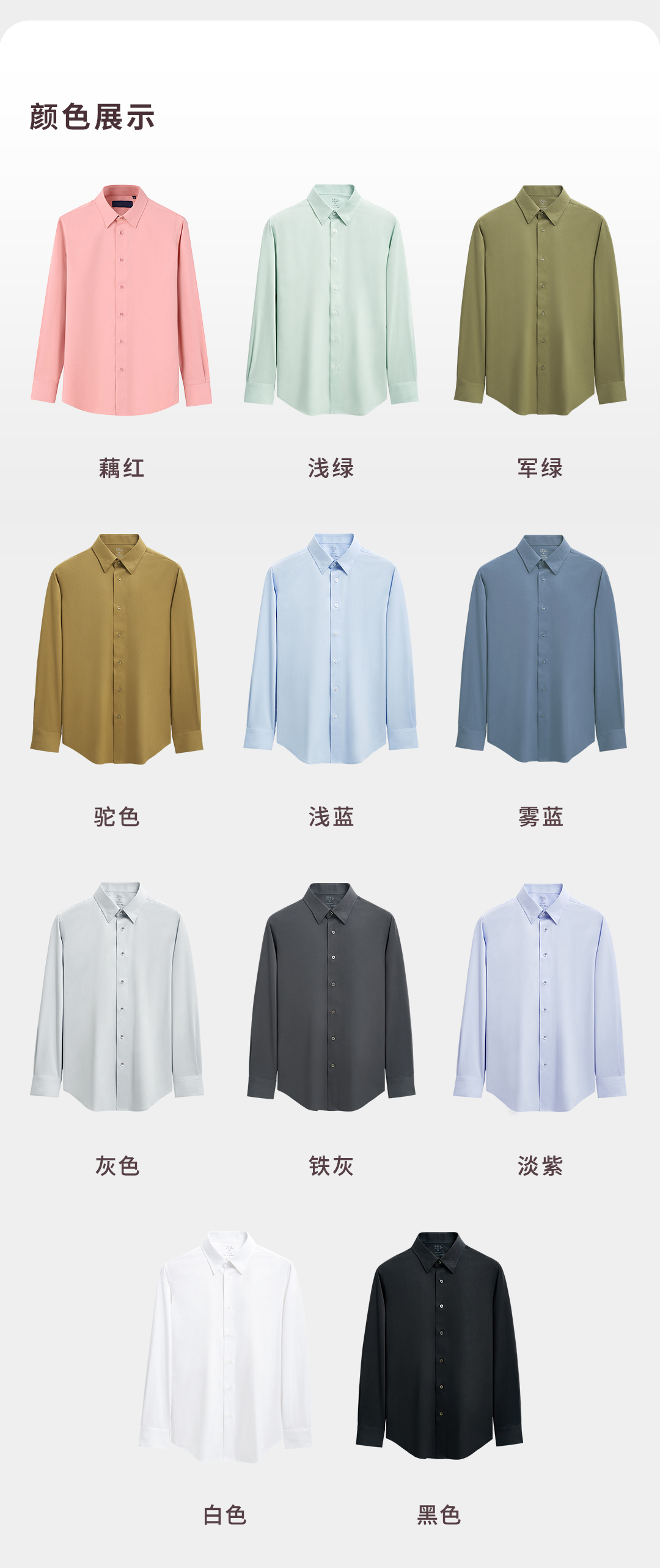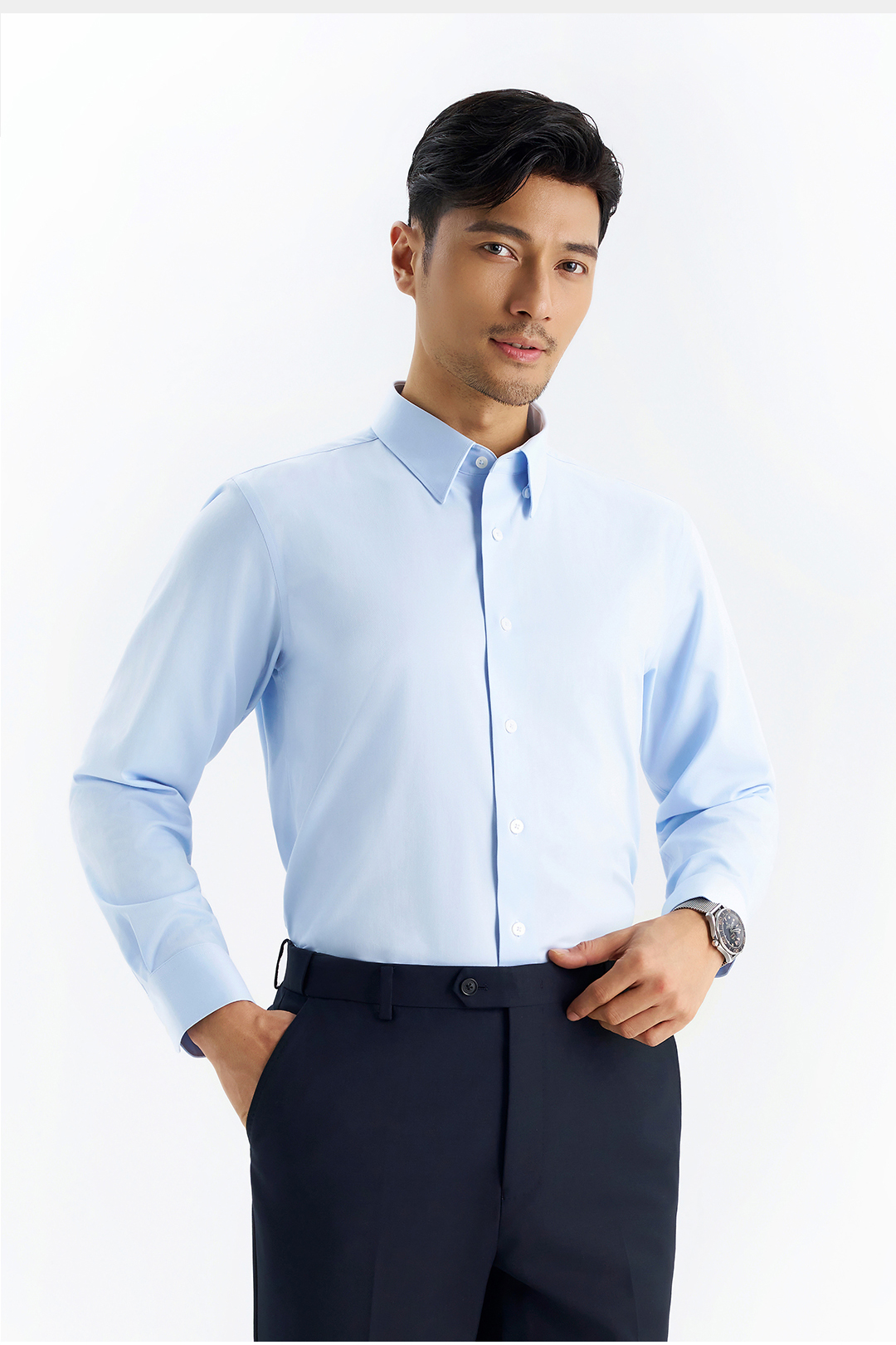 【凌志T5】暗扣领竹纤维抗皱长袖衬衫M666S