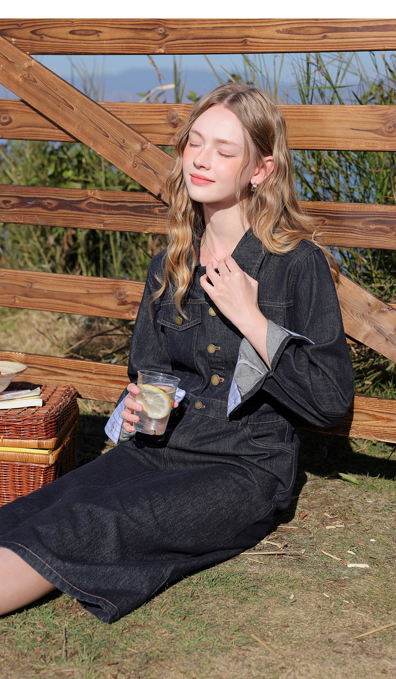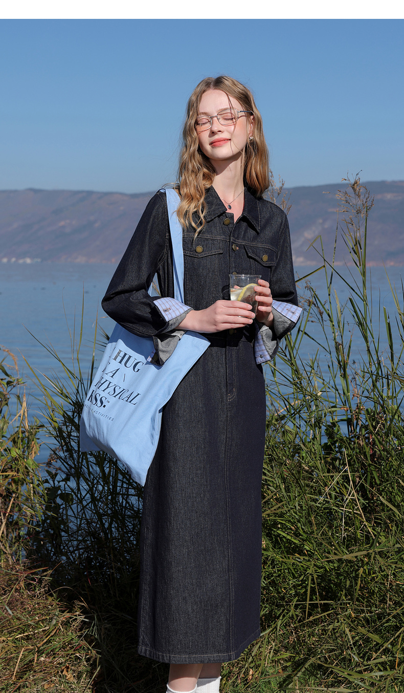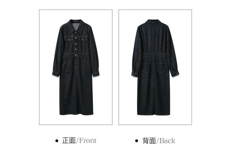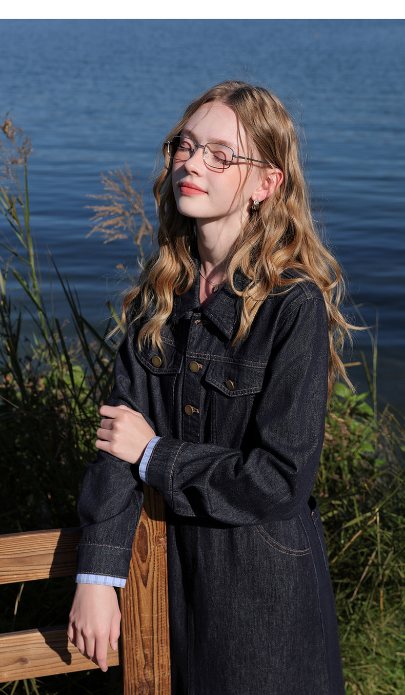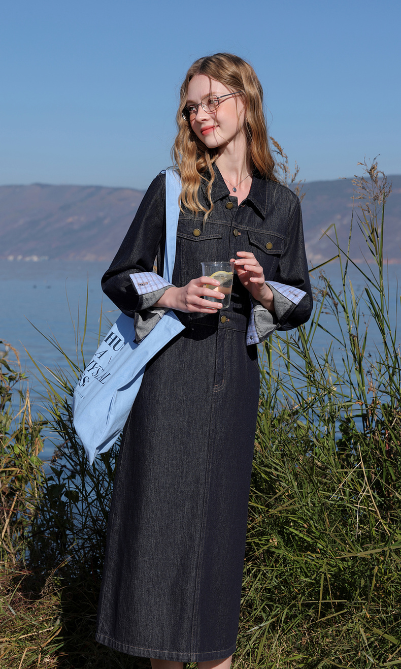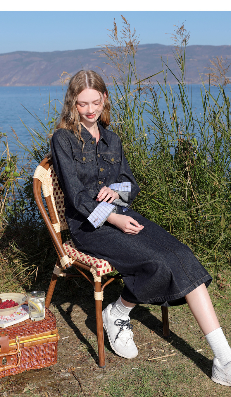 【不易褪色】三彩2026春季新款翻领收腰牛仔裙连衣裙直筒裙纯棉M