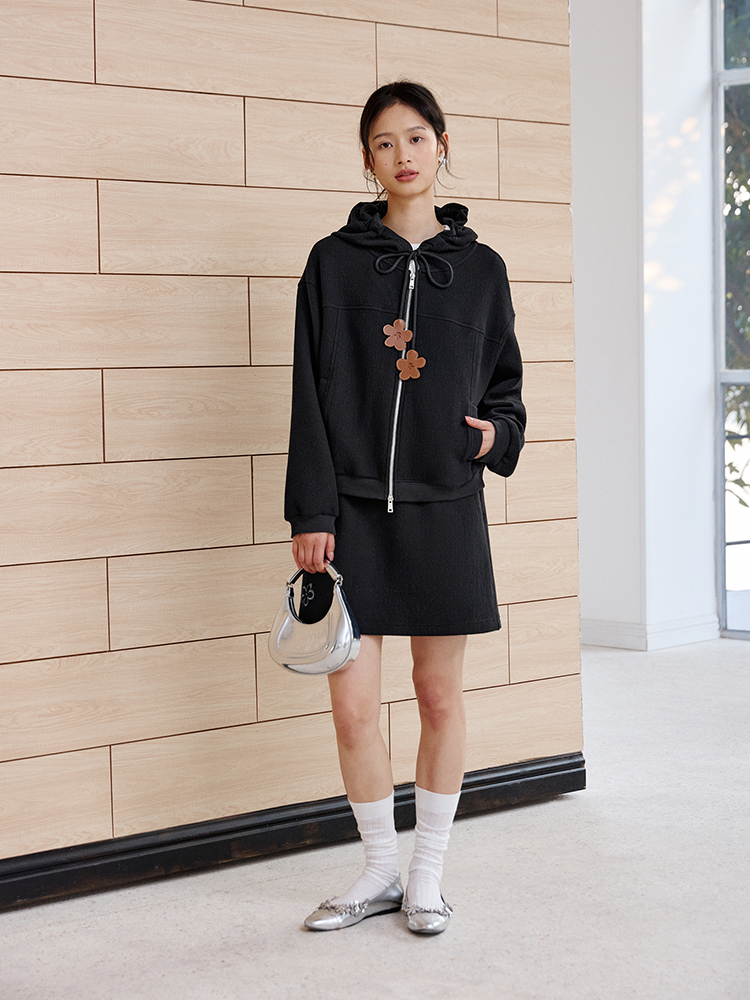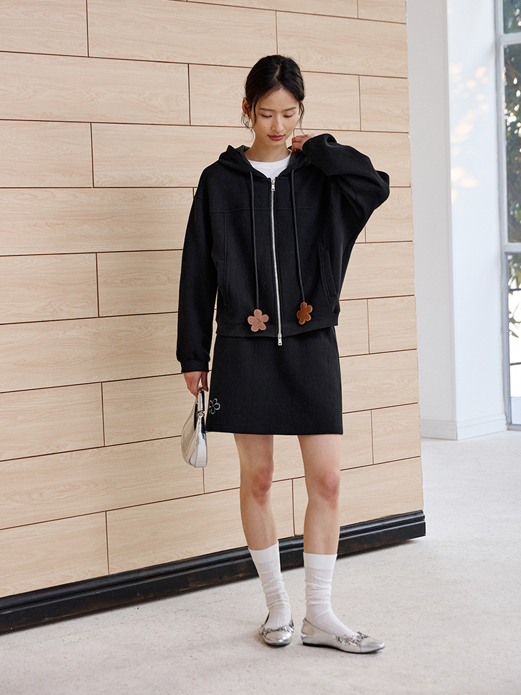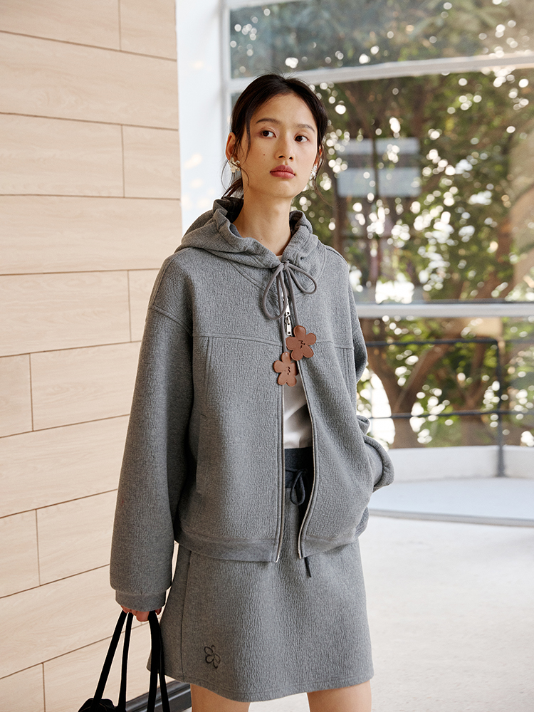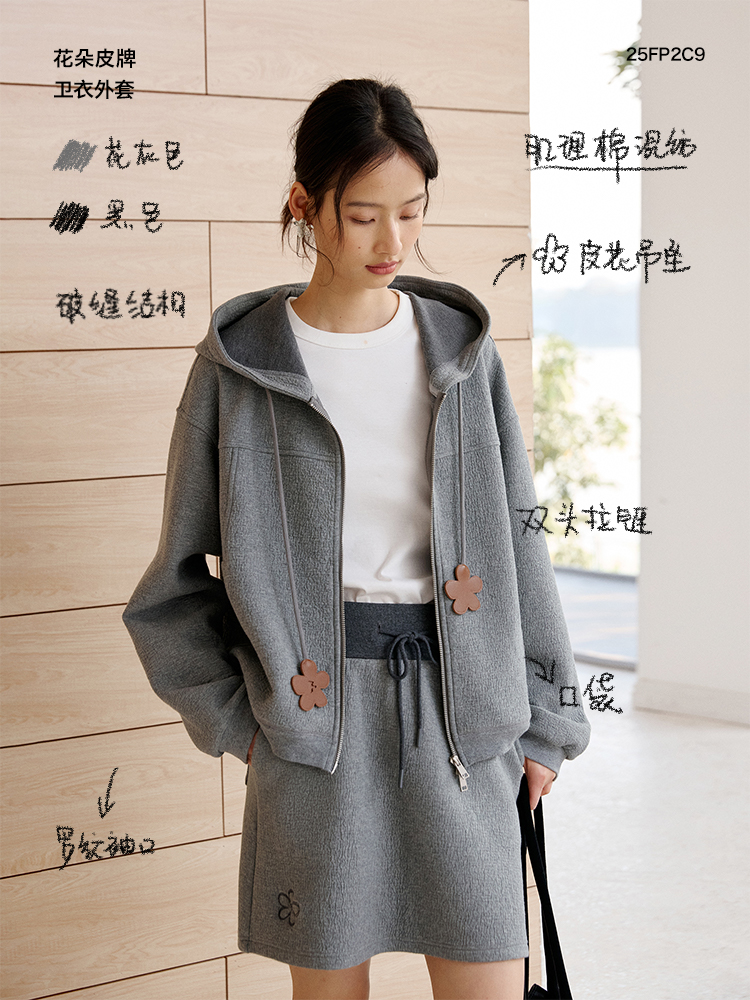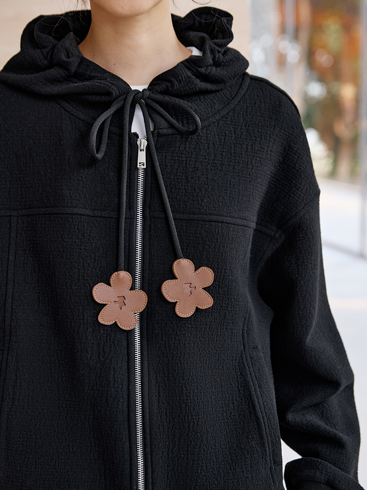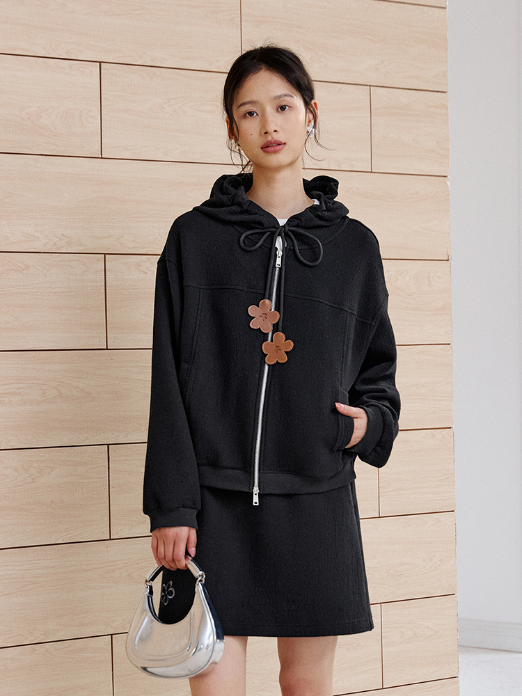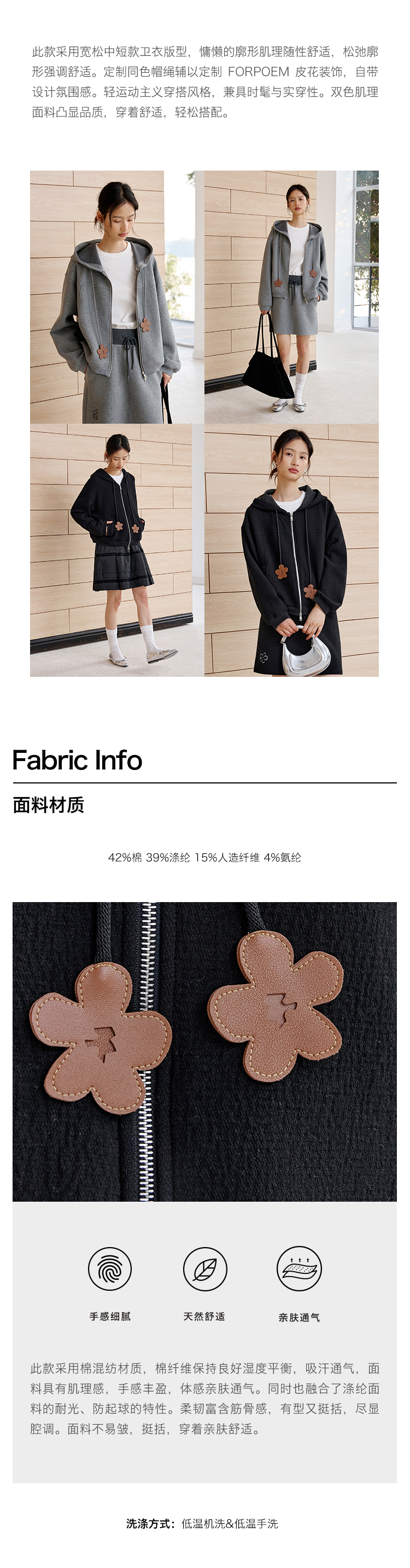 ForPoem 现货 25/SS原创设计肌理空气层花朵皮牌短款卫衣外套