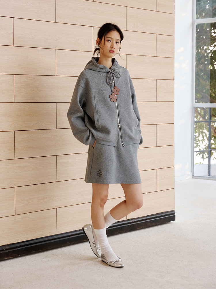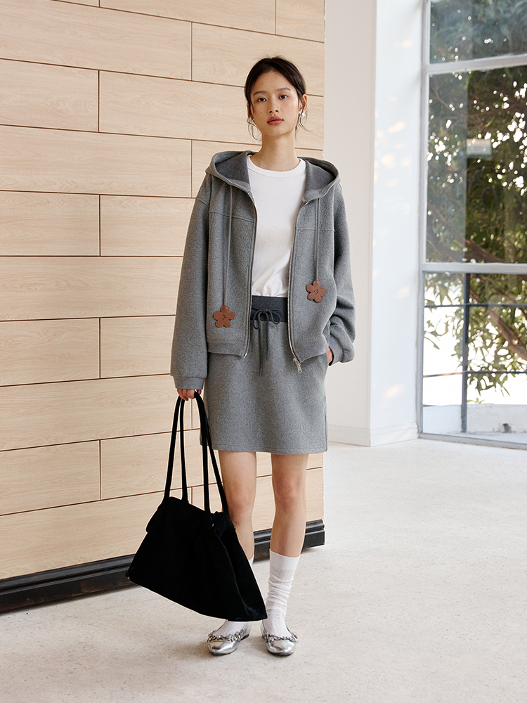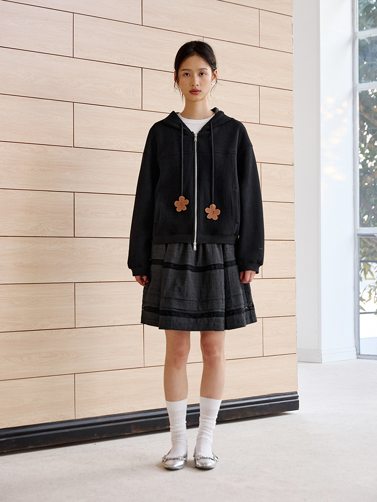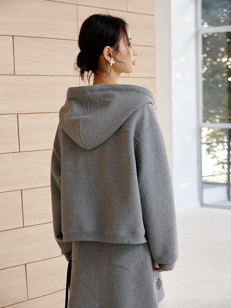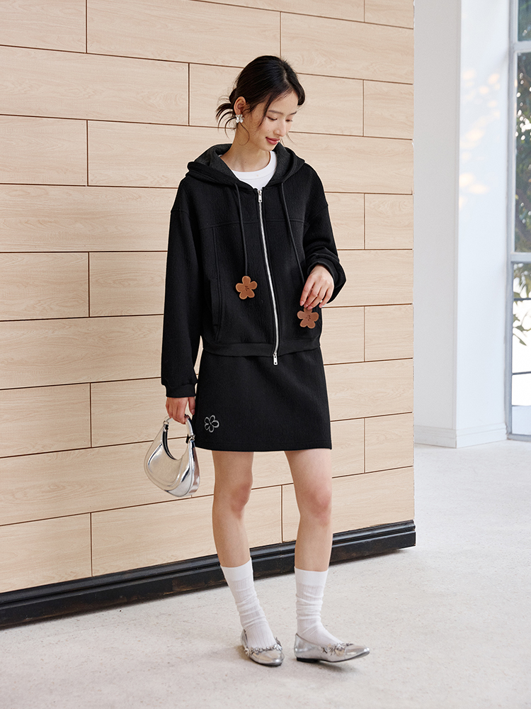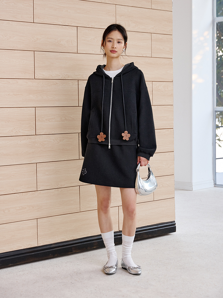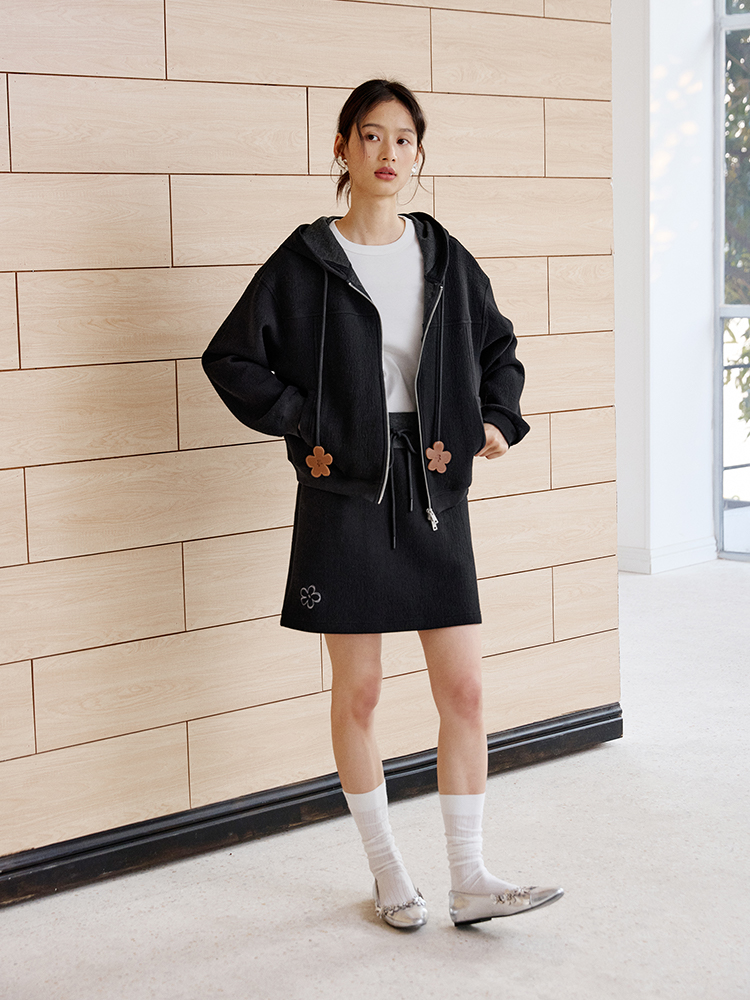 ForPoem 现货 25/SS原创设计肌理空气层花朵皮牌短款卫衣外套
