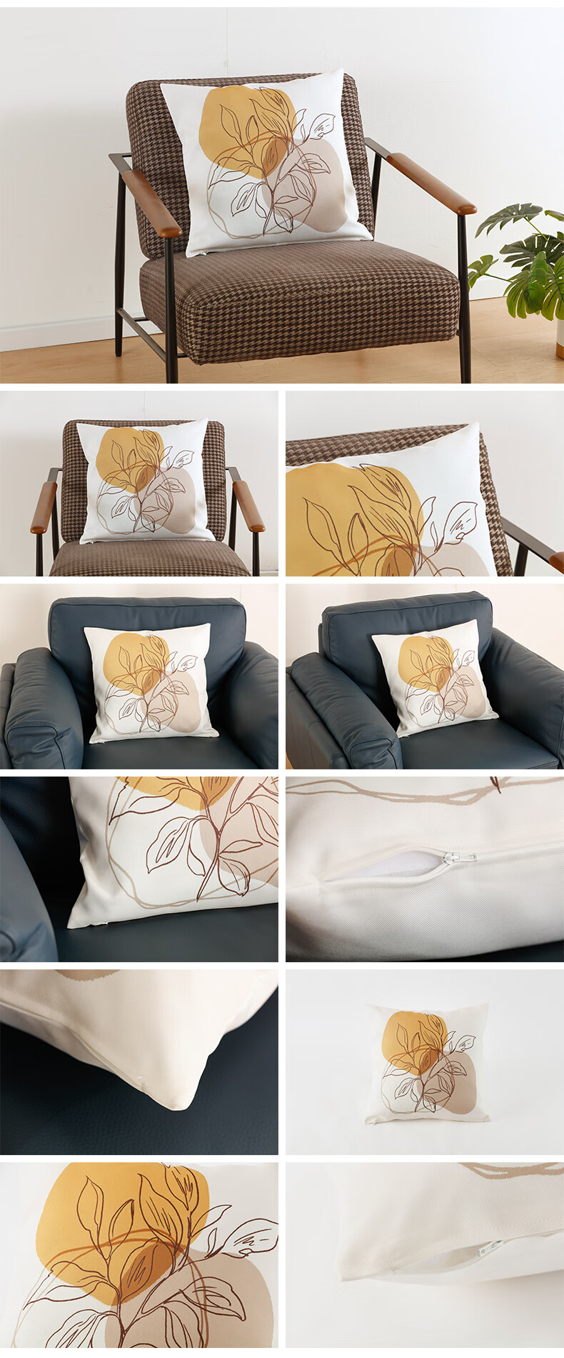 NITORI宜得利家居 花卉图案简约清新抱枕套正方形沙发枕头套靠垫套