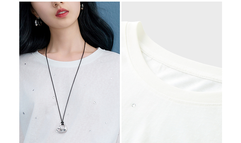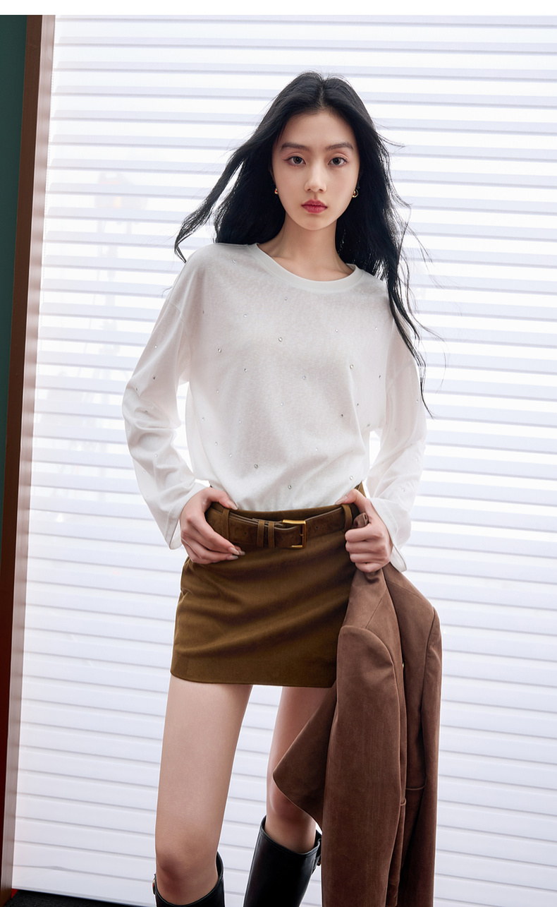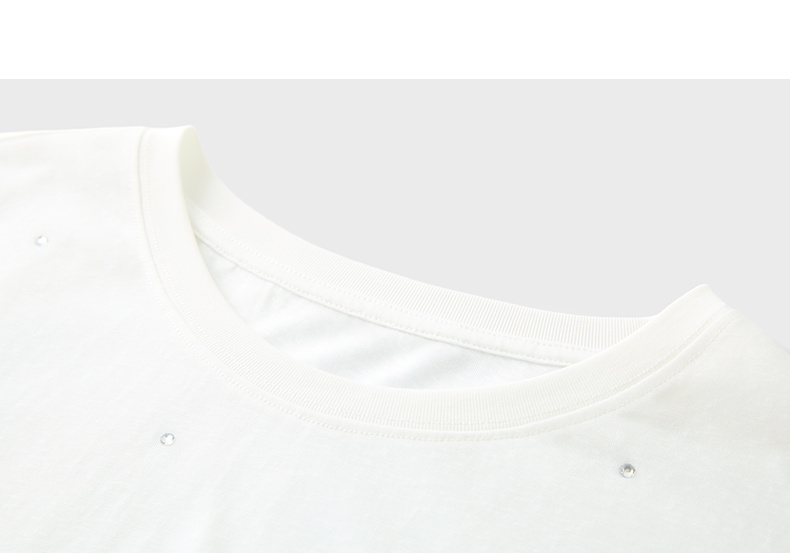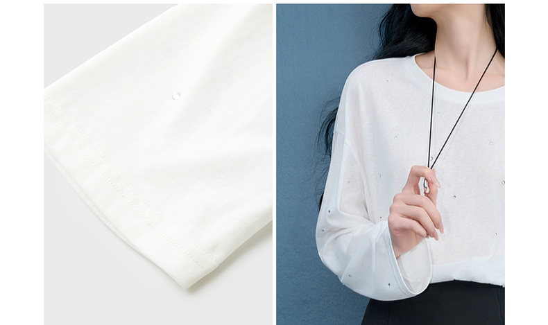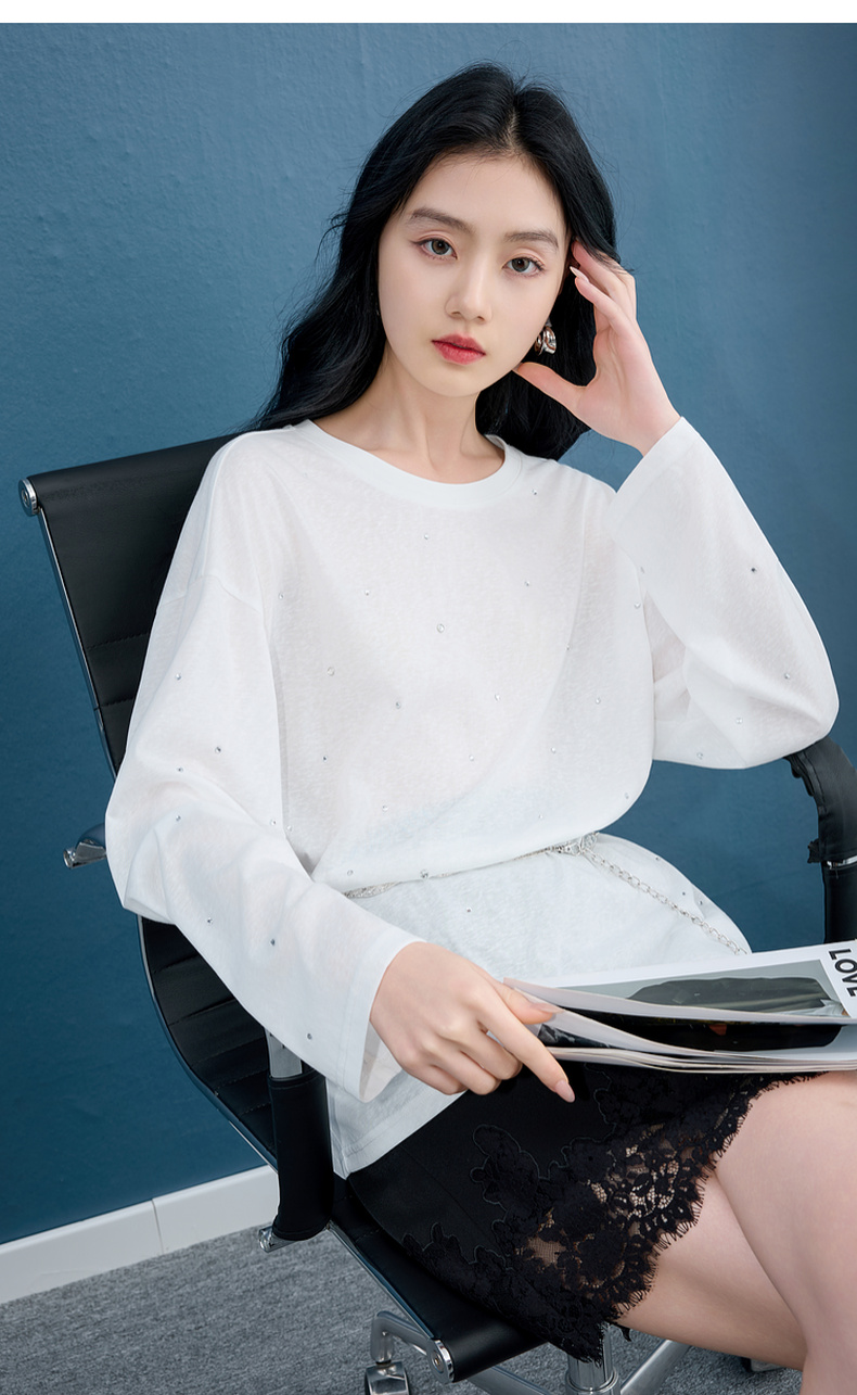 【莱赛尔】三彩2025秋季新款烫钻T恤圆领长袖宽松上衣休闲S