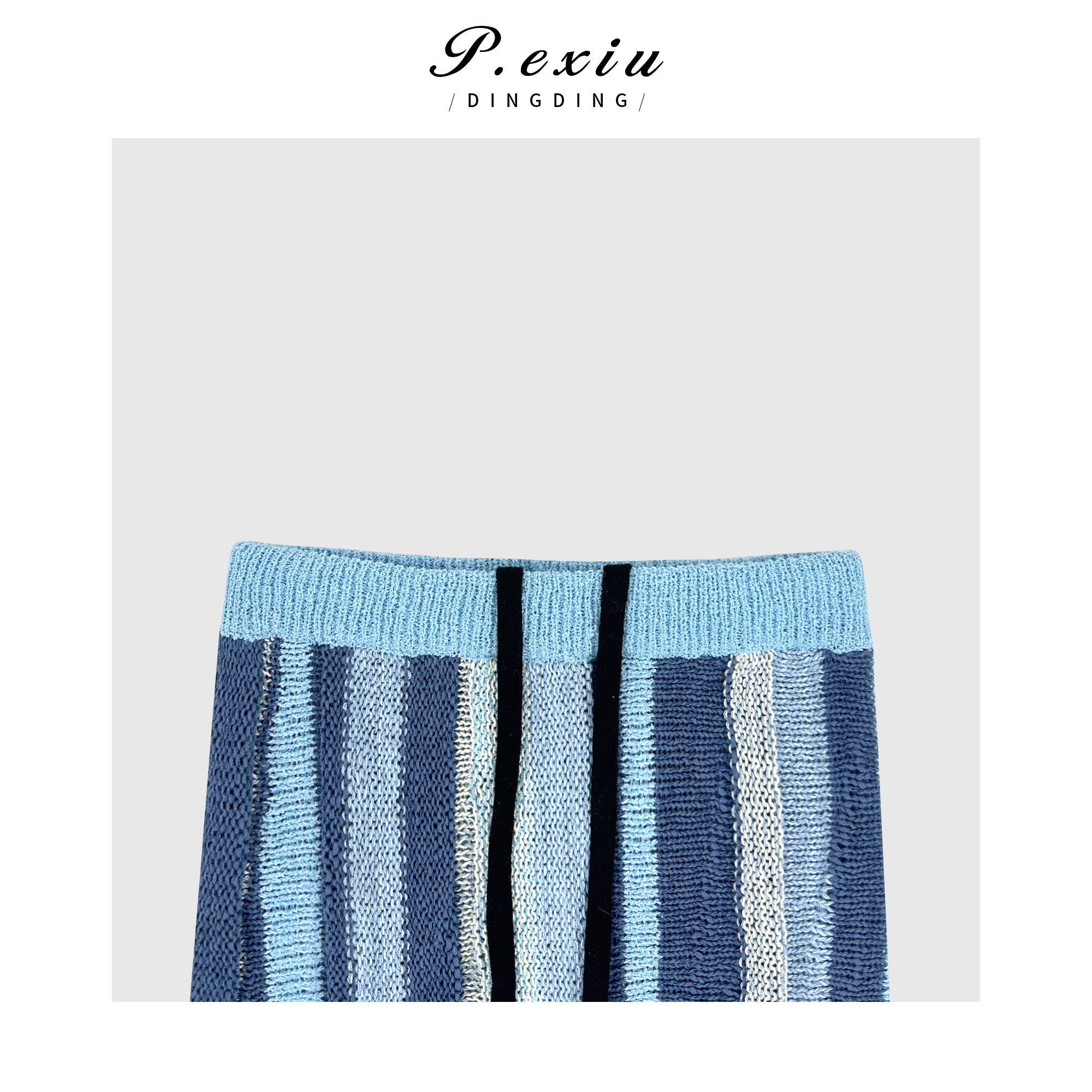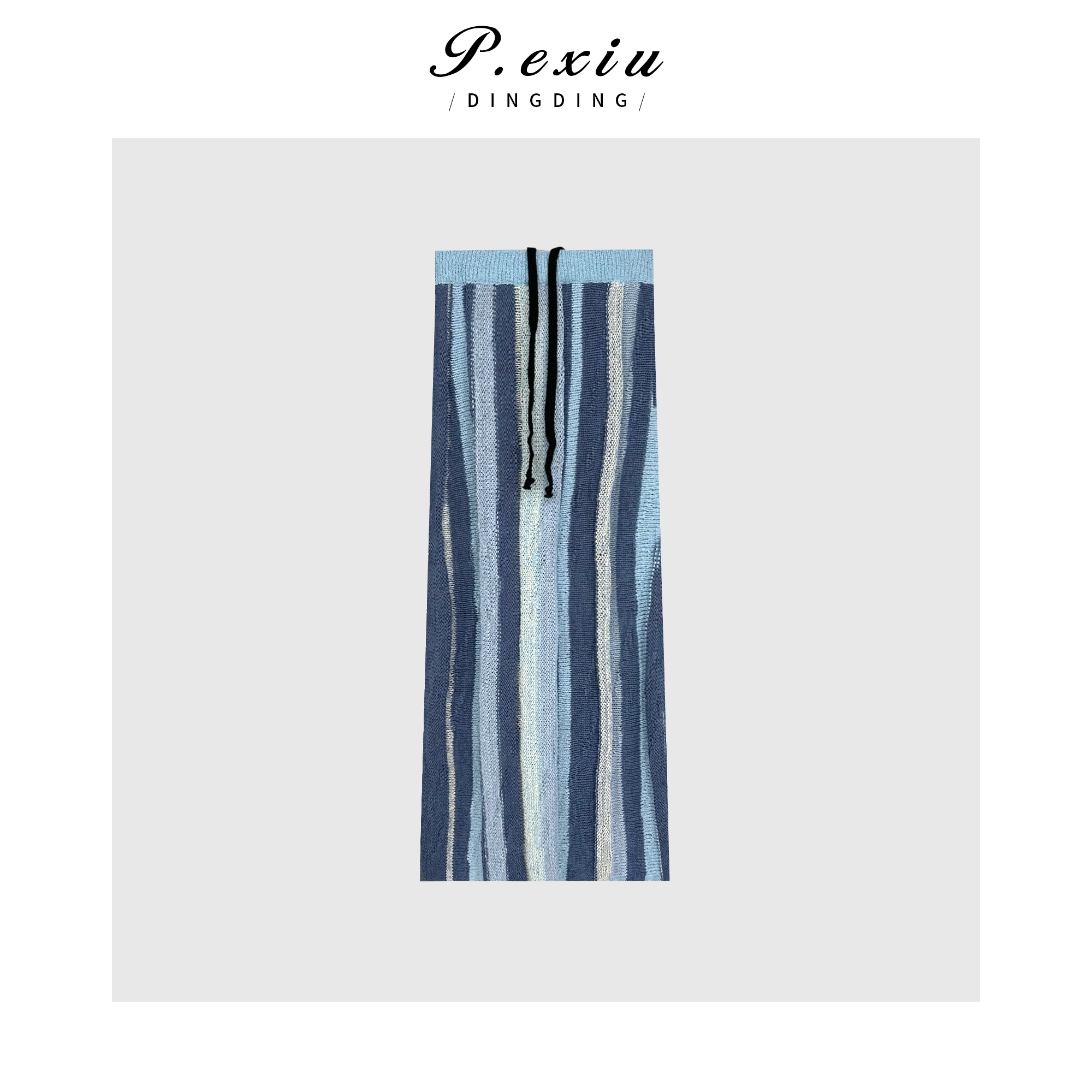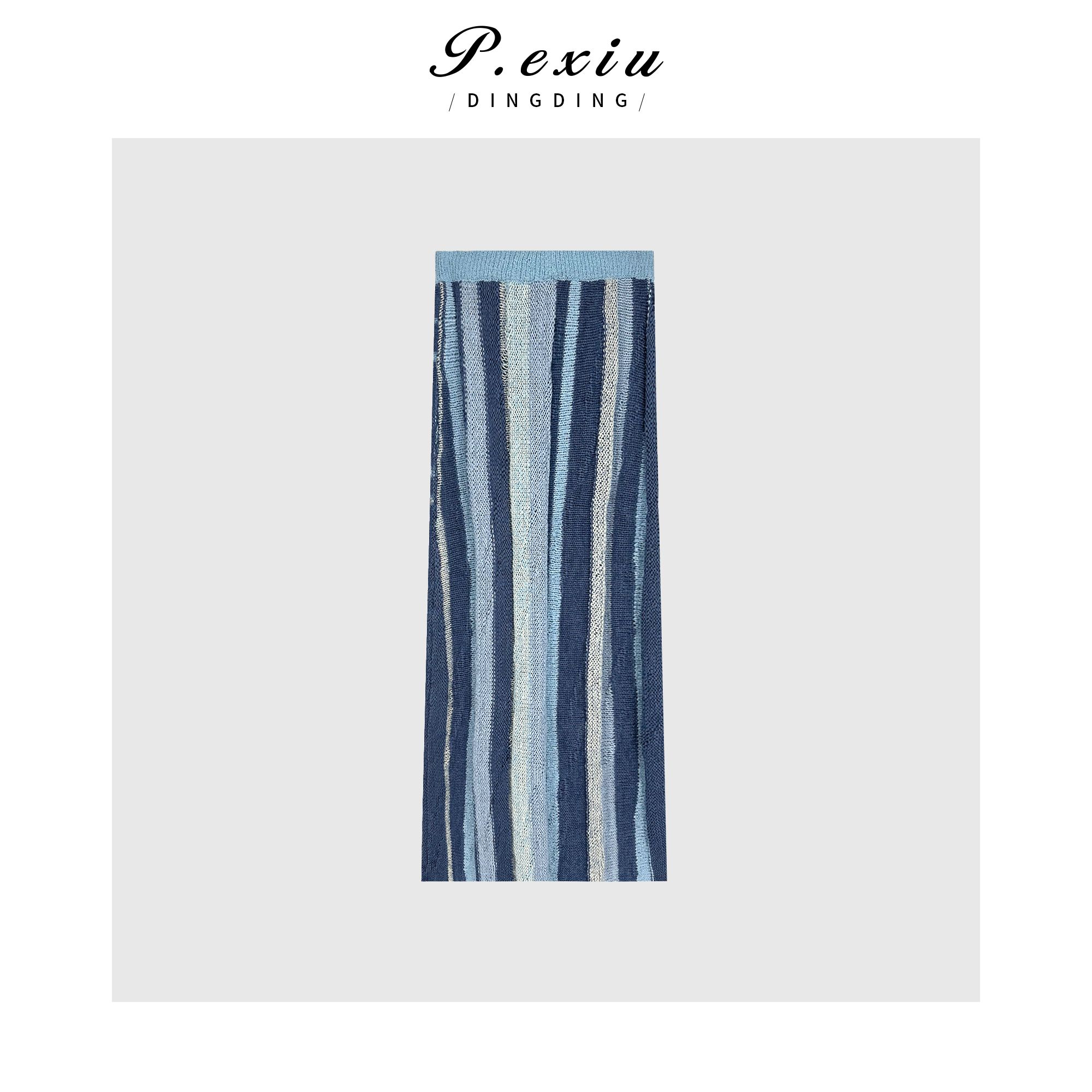 PanYiXiu/潘依绣【湛蓝天空】法式设计感撞色条纹针织半身裙 L2362