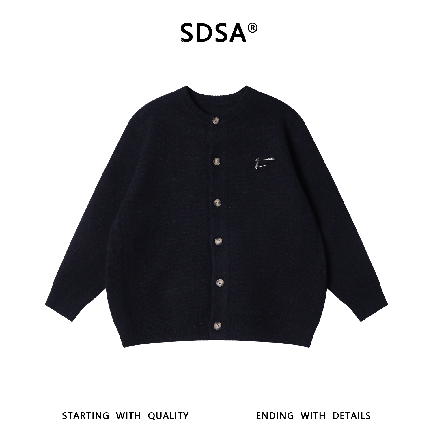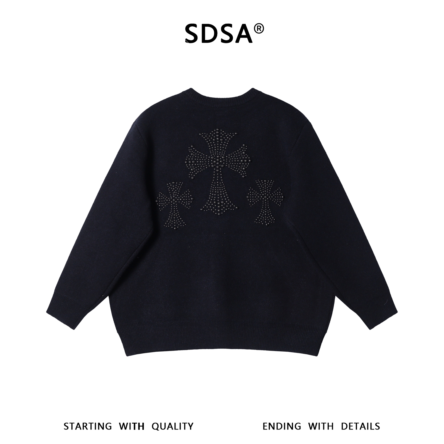 82551SDSA男士秋冬新款痞帅男装重工十字珠子纽扣开衫圆领毛衣百搭时尚