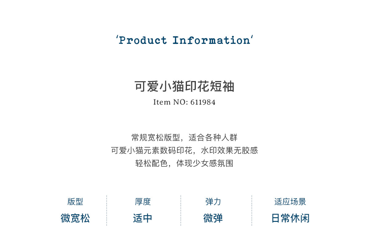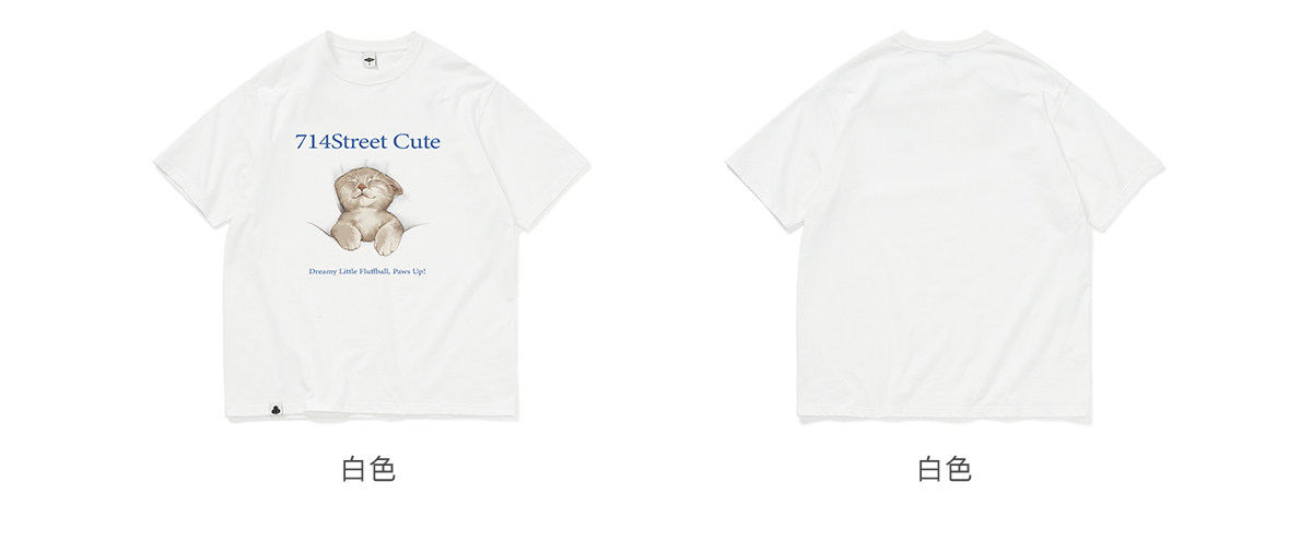 714street可爱小猫印花短纯棉袖2026春夏宽松圆领情侣T恤男女同款