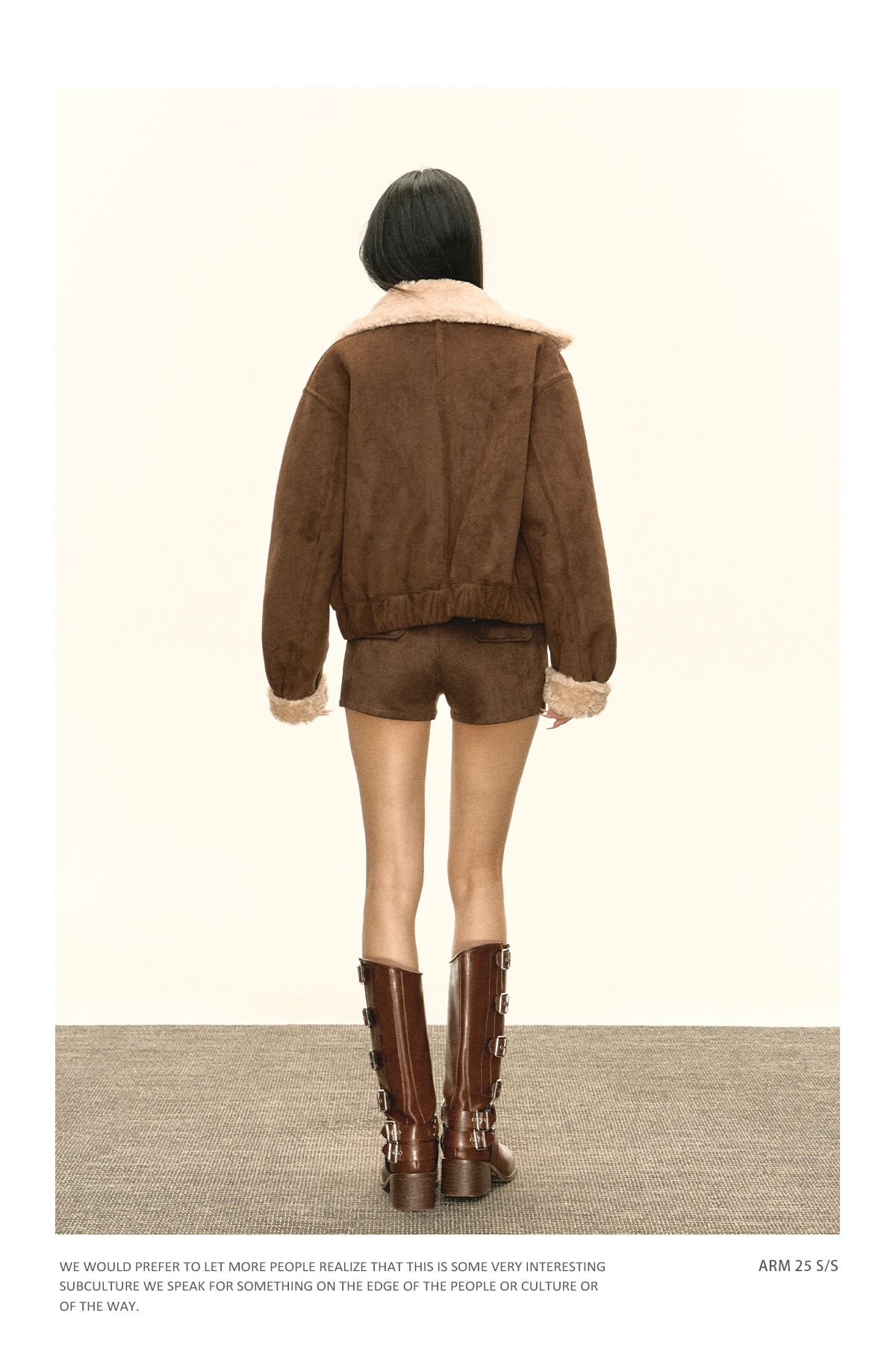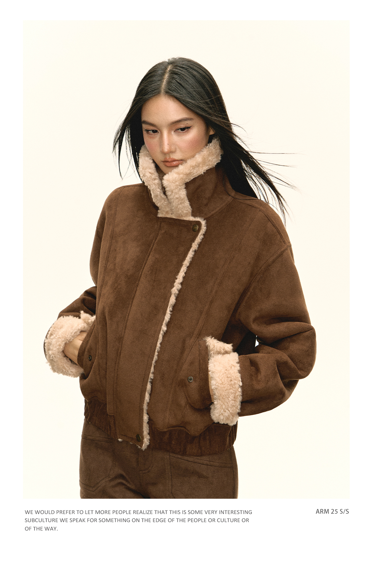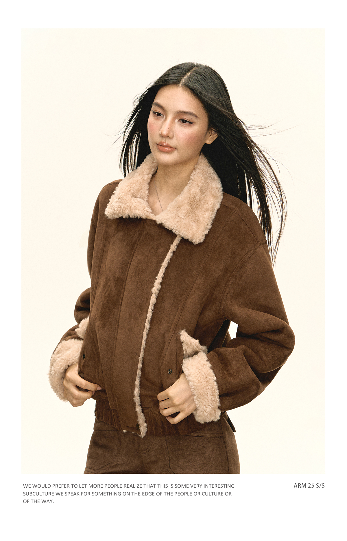 Ariseism 美式复古设计感皮毛一体短外套女冬季新款