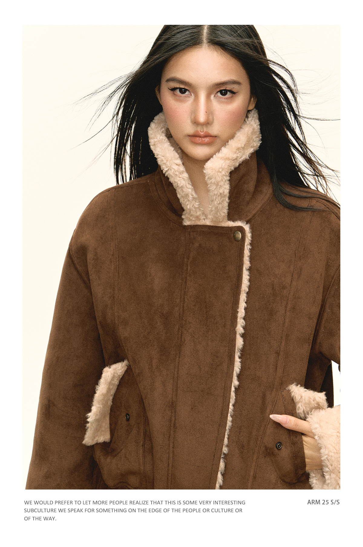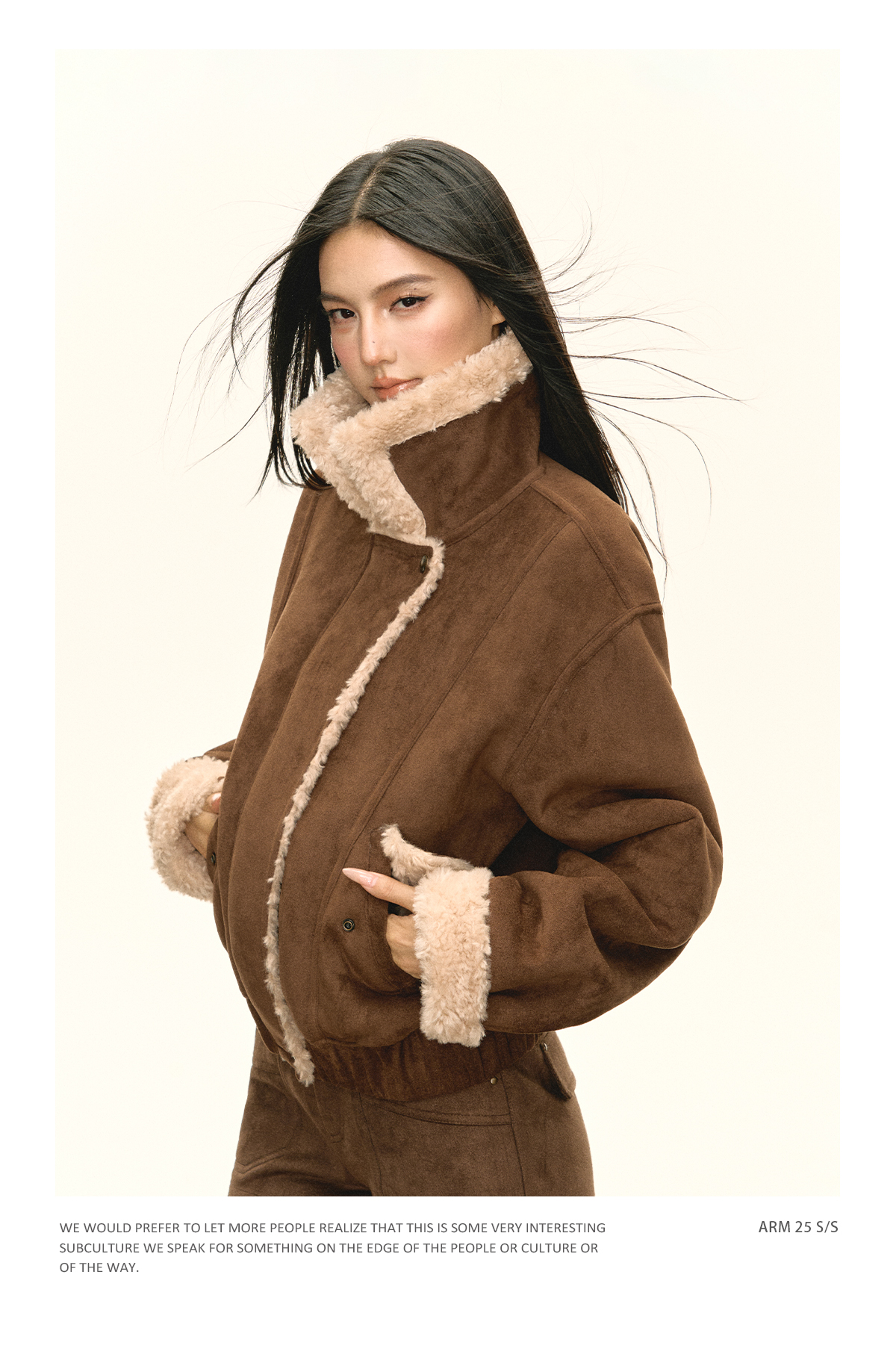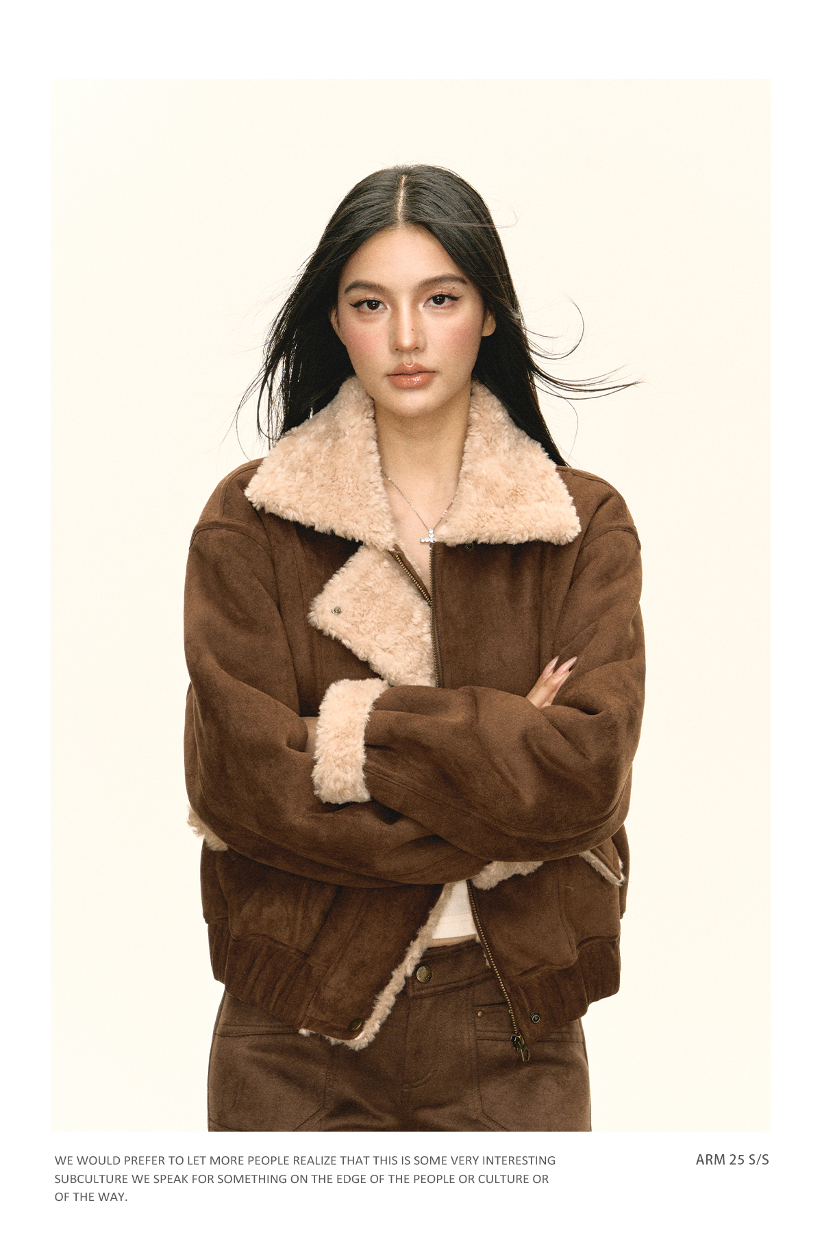 Ariseism 美式复古设计感皮毛一体短外套女冬季新款