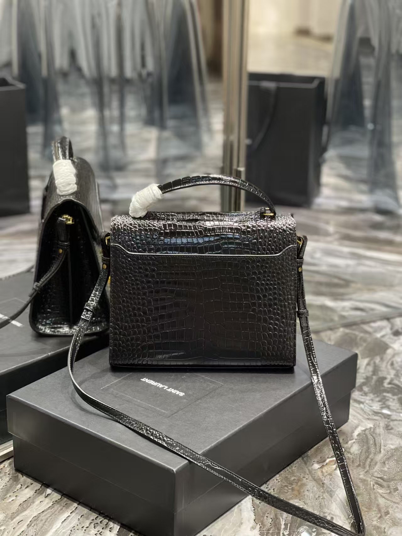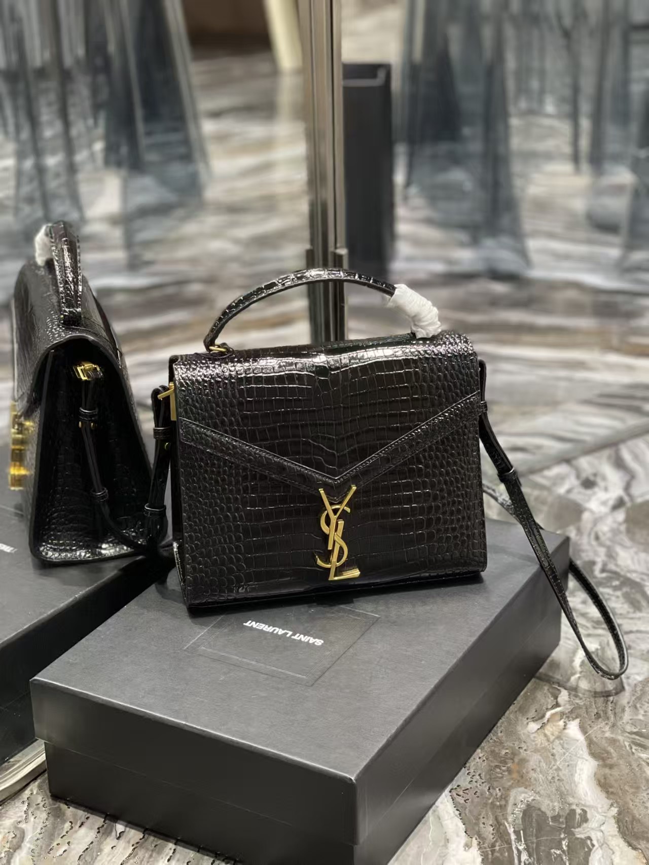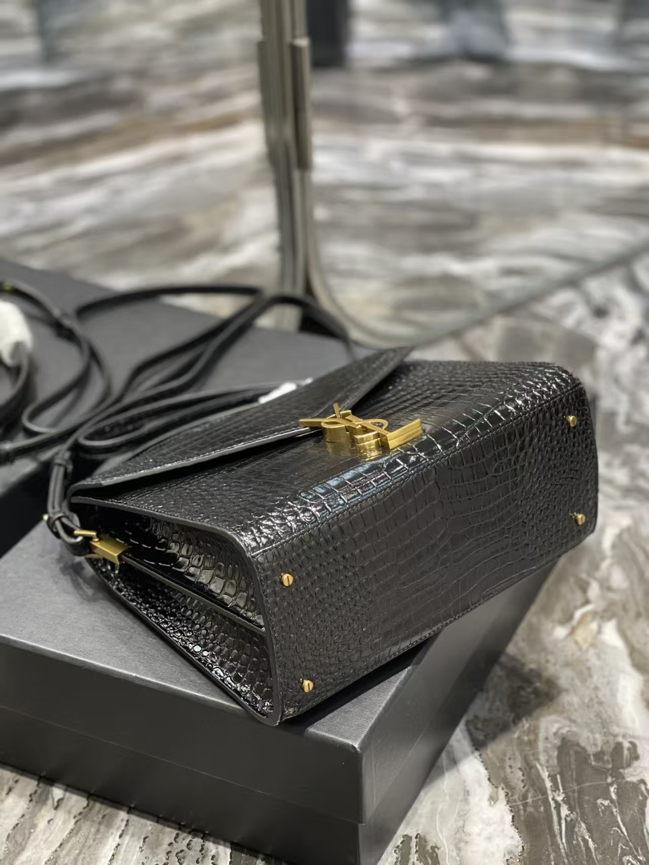 圣罗兰 CASSANDRA 20/24cm 鳄鱼纹 手提包 邮差包 信封包(CO)