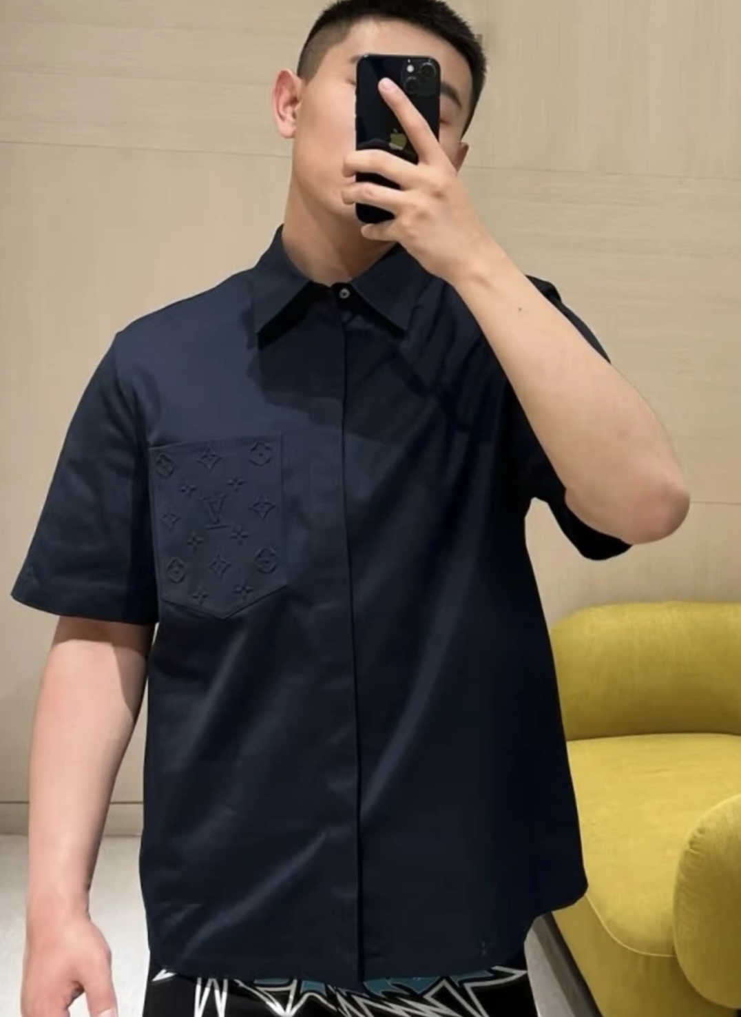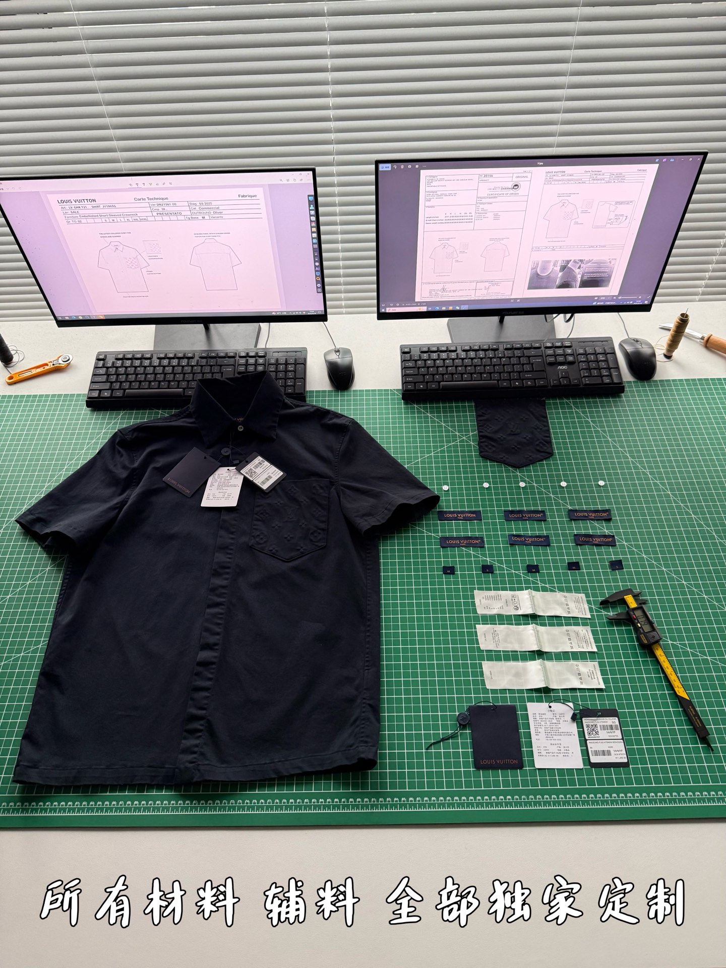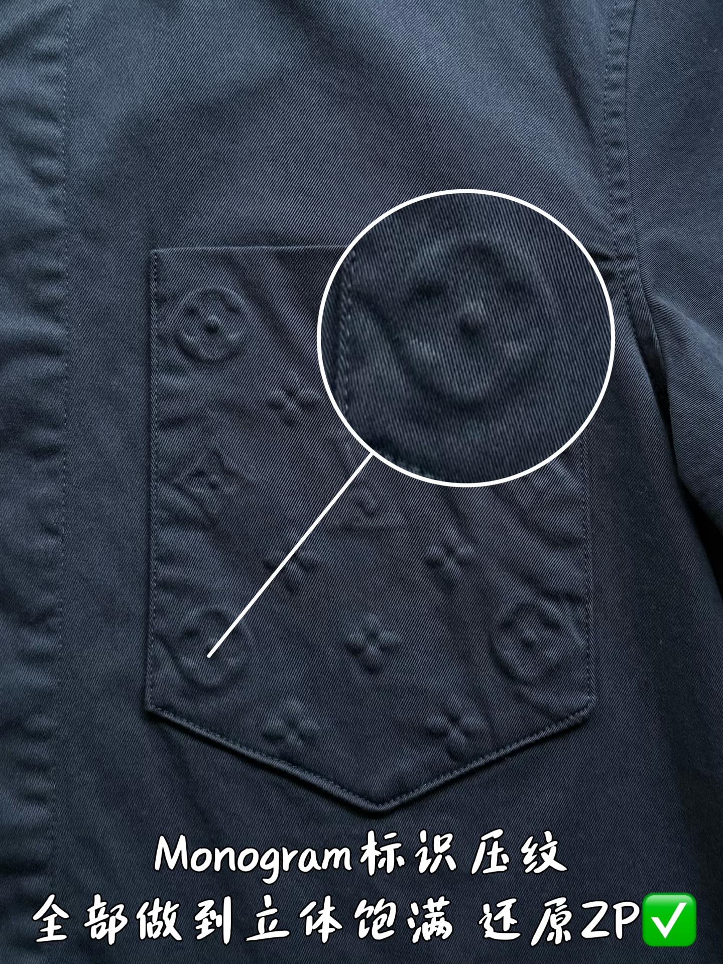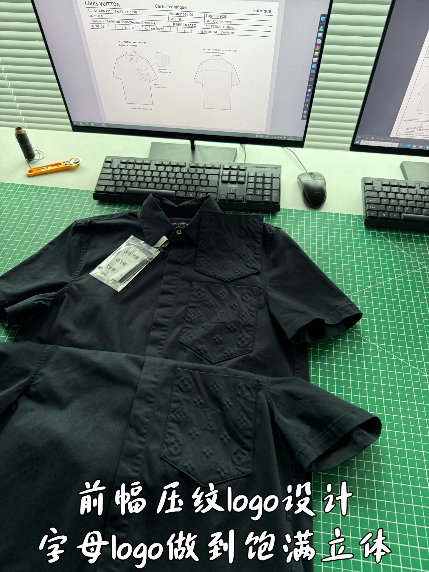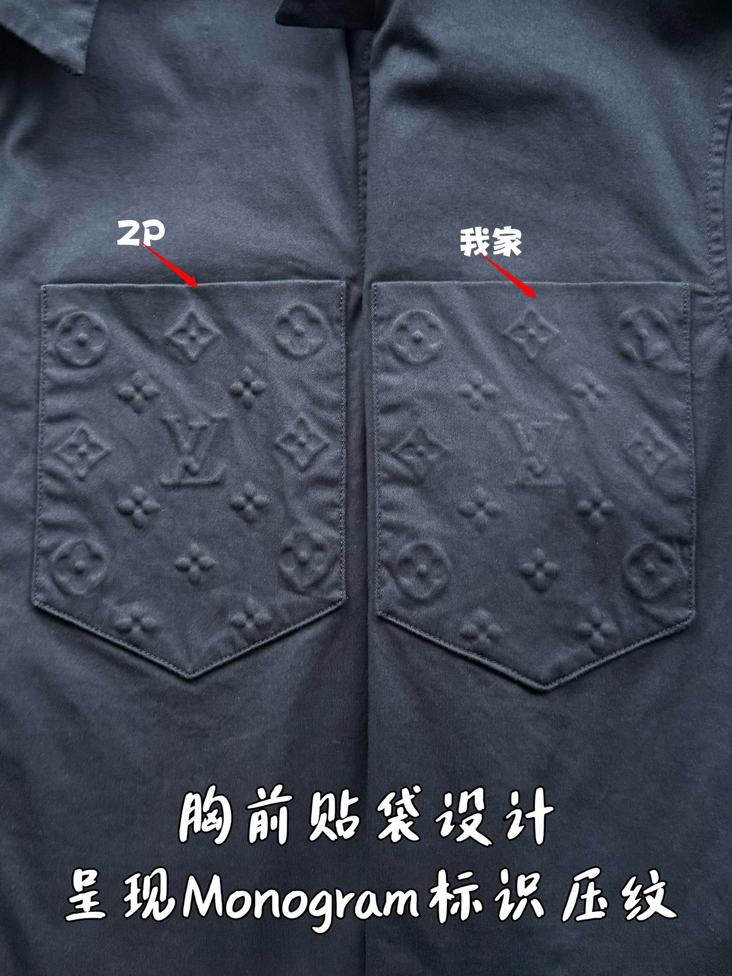 Louis Vuitton25ss压纹印花logo短袖衬衫‼️整件衣服11200购买ZP拆解打造,采用定制混纺斜纹棉面料,胸前贴袋设计,呈现Monogram标识压纹,定制标志性polo领,硬挺版型,门襟开模定制LV字母标识珠光纽扣,配有五金底座,真正做到1:1copy 码数:XS S M L