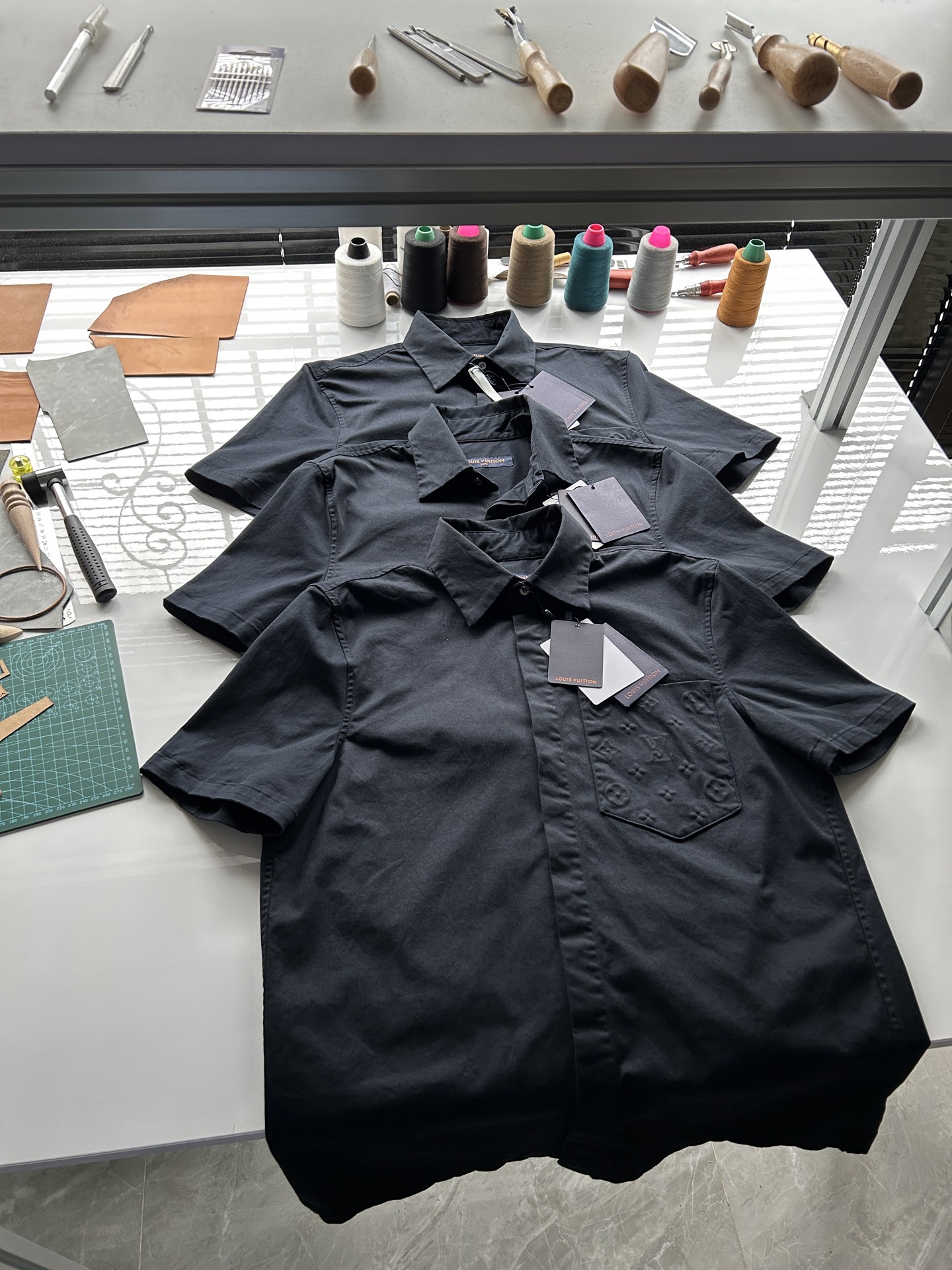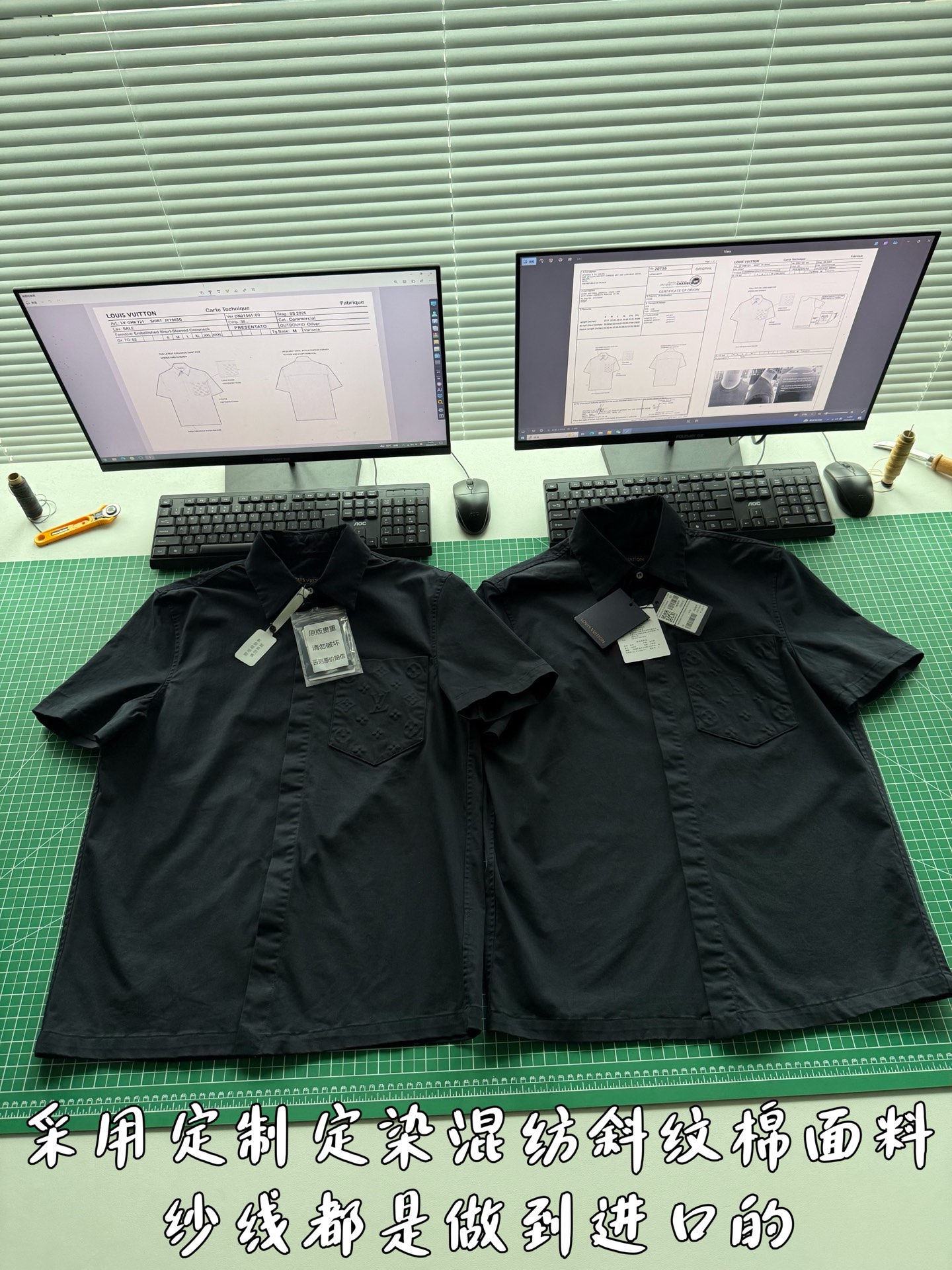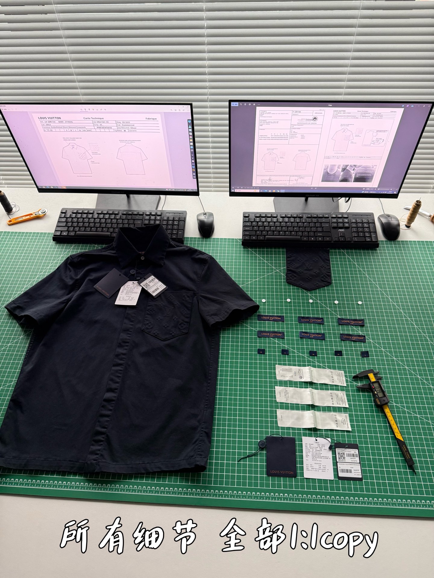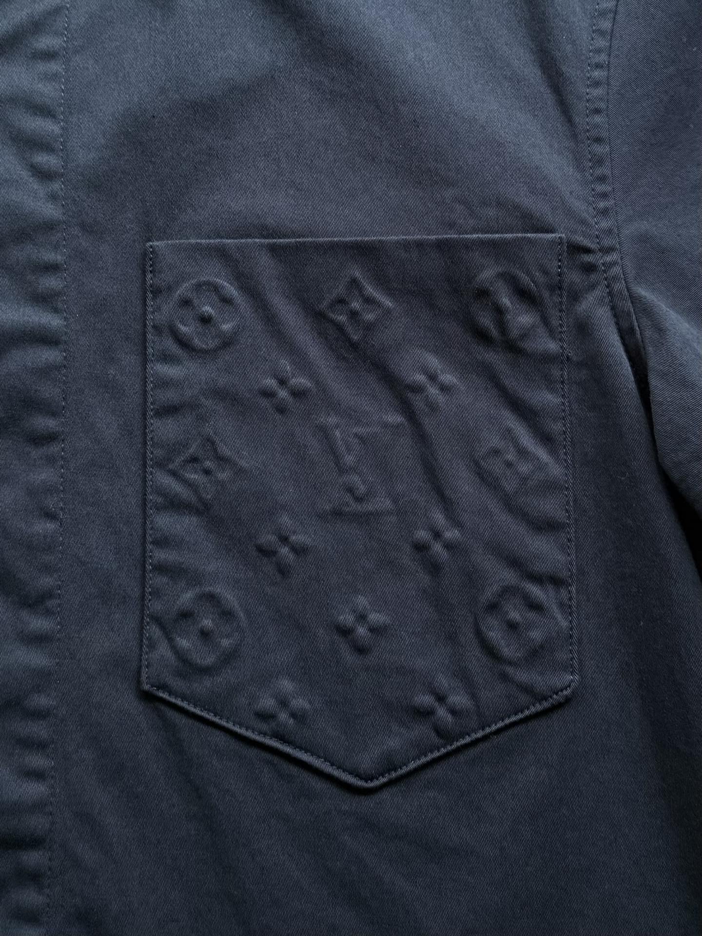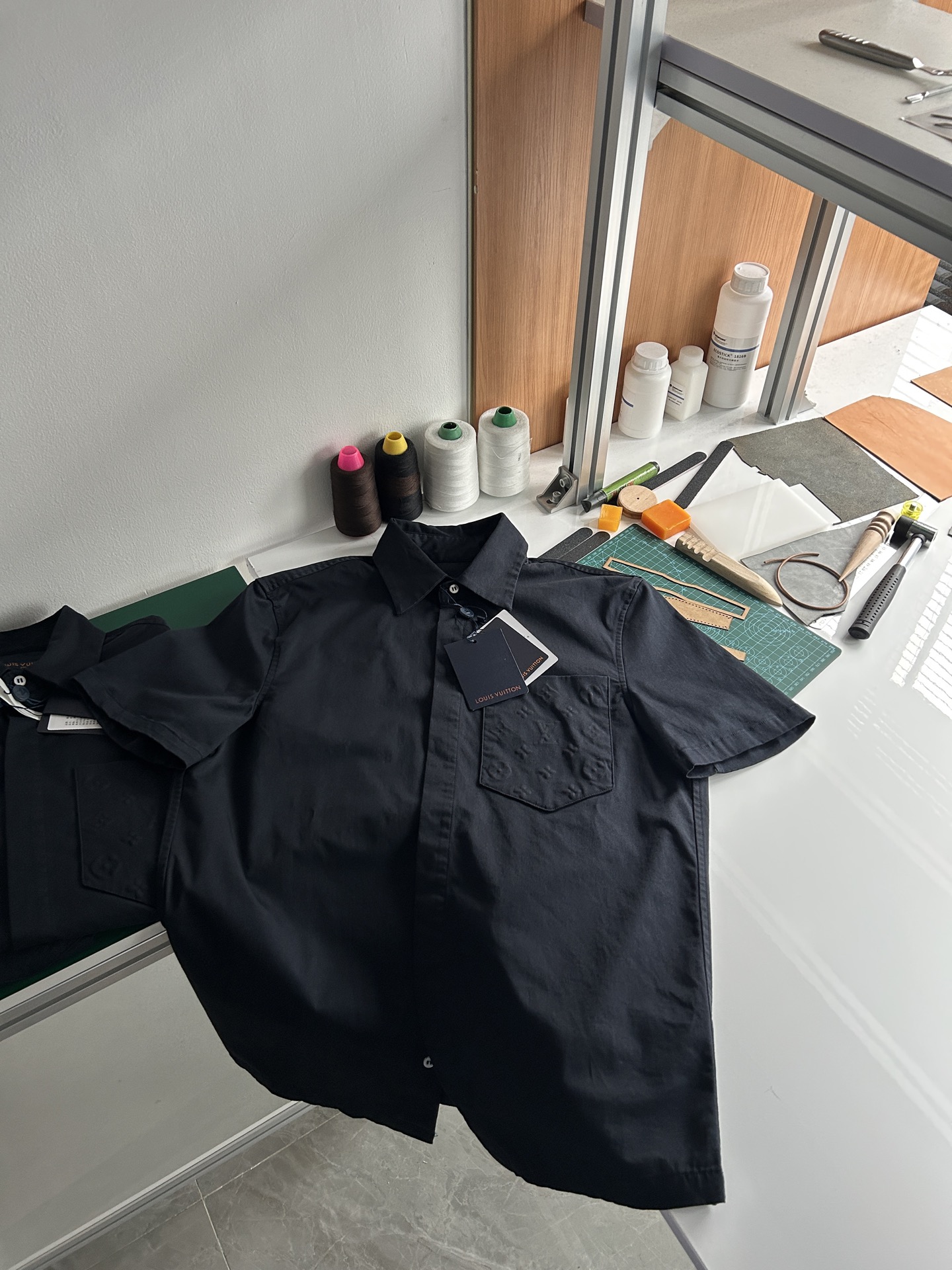 Louis Vuitton25ss压纹印花logo短袖衬衫‼️整件衣服11200购买ZP拆解打造,采用定制混纺斜纹棉面料,胸前贴袋设计,呈现Monogram标识压纹,定制标志性polo领,硬挺版型,门襟开模定制LV字母标识珠光纽扣,配有五金底座,真正做到1:1copy 码数:XS S M L