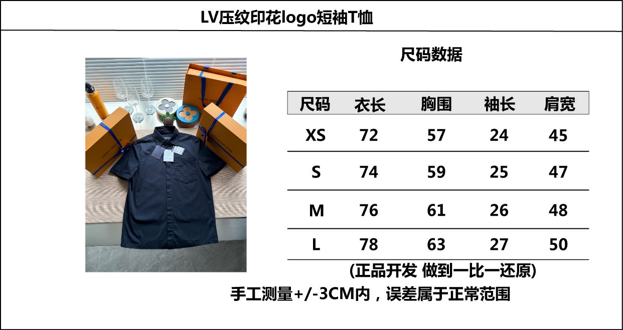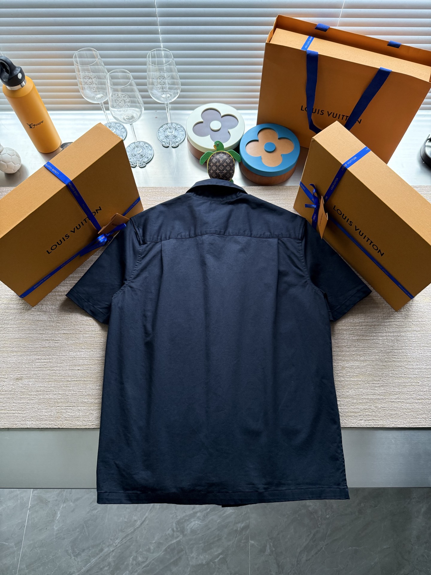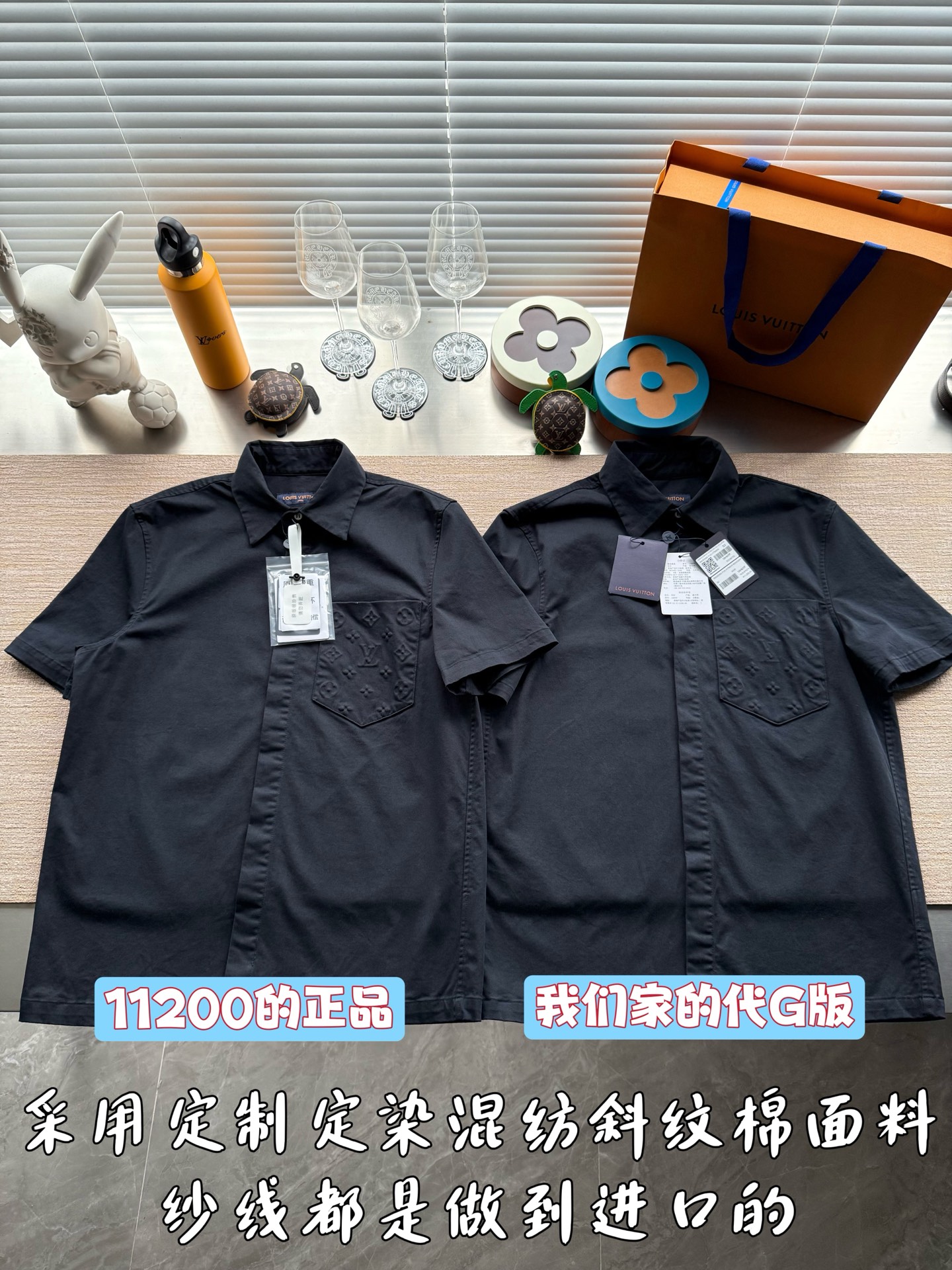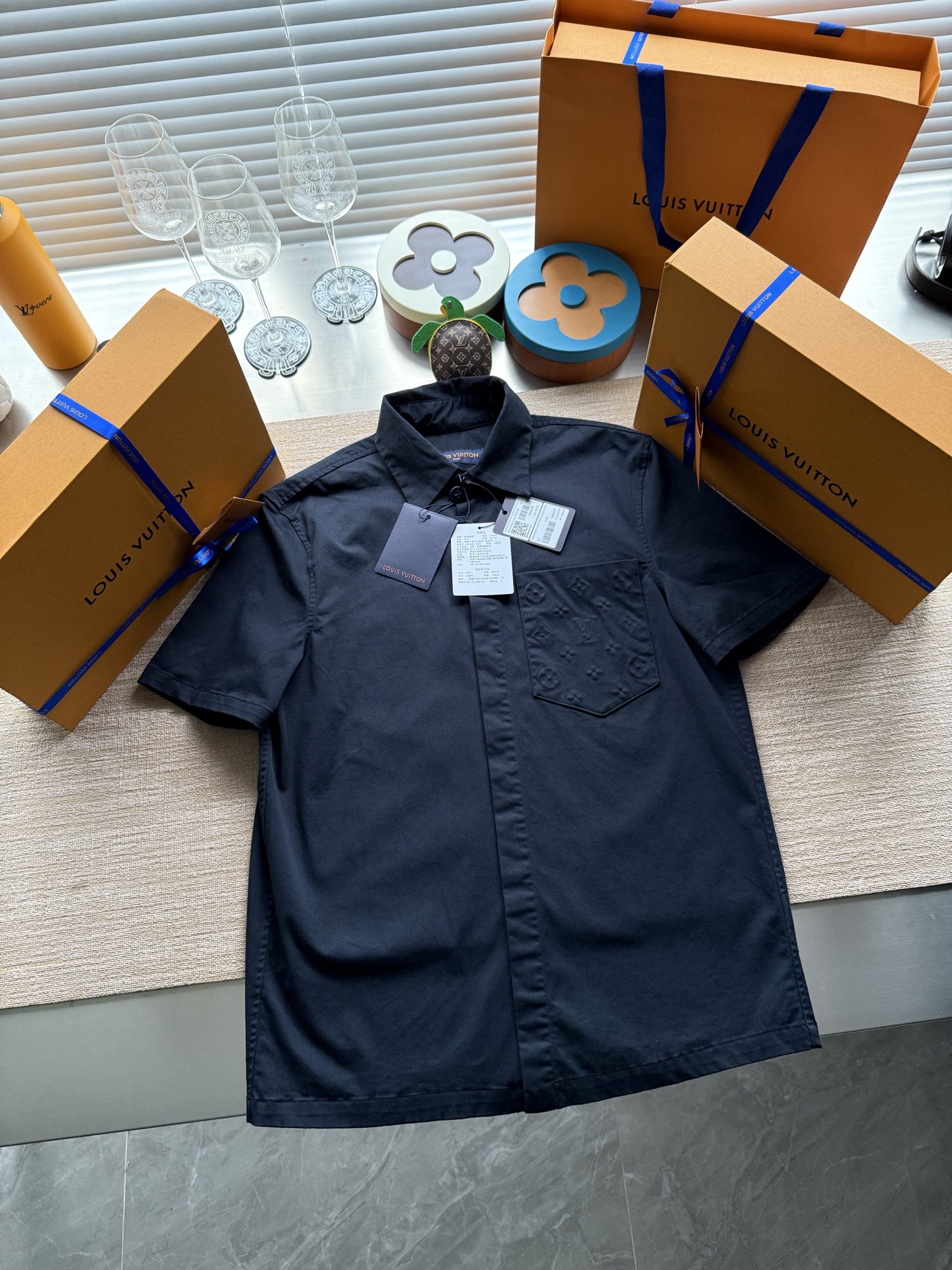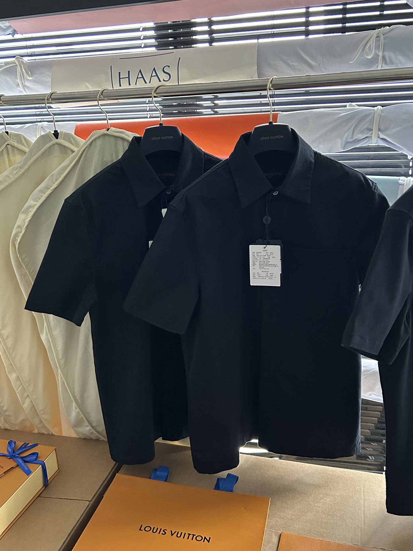 Louis Vuitton25ss压纹印花logo短袖衬衫‼️整件衣服11200购买ZP拆解打造,采用定制混纺斜纹棉面料,胸前贴袋设计,呈现Monogram标识压纹,定制标志性polo领,硬挺版型,门襟开模定制LV字母标识珠光纽扣,配有五金底座,真正做到1:1copy 码数:XS S M L