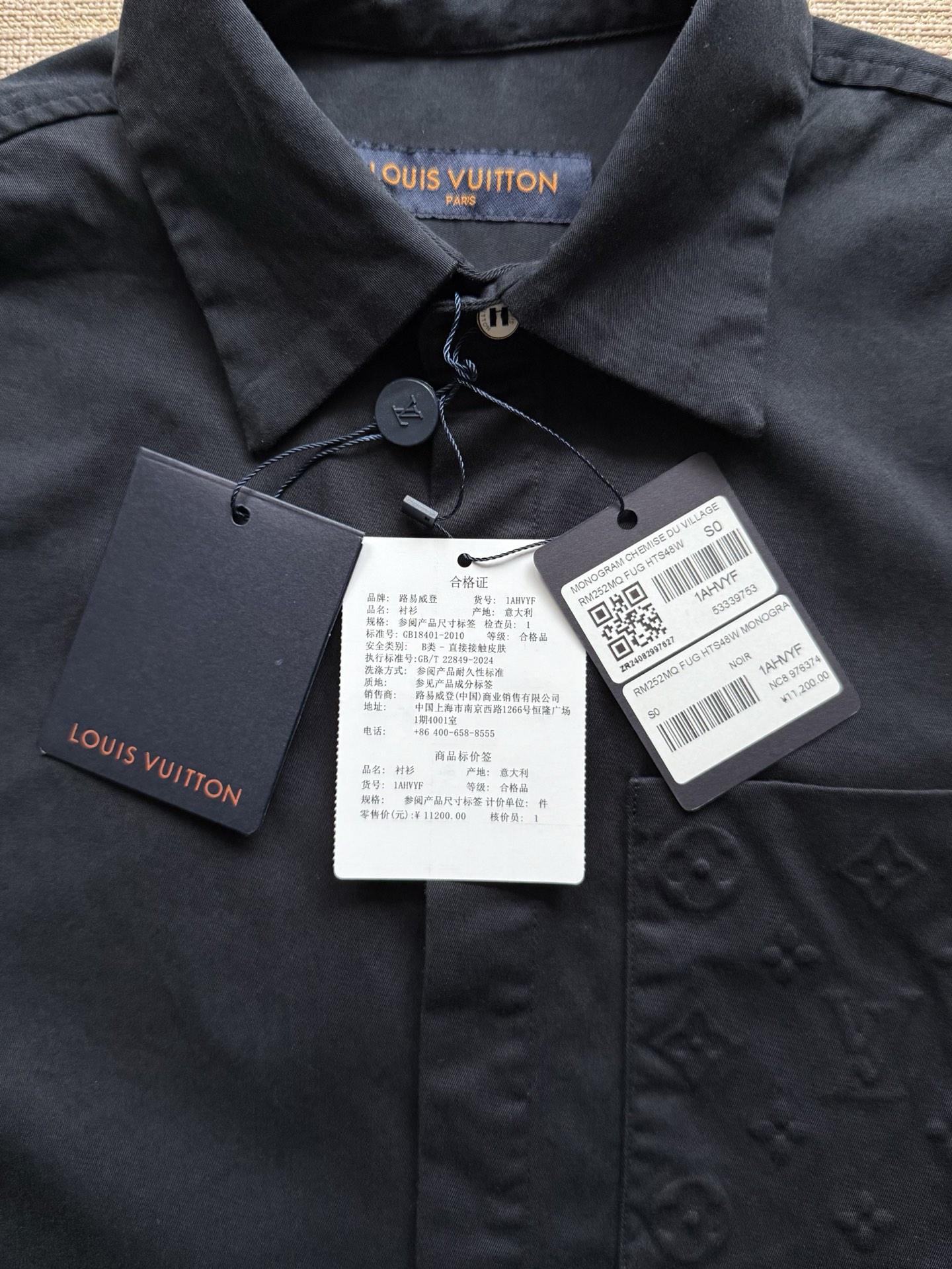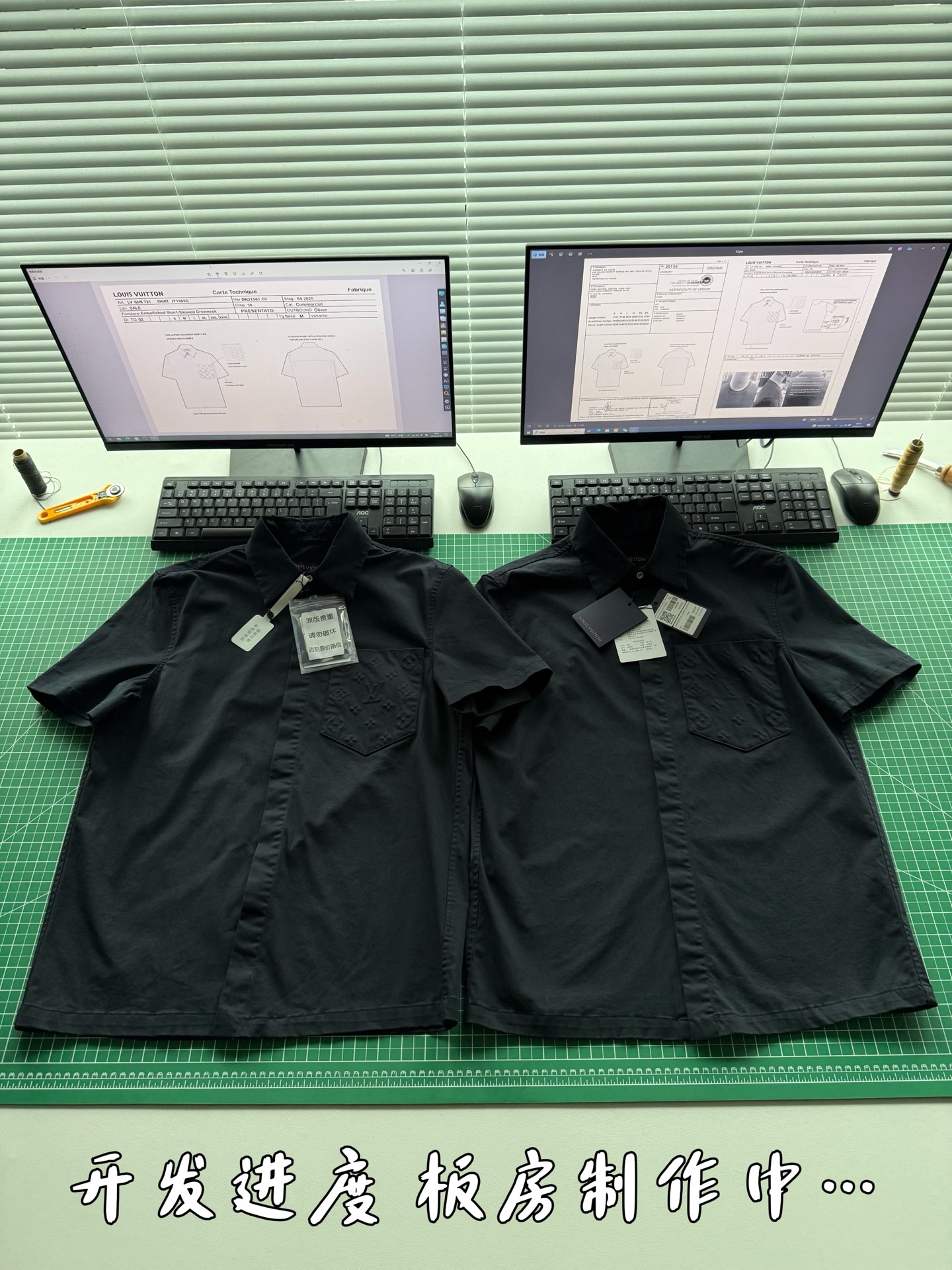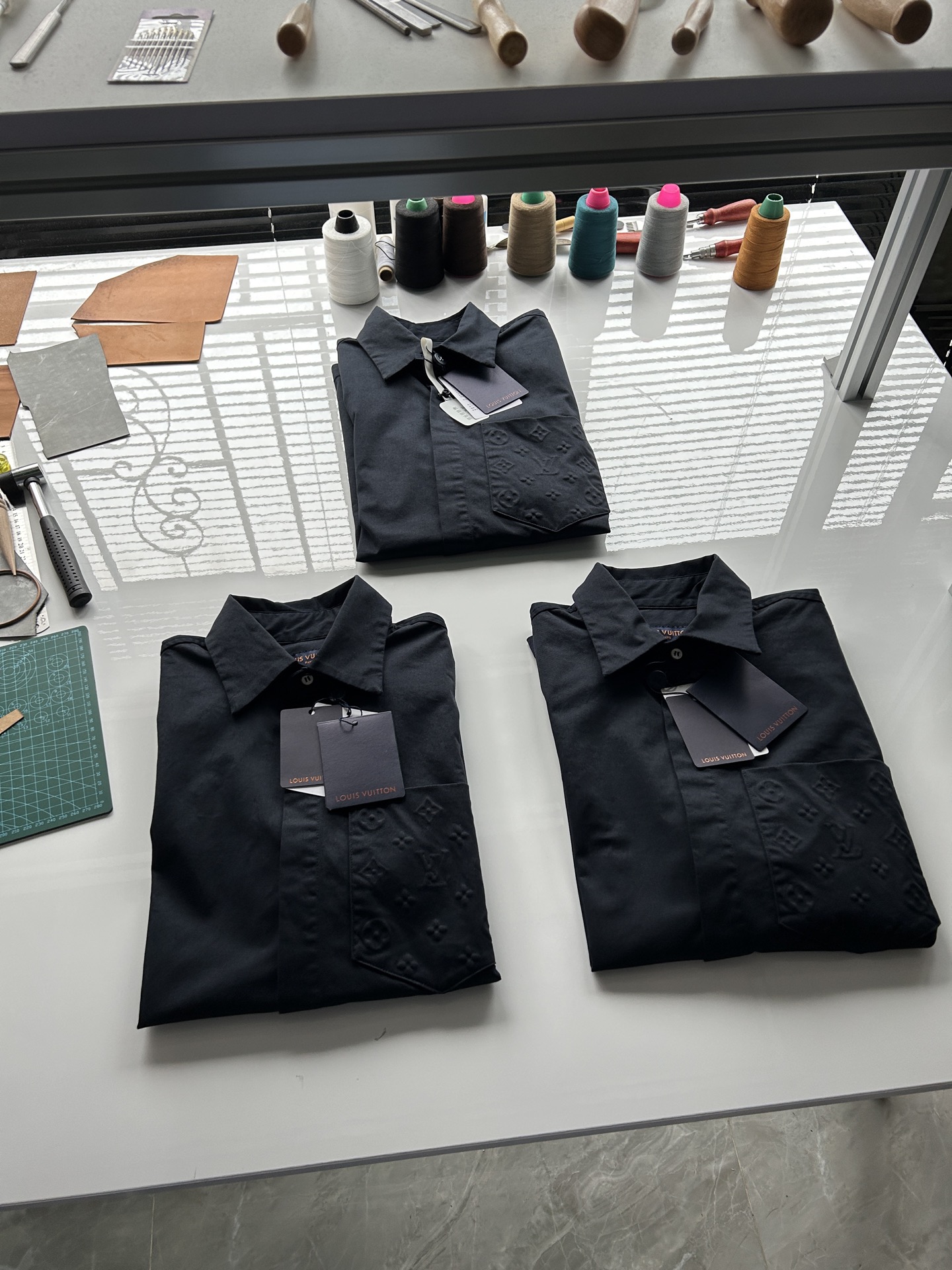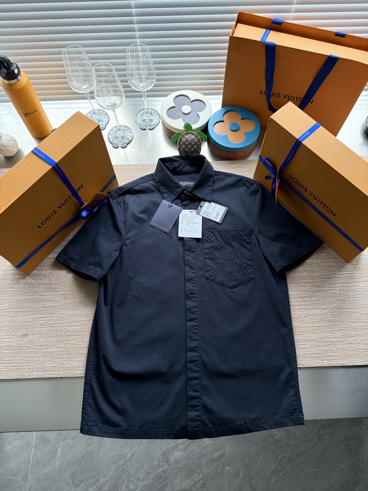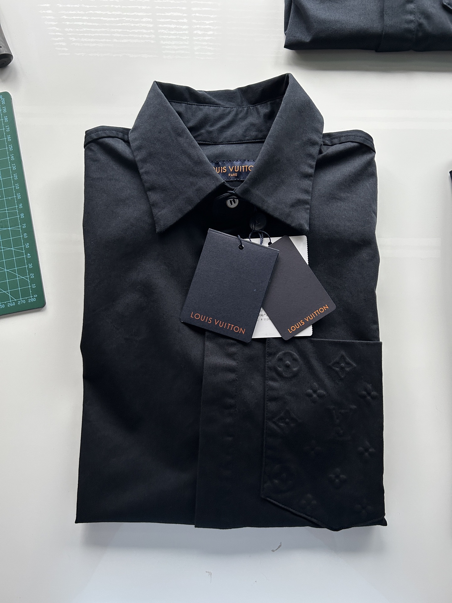 Louis Vuitton25ss压纹印花logo短袖衬衫‼️整件衣服11200购买ZP拆解打造,采用定制混纺斜纹棉面料,胸前贴袋设计,呈现Monogram标识压纹,定制标志性polo领,硬挺版型,门襟开模定制LV字母标识珠光纽扣,配有五金底座,真正做到1:1copy 码数:XS S M L