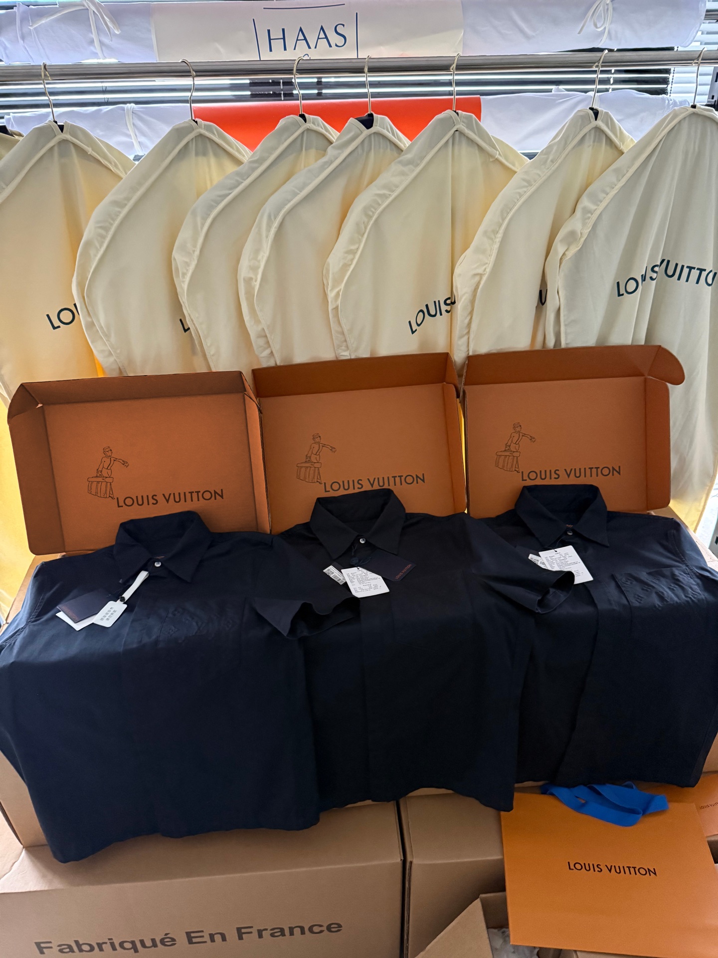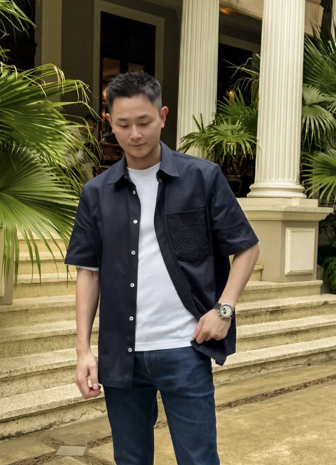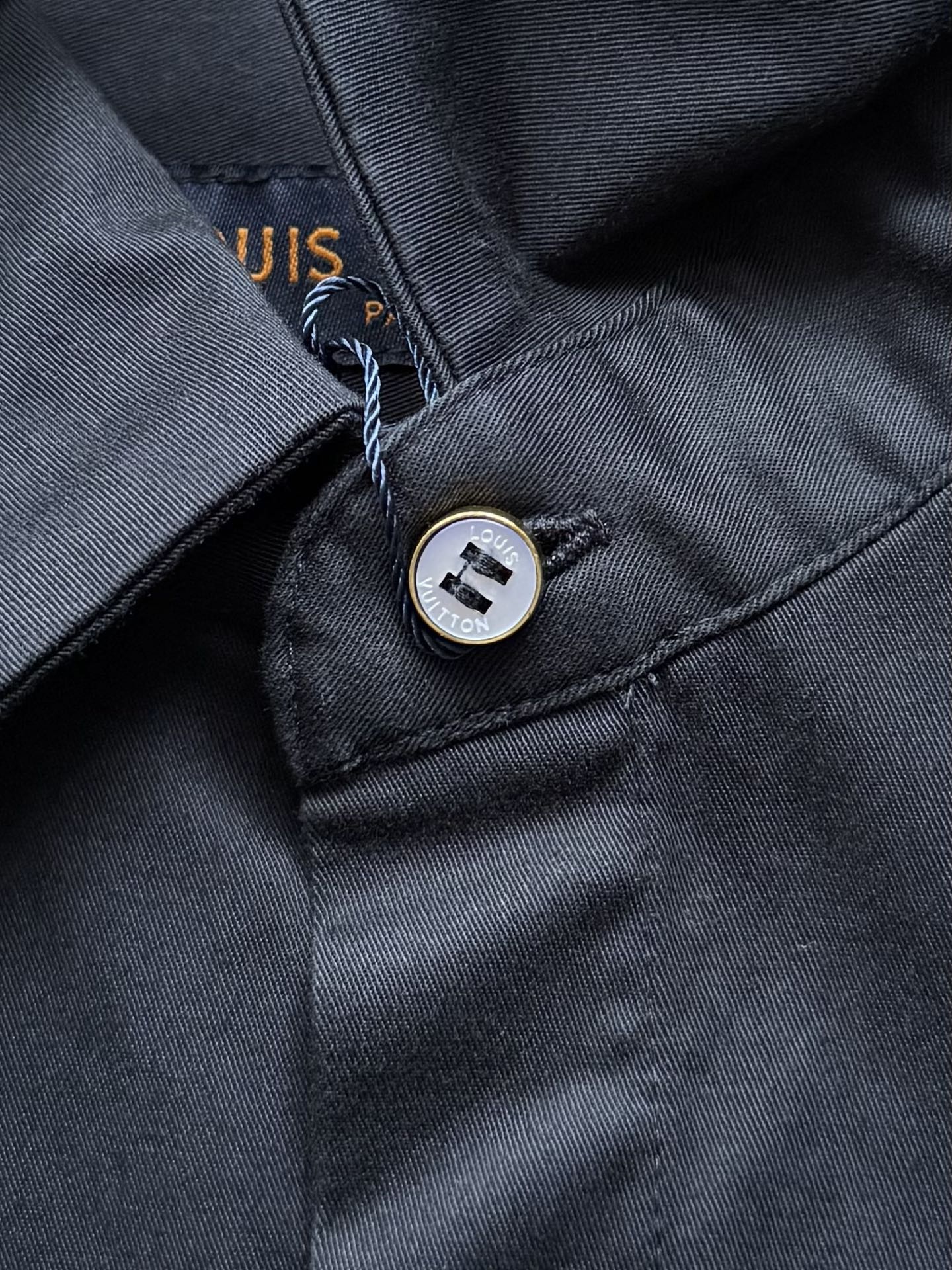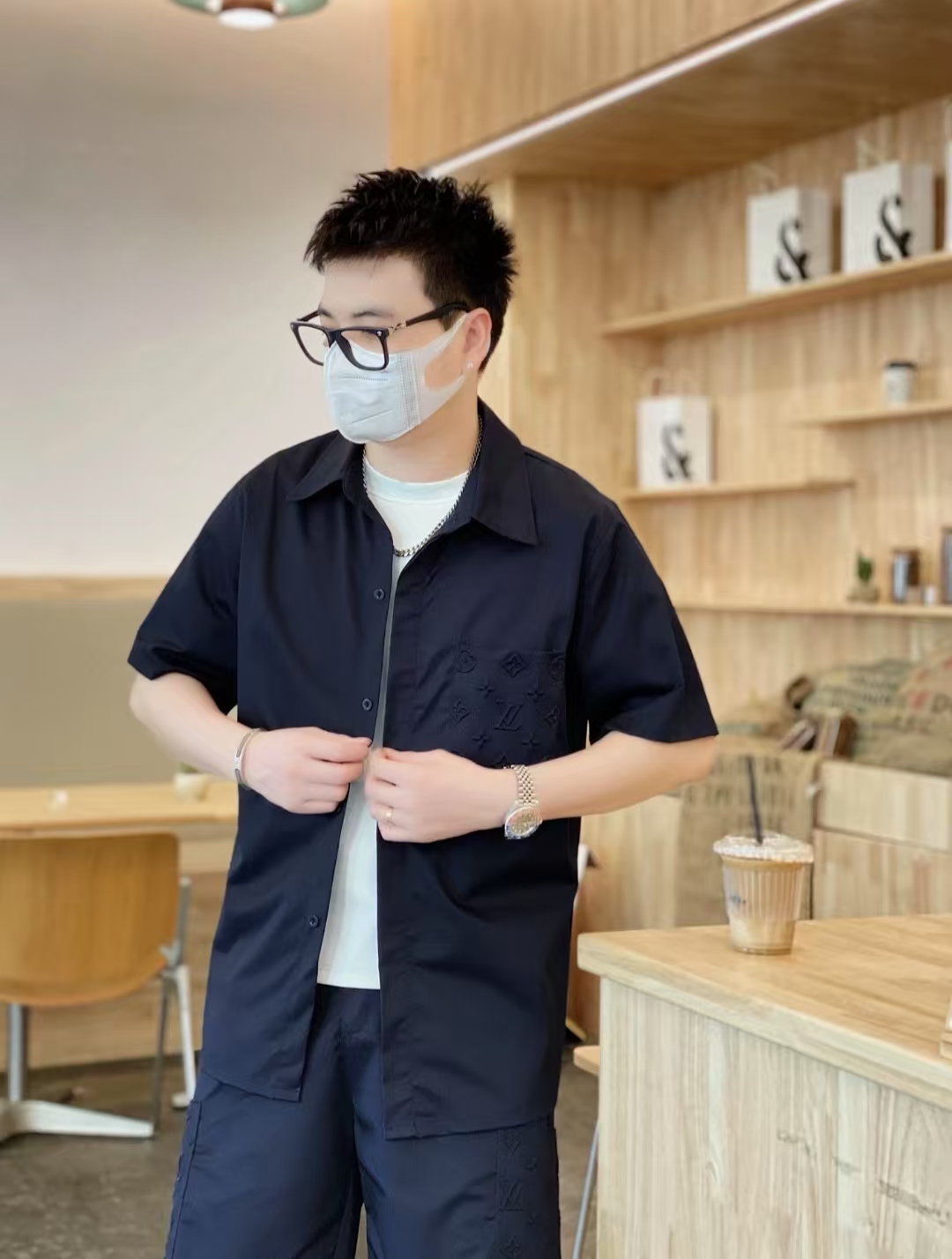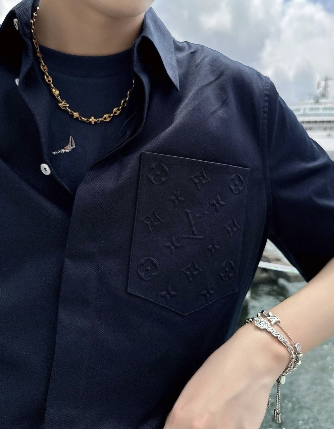 Louis Vuitton25ss压纹印花logo短袖衬衫‼️整件衣服11200购买ZP拆解打造,采用定制混纺斜纹棉面料,胸前贴袋设计,呈现Monogram标识压纹,定制标志性polo领,硬挺版型,门襟开模定制LV字母标识珠光纽扣,配有五金底座,真正做到1:1copy 码数:XS S M L