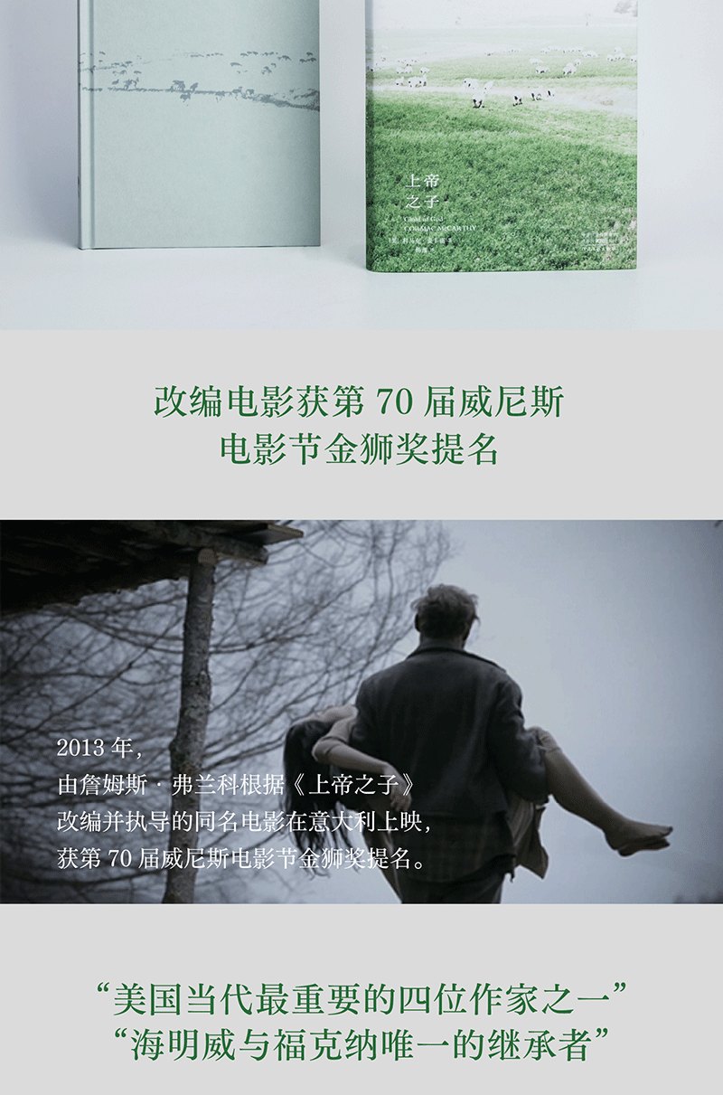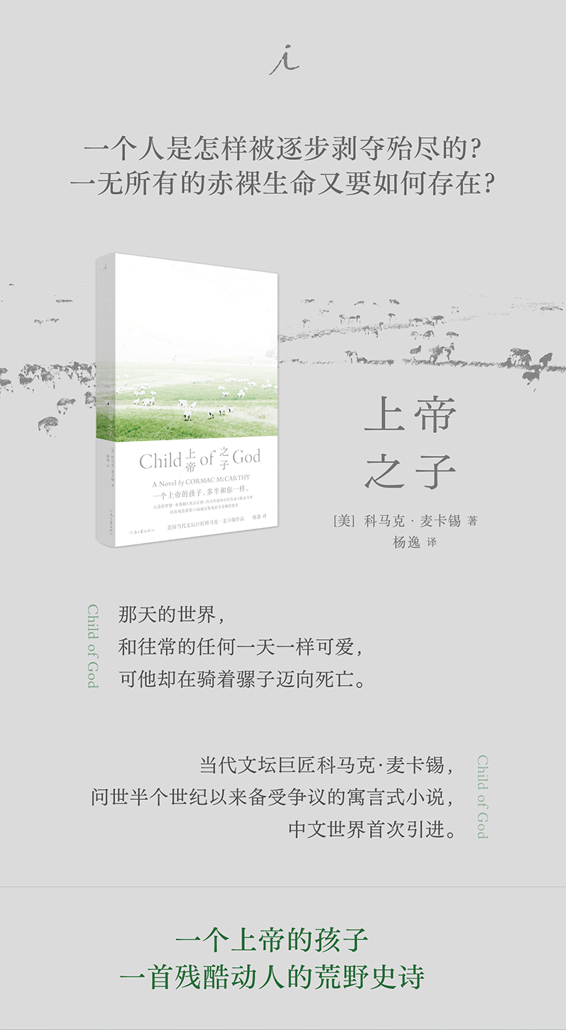 《上帝之子》是科马克·麦卡锡的第三部小说,以冷静日常的笔调书写谋杀事件与神秘自然,简洁粗砺的短句与缭绕怪诞的长句交错,具有浓郁的“南方哥特”气息与暗黑浪漫主义色彩。在麦卡锡上帝般漠然而又悲悯的目光之下,青年巴拉德孤绝的一生如同一首残酷动人的荒野史诗,被放逐之人终而复始地无声吟唱。