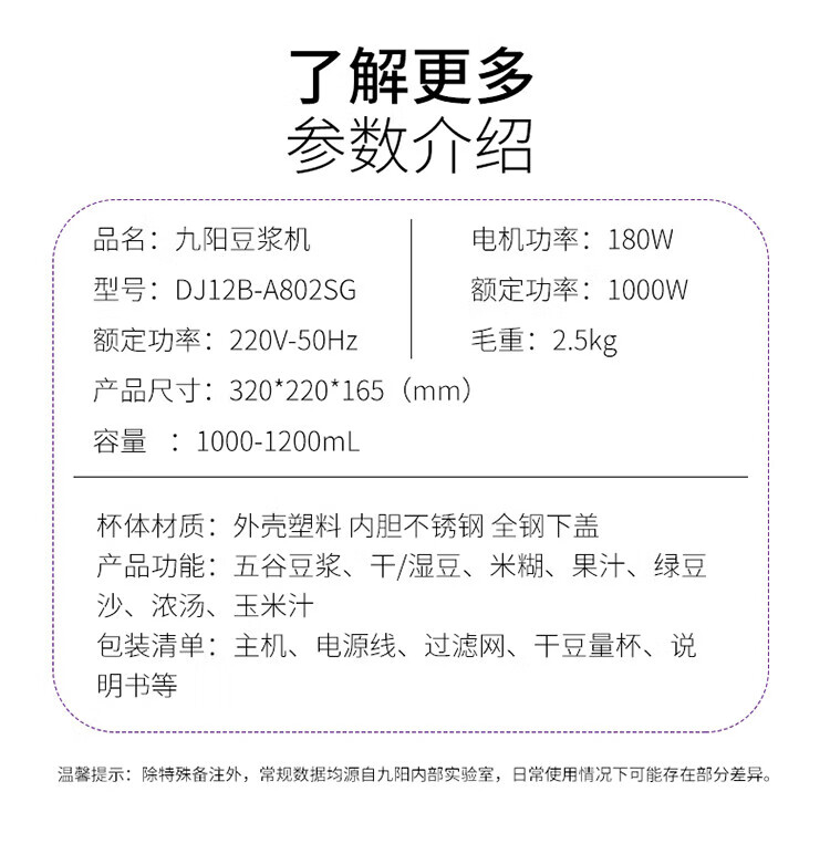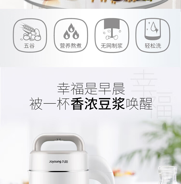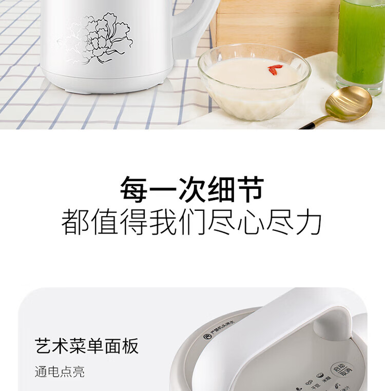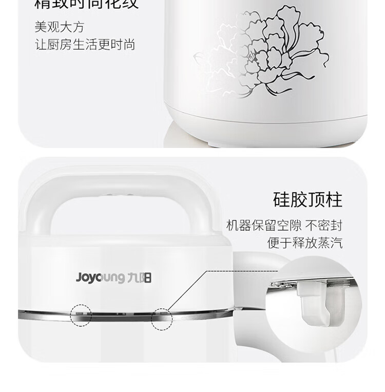 九阳(Joyoung)家用 多功能豆浆机 304不锈钢 自动微电脑控制 豆浆机 典雅白 DJ12B-A802SG
