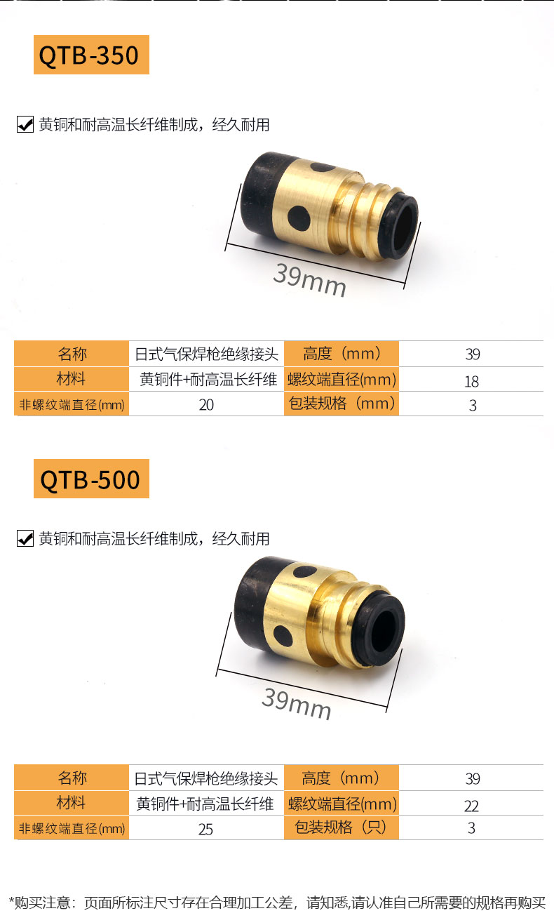 上海沪工气保焊枪配件QTB-350绝缘接头 【3只装】QTB-500绝缘接头 【3只装】二保焊枪配件松下款绝缘体