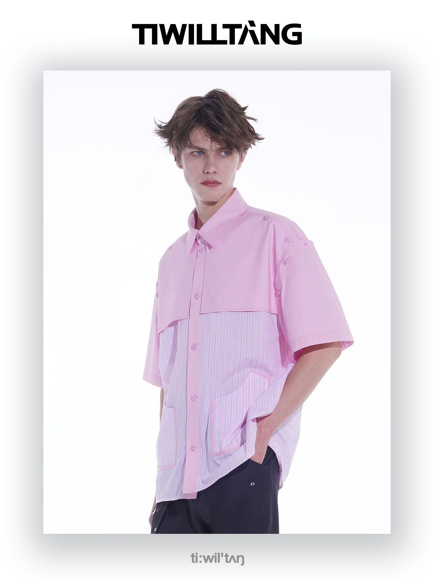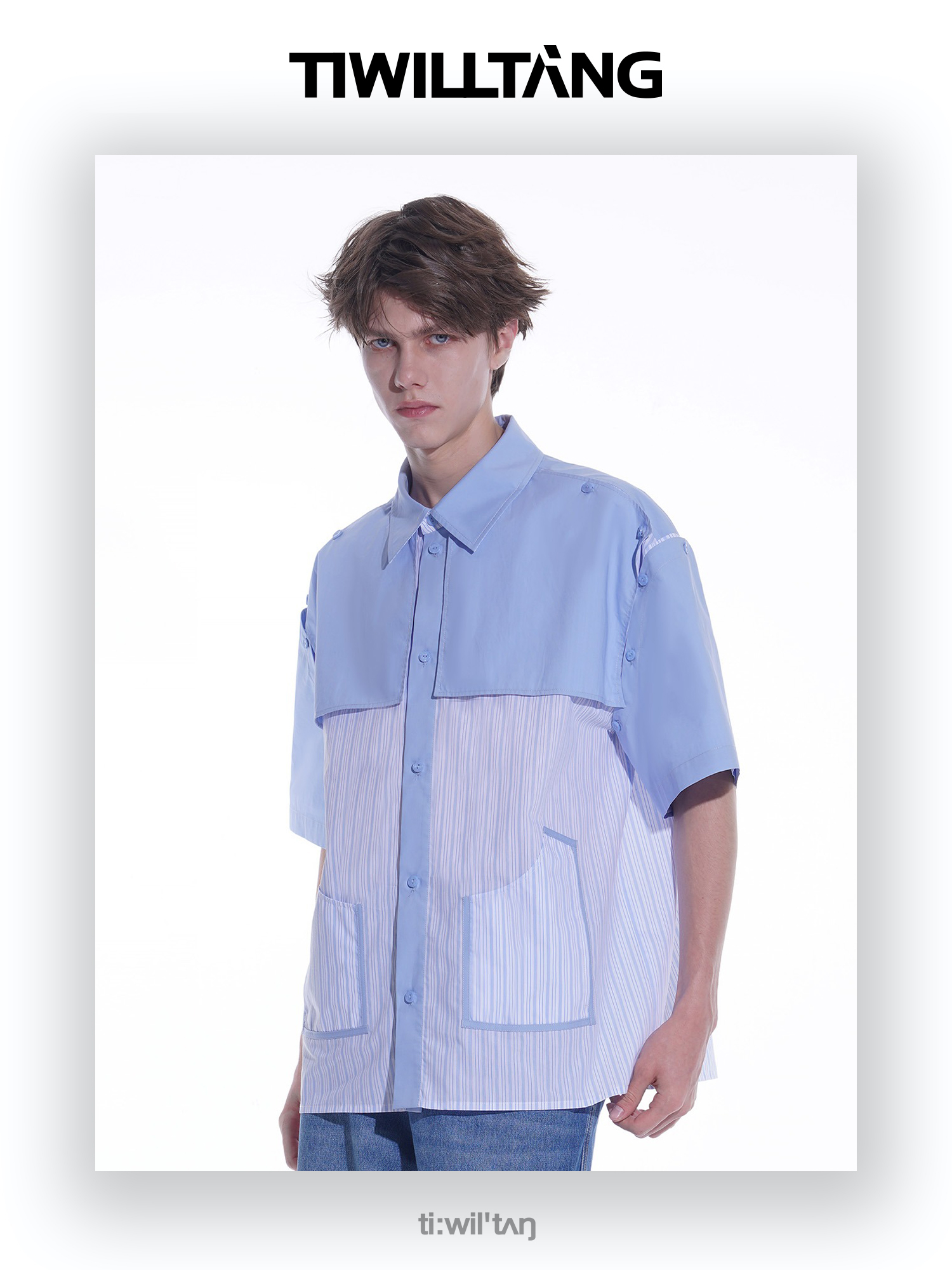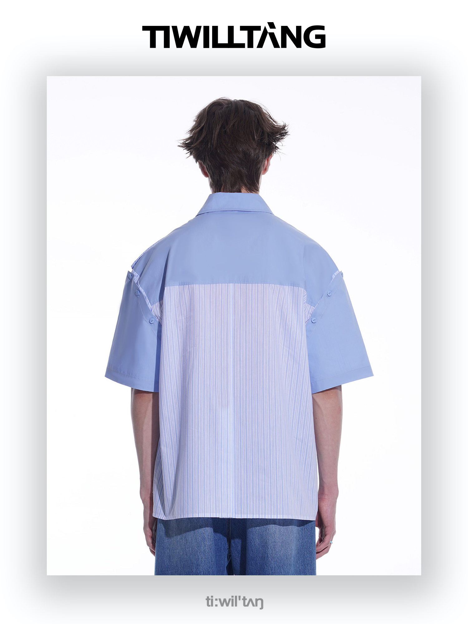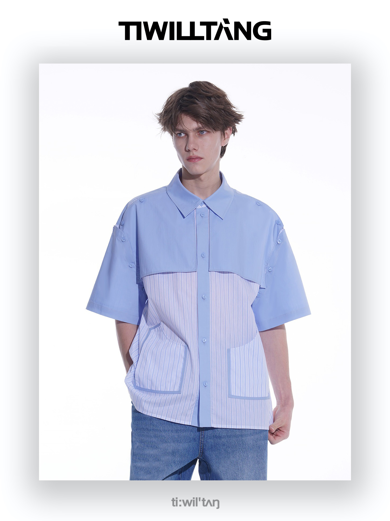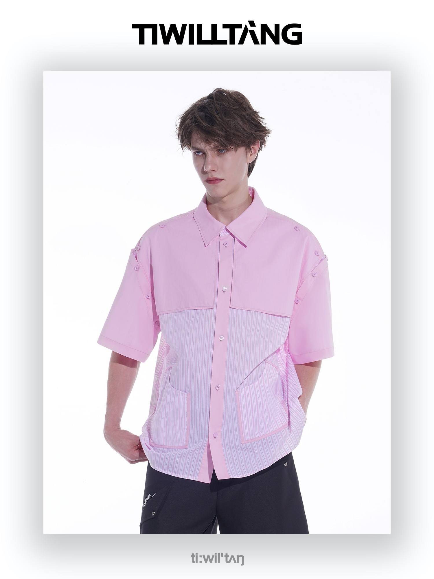 启世录TIWILLTANG“复卸冷凝”夏季复片脱卸短袖衬衫男