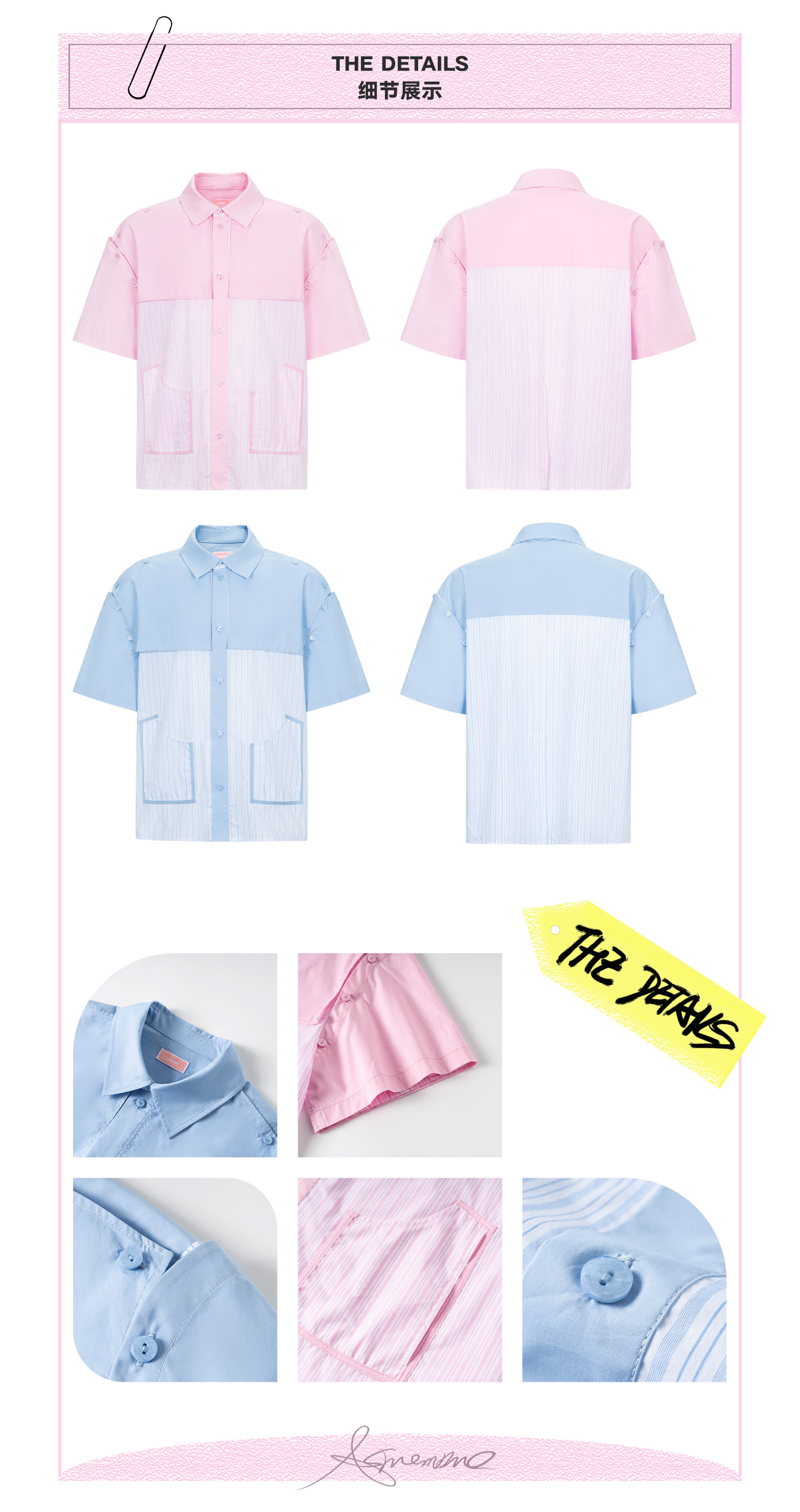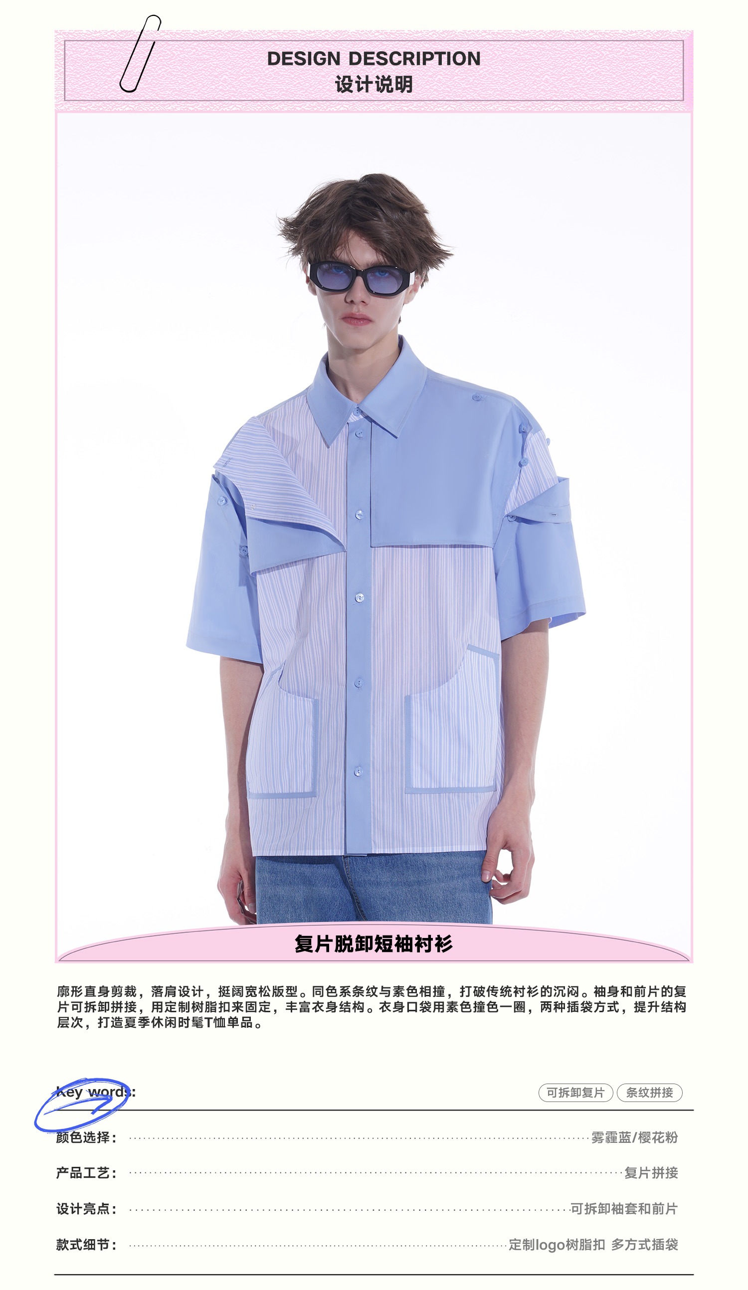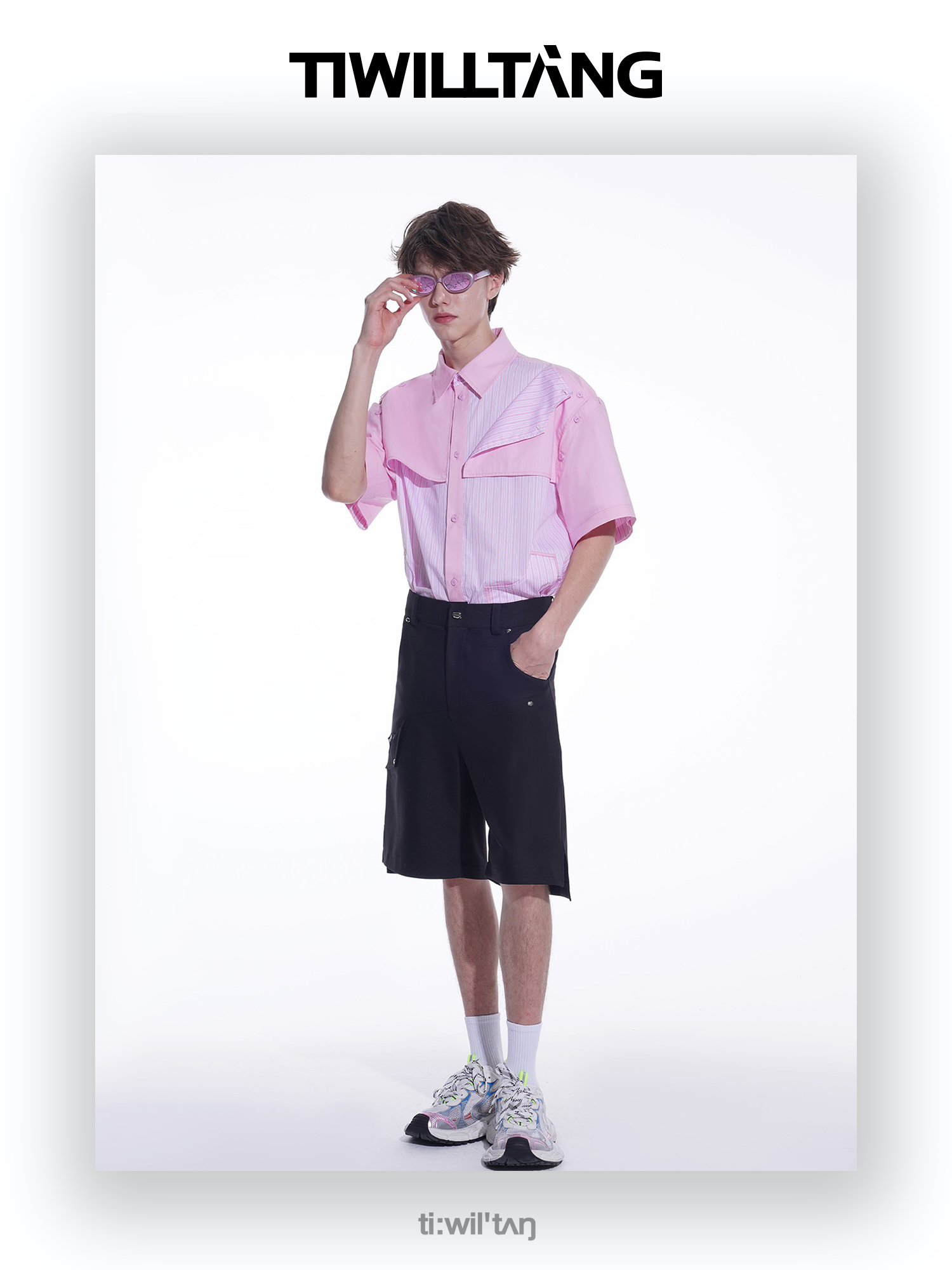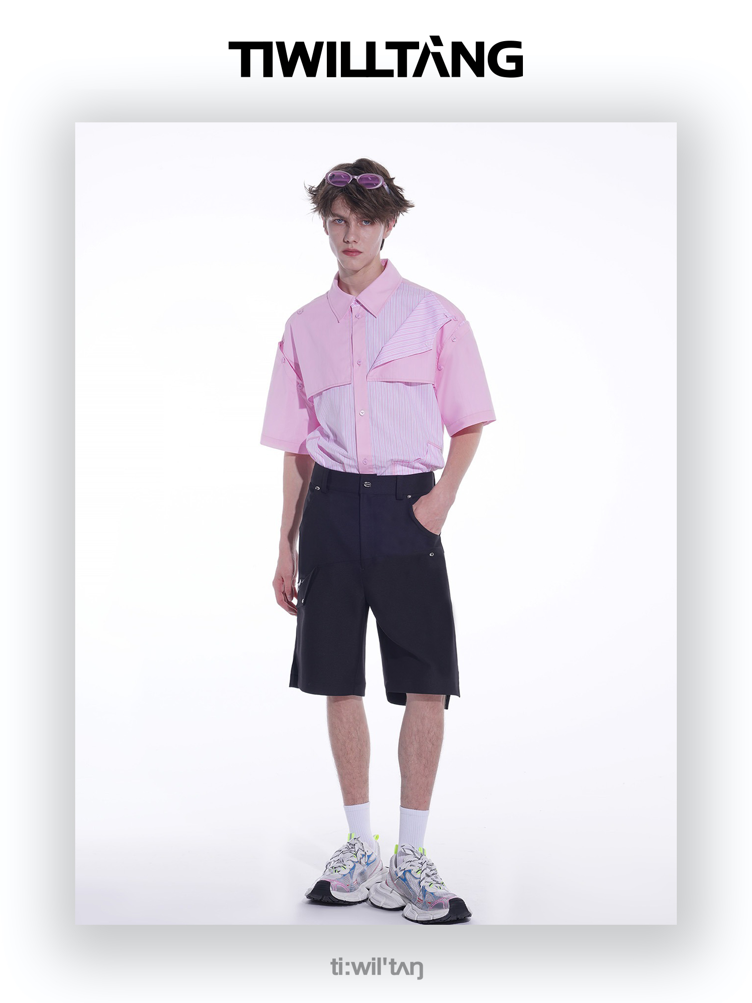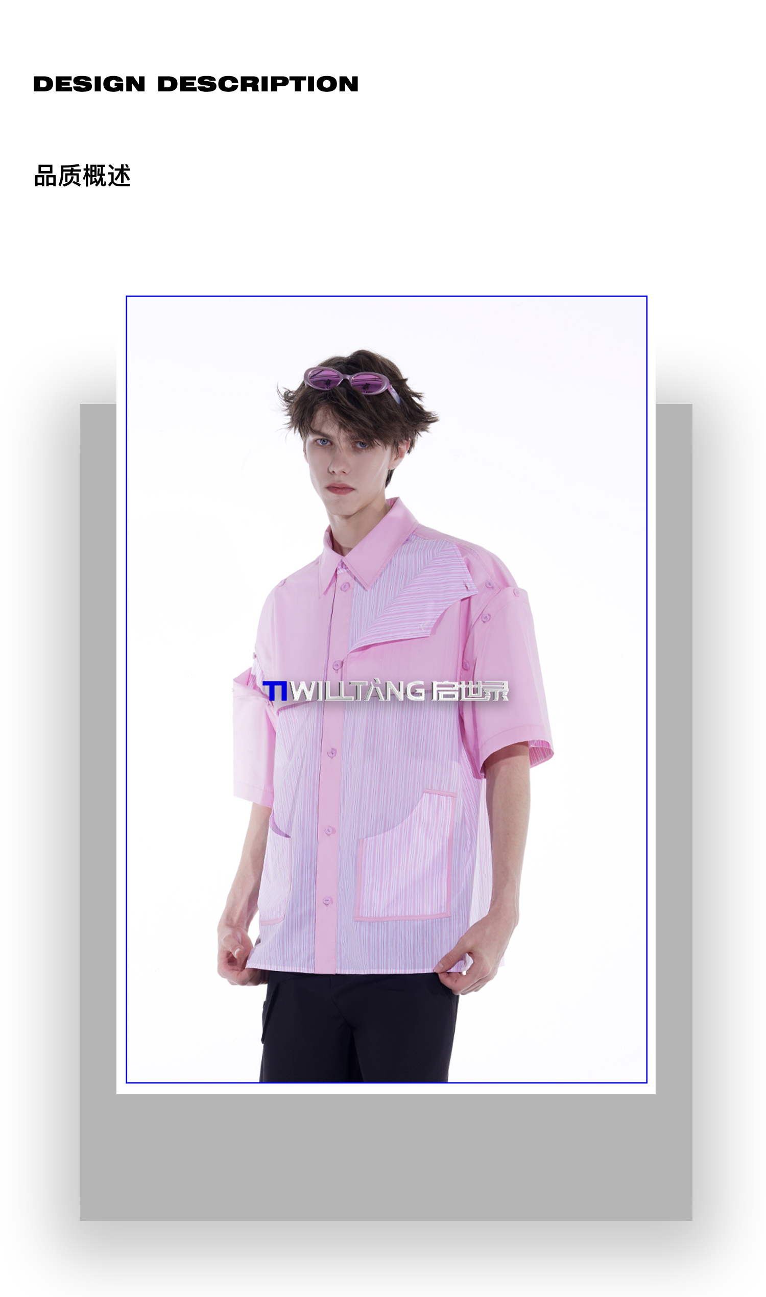 启世录TIWILLTANG“复卸冷凝”夏季复片脱卸短袖衬衫男