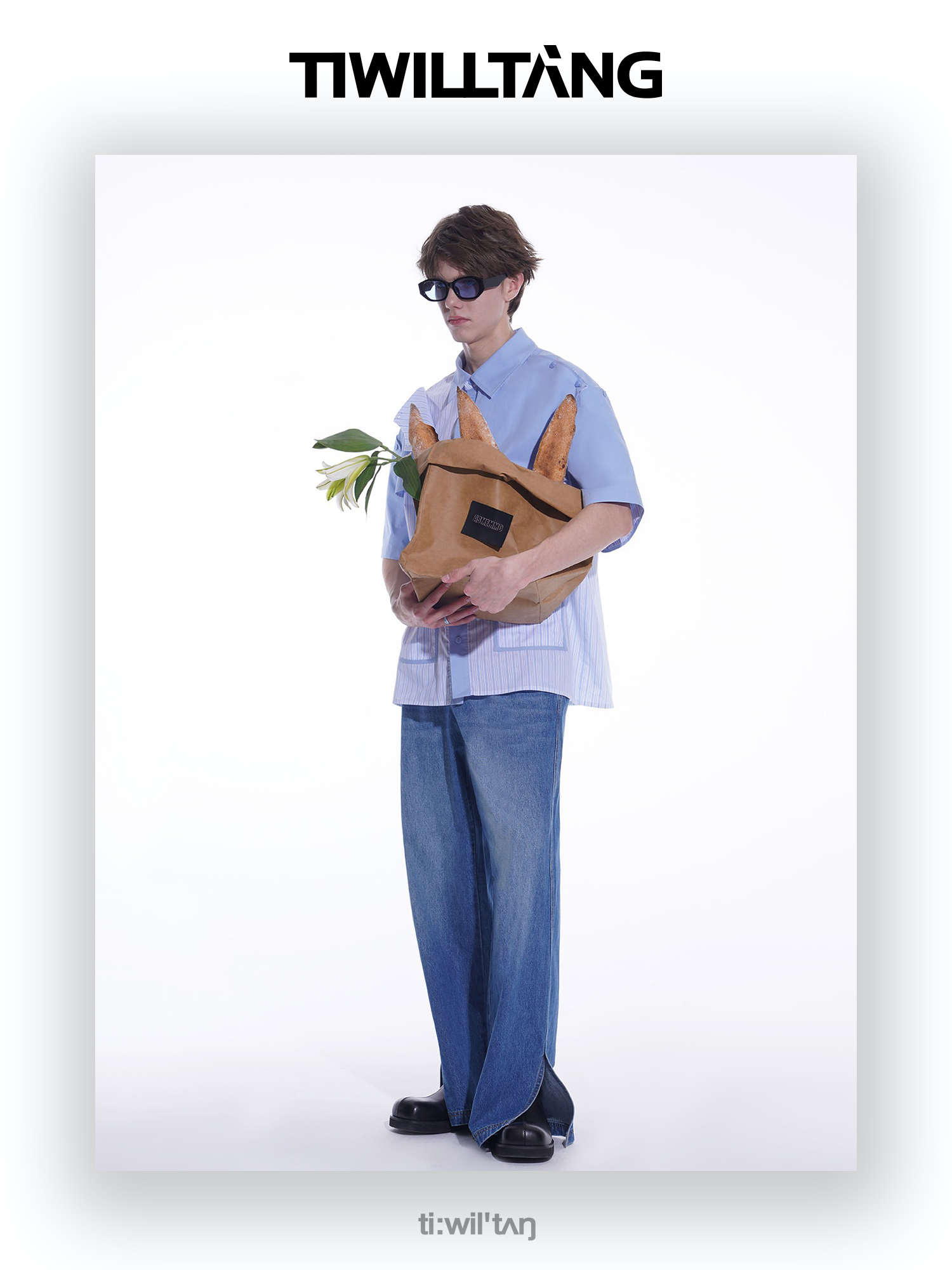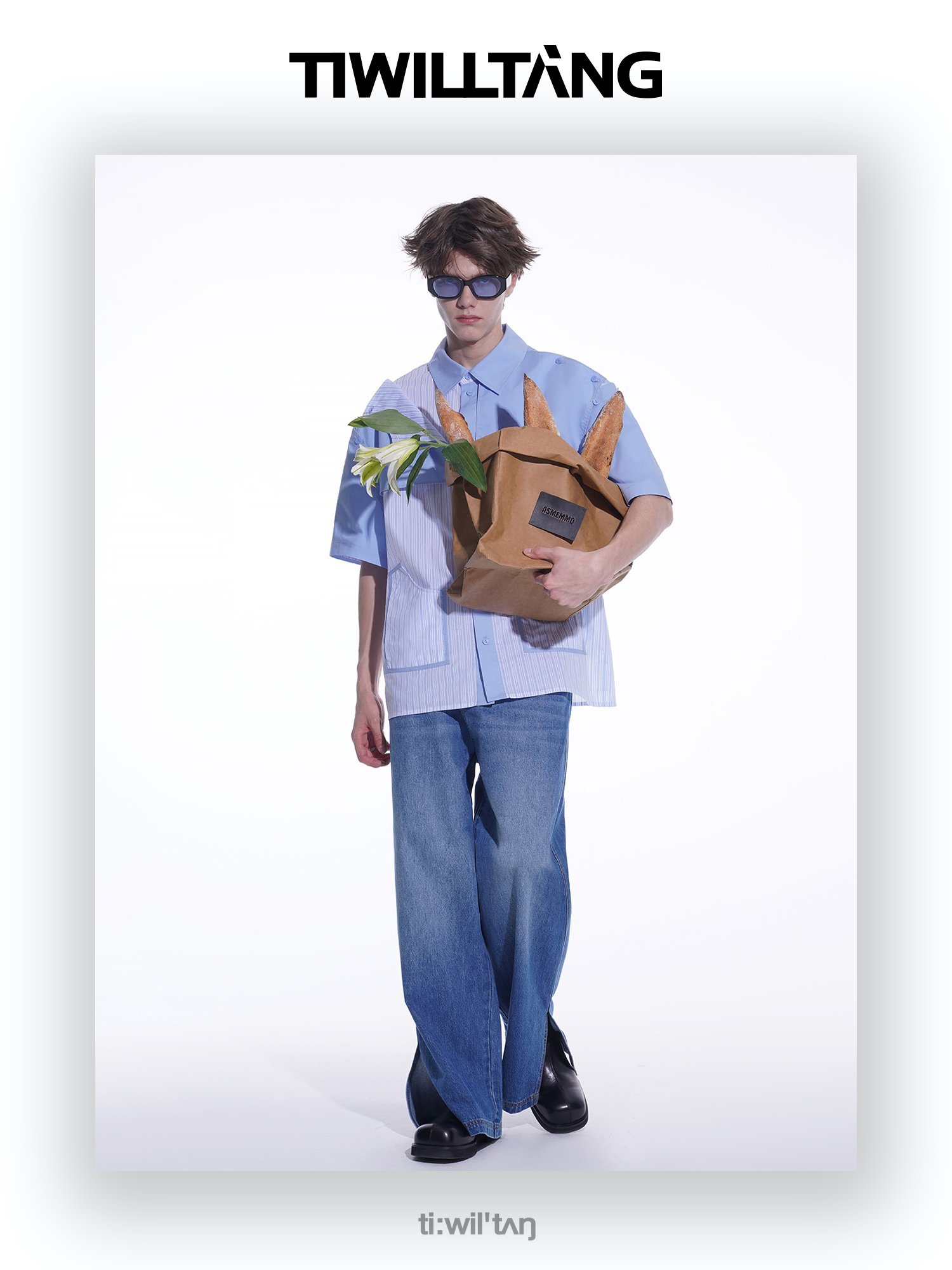 启世录TIWILLTANG“弦月复形”诗意蓝2.0明星飘带领休闲奢灰衬衫