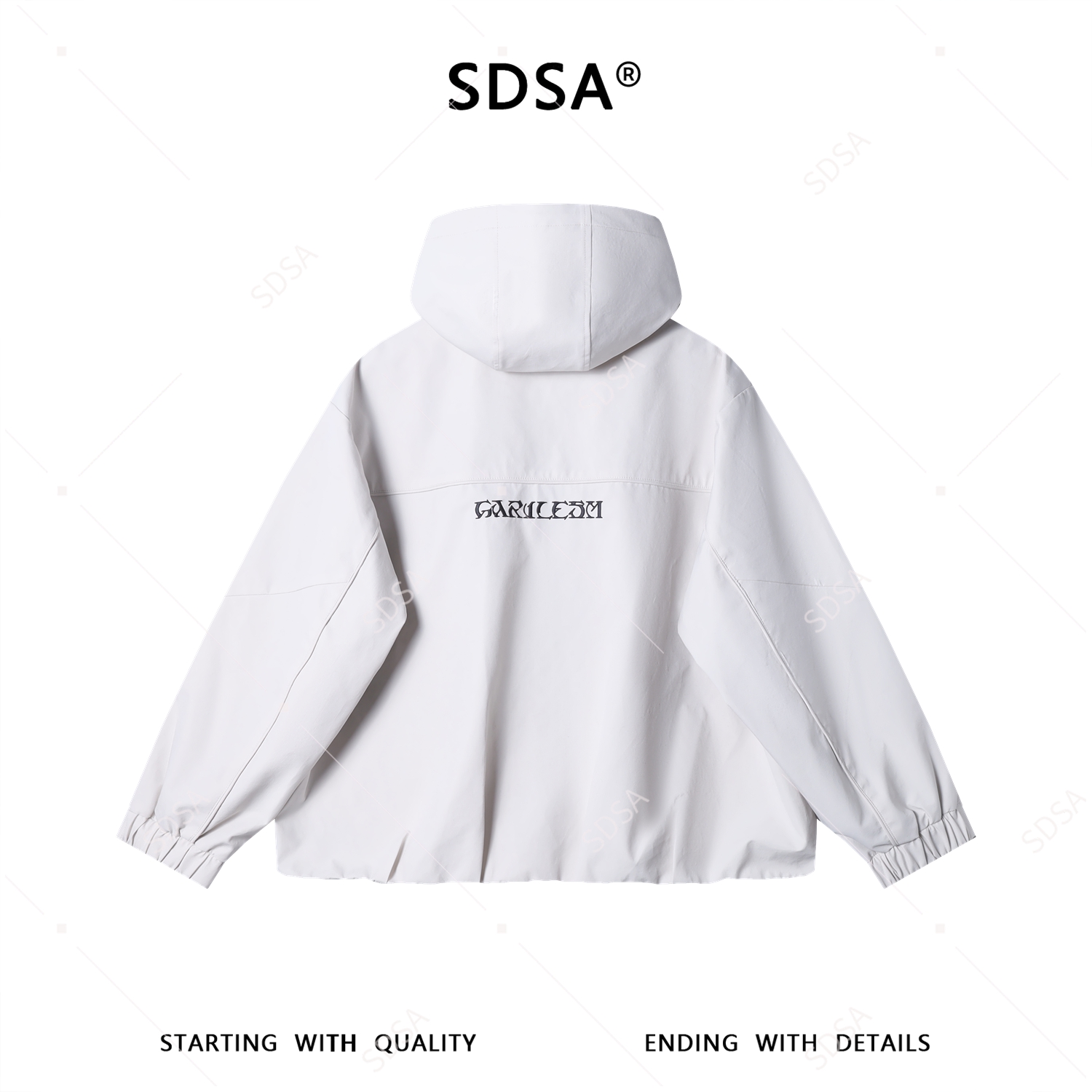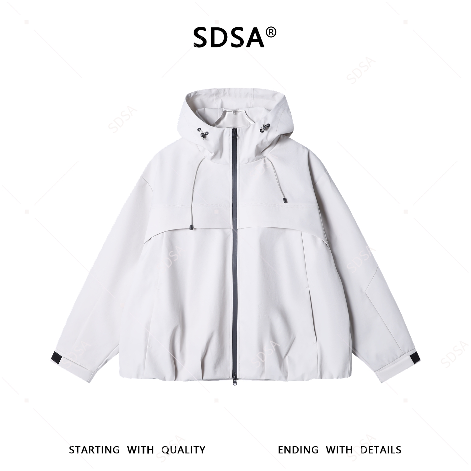 SDSA男装2026新款高贵轻奢美式百搭纯色拉链立领连帽夹克外套宽松