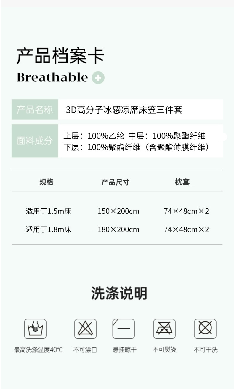 GRACE SPACE格调空间 3D高分子冰感凉席床笠三件套