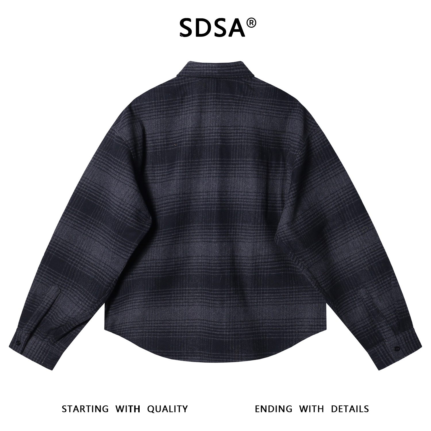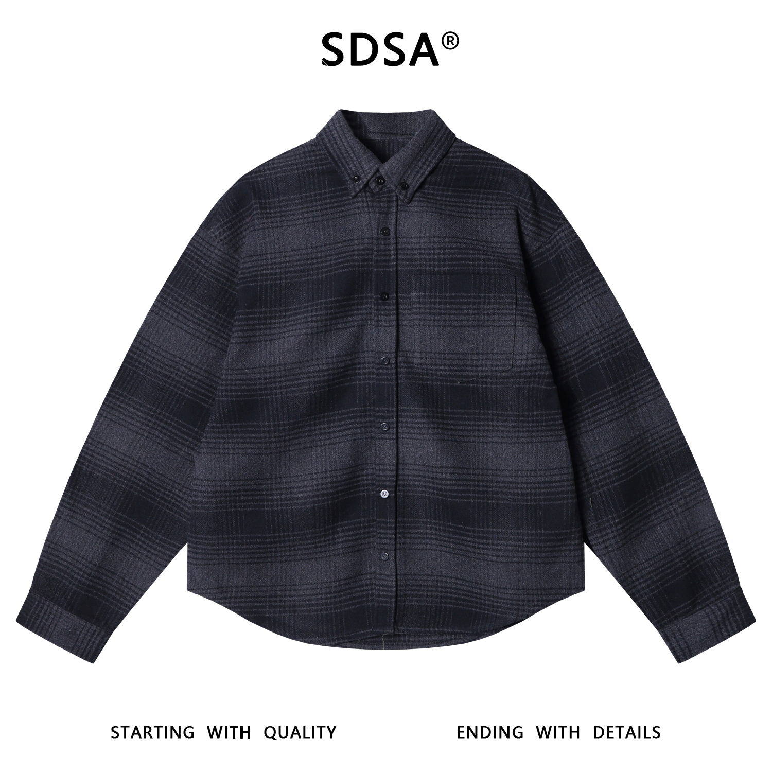 3060SDSA秋冬新款痞帅男装韩版撞色格纹纽扣翻领长袖衬衫百搭针织衬衣
