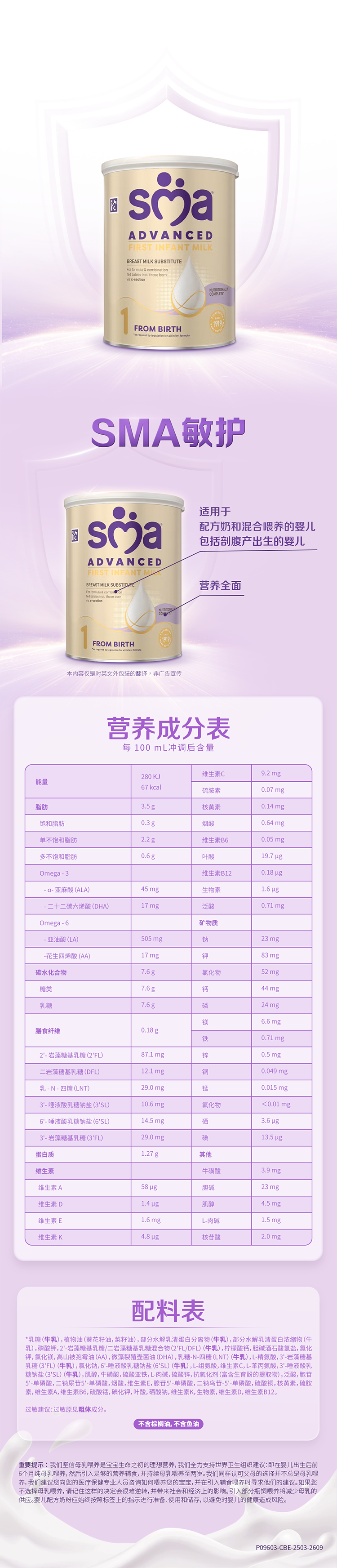 【品牌直供】Wyeth惠氏SMA敏护婴儿配方奶粉 1段 0-6月 800g
