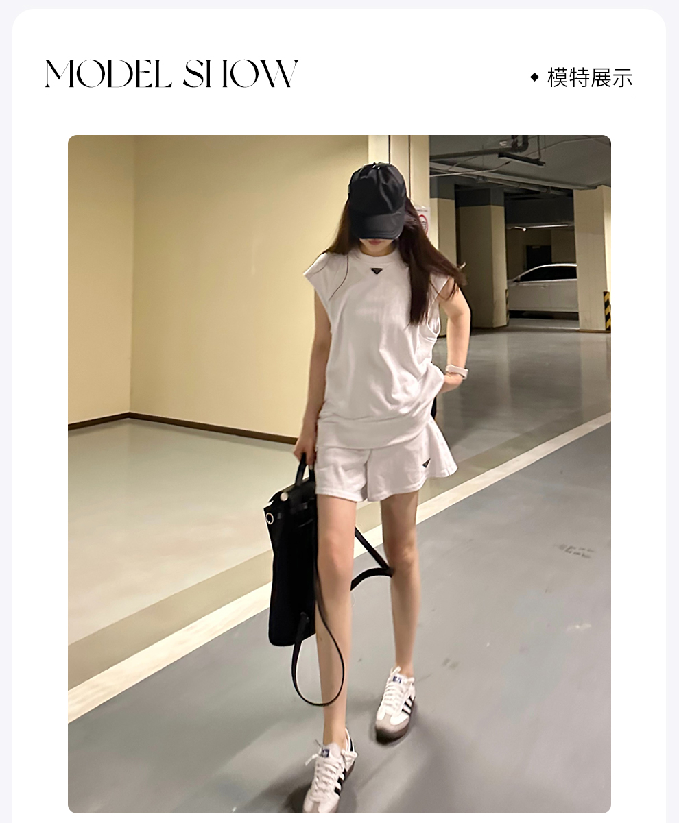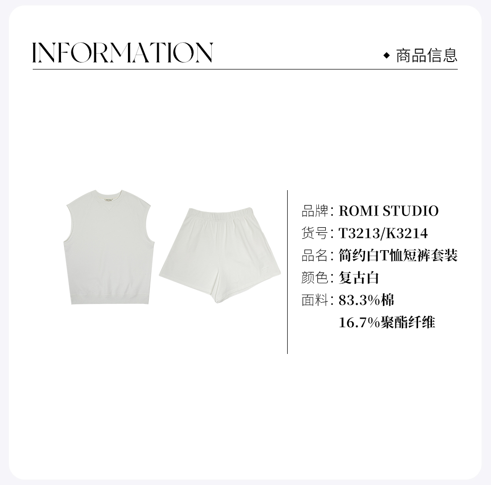 ROMI STUDIO【luxy系列】运动休闲 简约白T恤短裤套装T3213/K3214