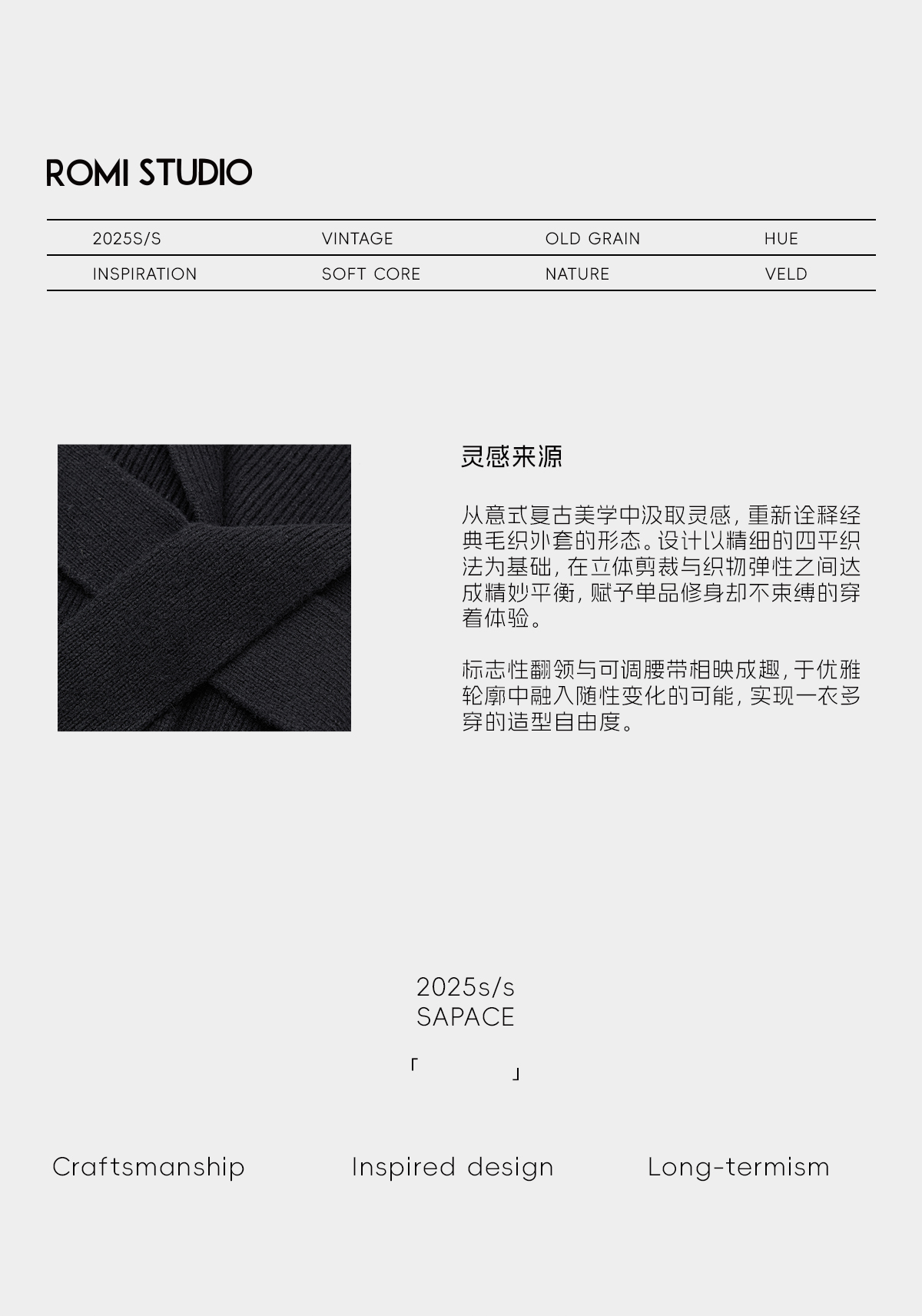ROMI STUDIO"意式理念"100%羊毛挺括收腰翻领毛织外套RWCWST6648