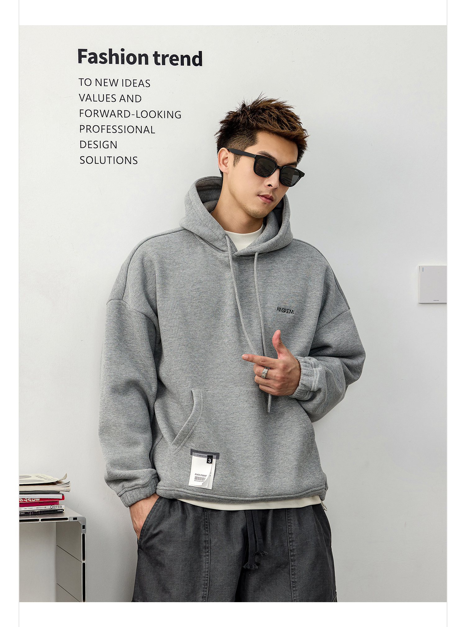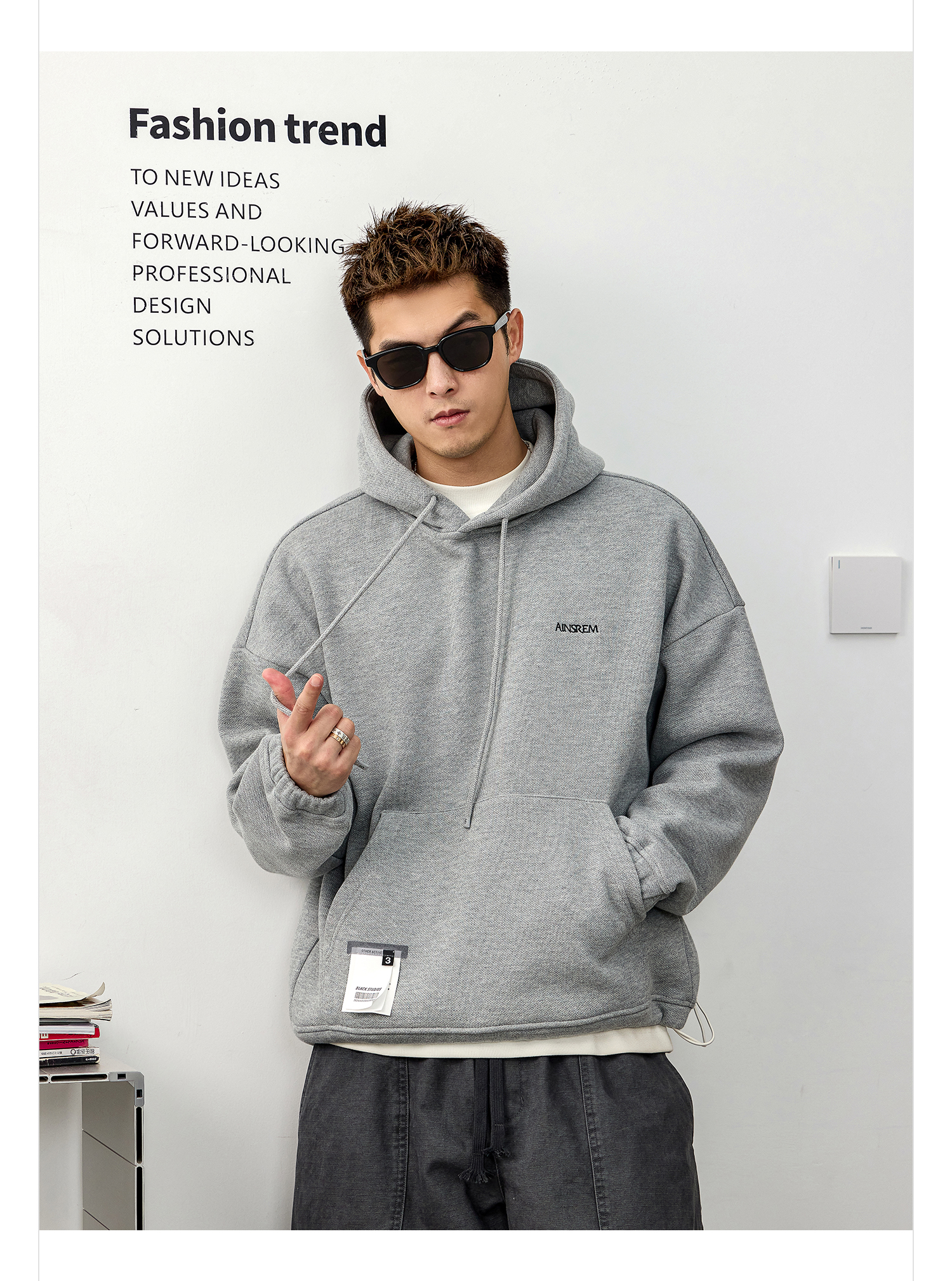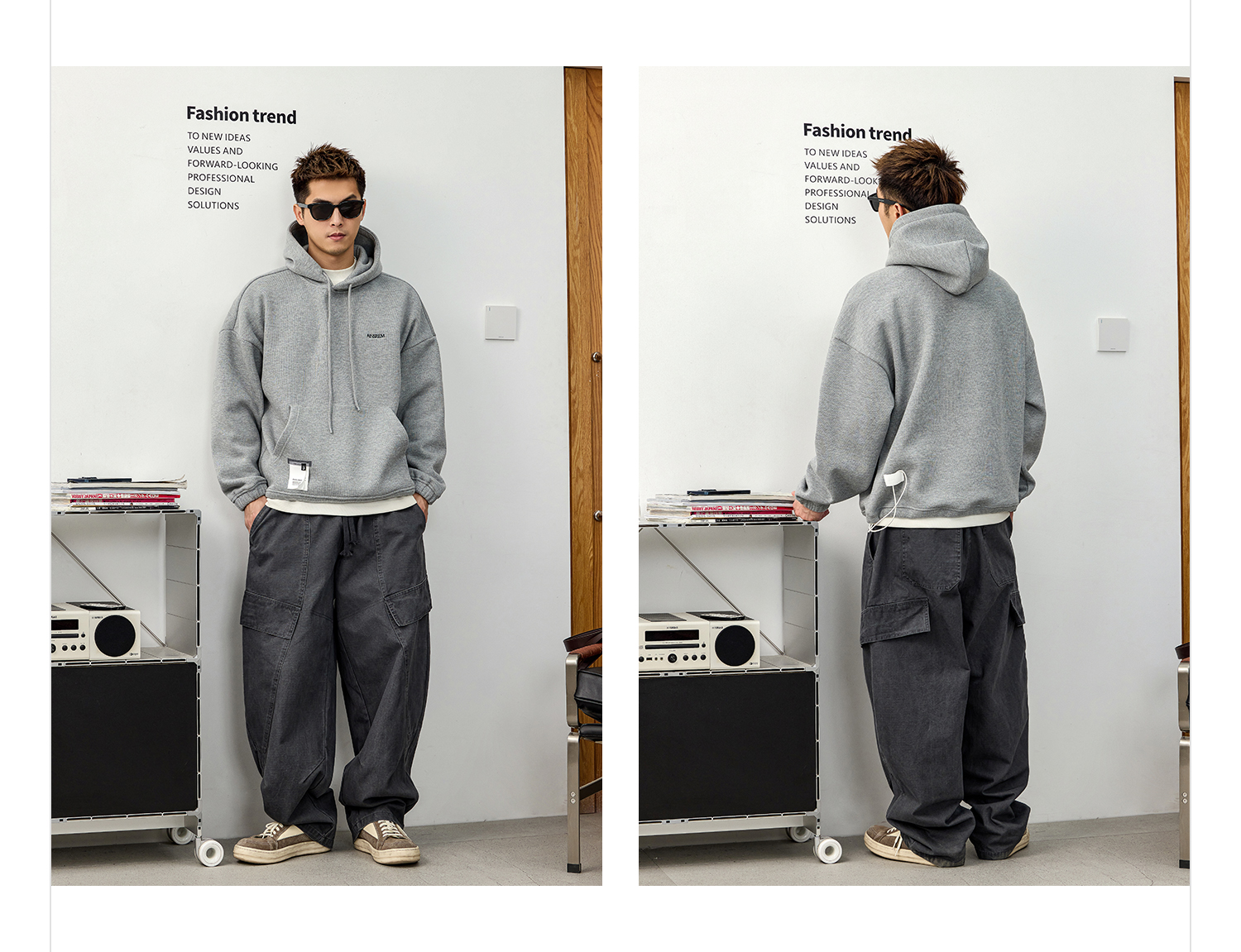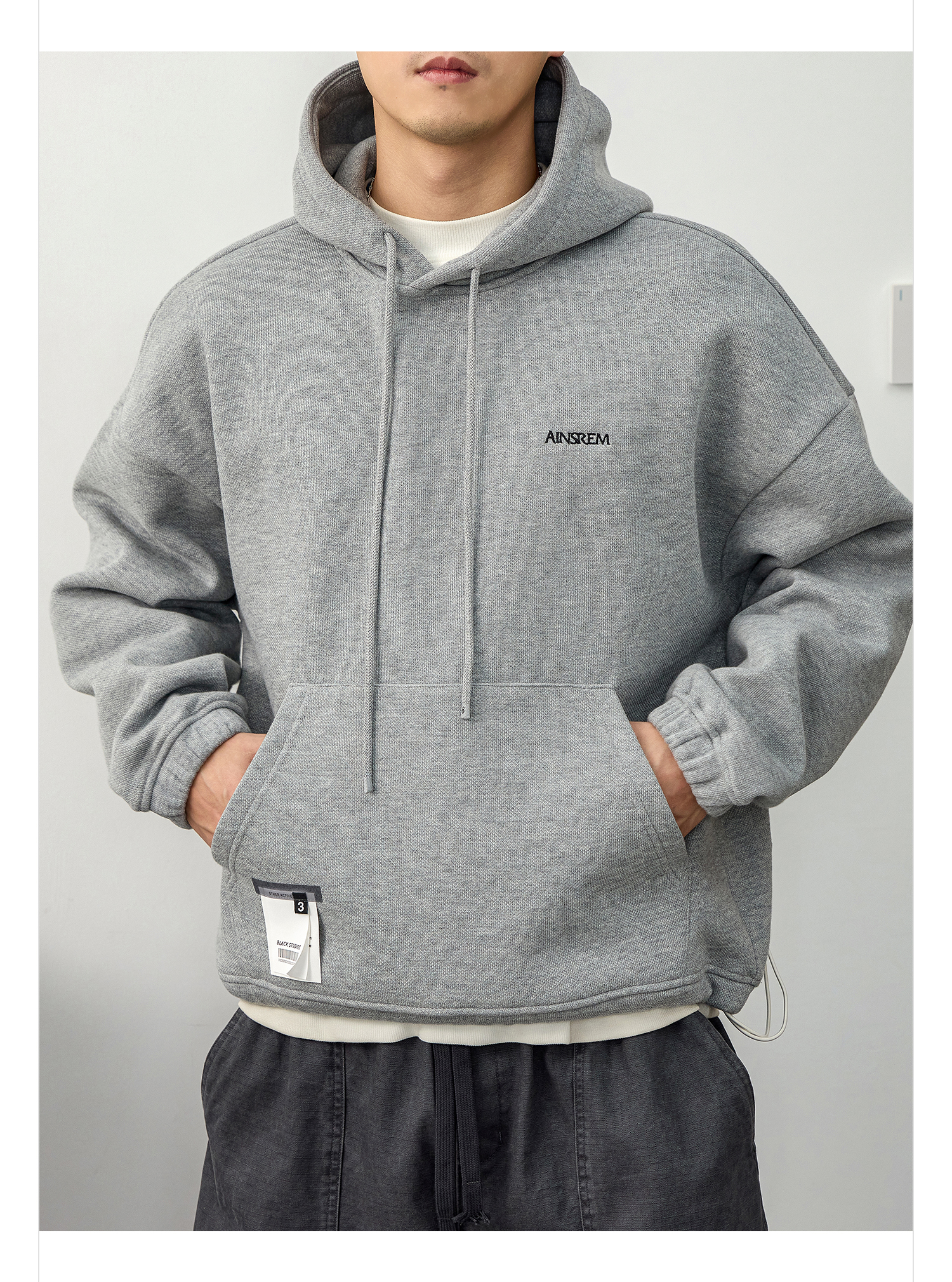 徐太浪【贴布设计 抽绳收腰】灰色卫衣男秋冬休闲运动风帽衫外套