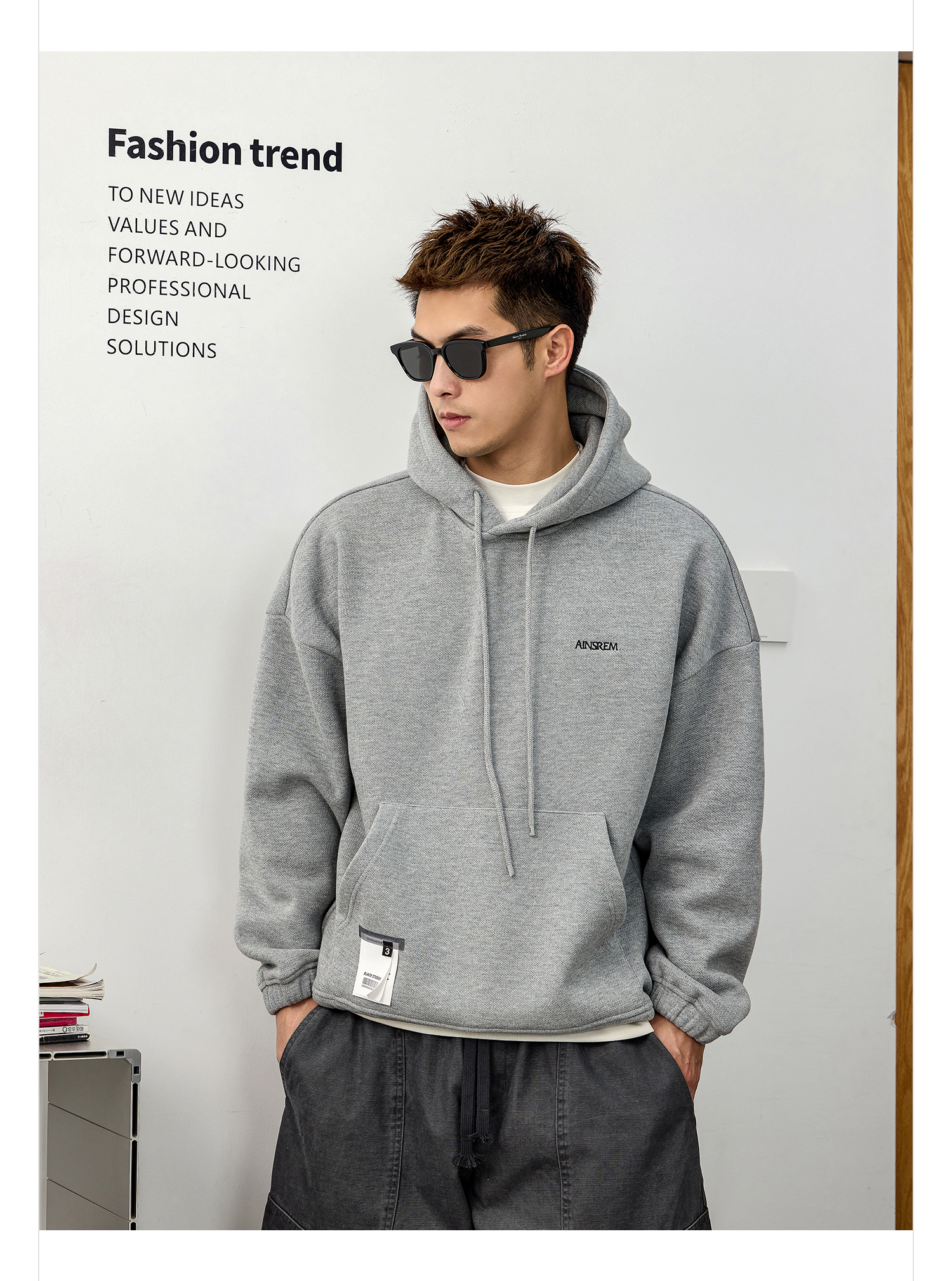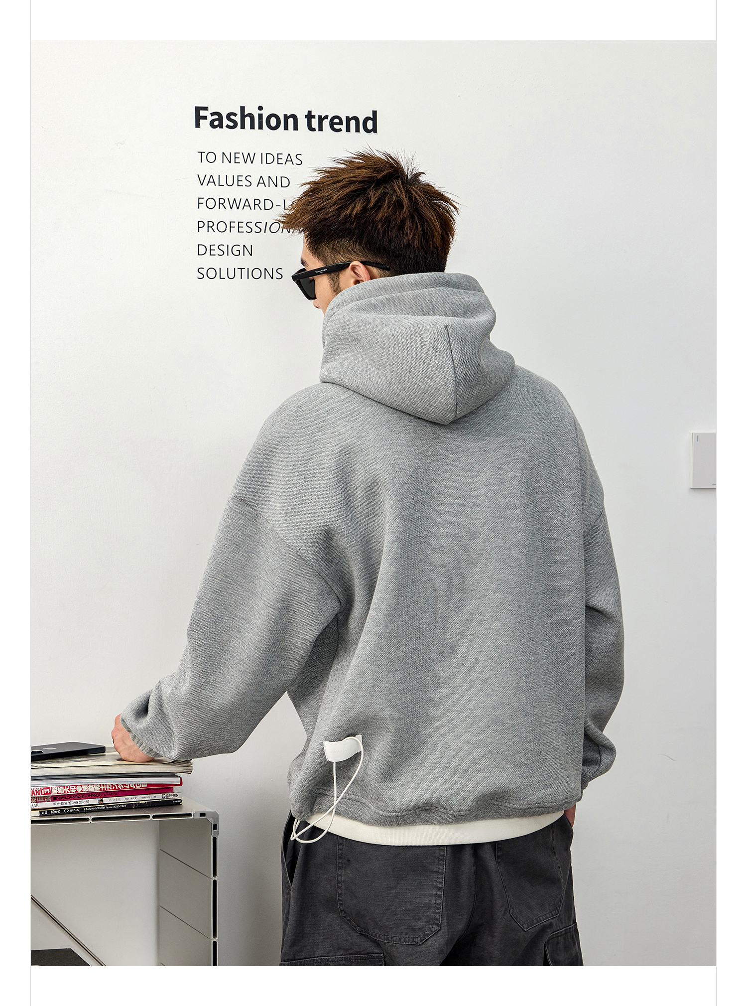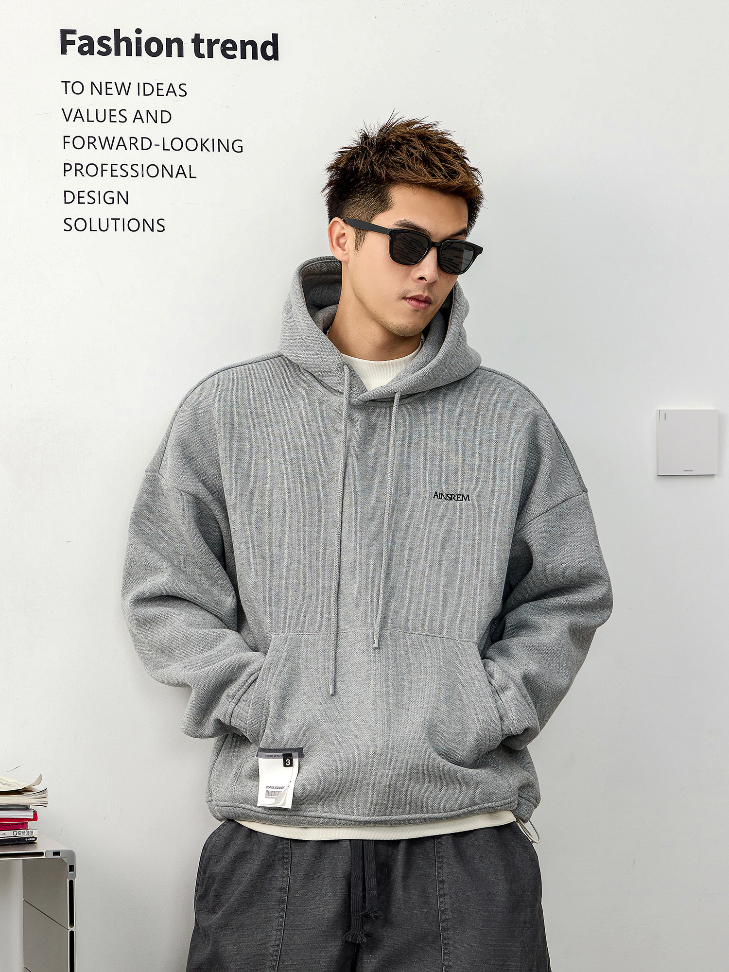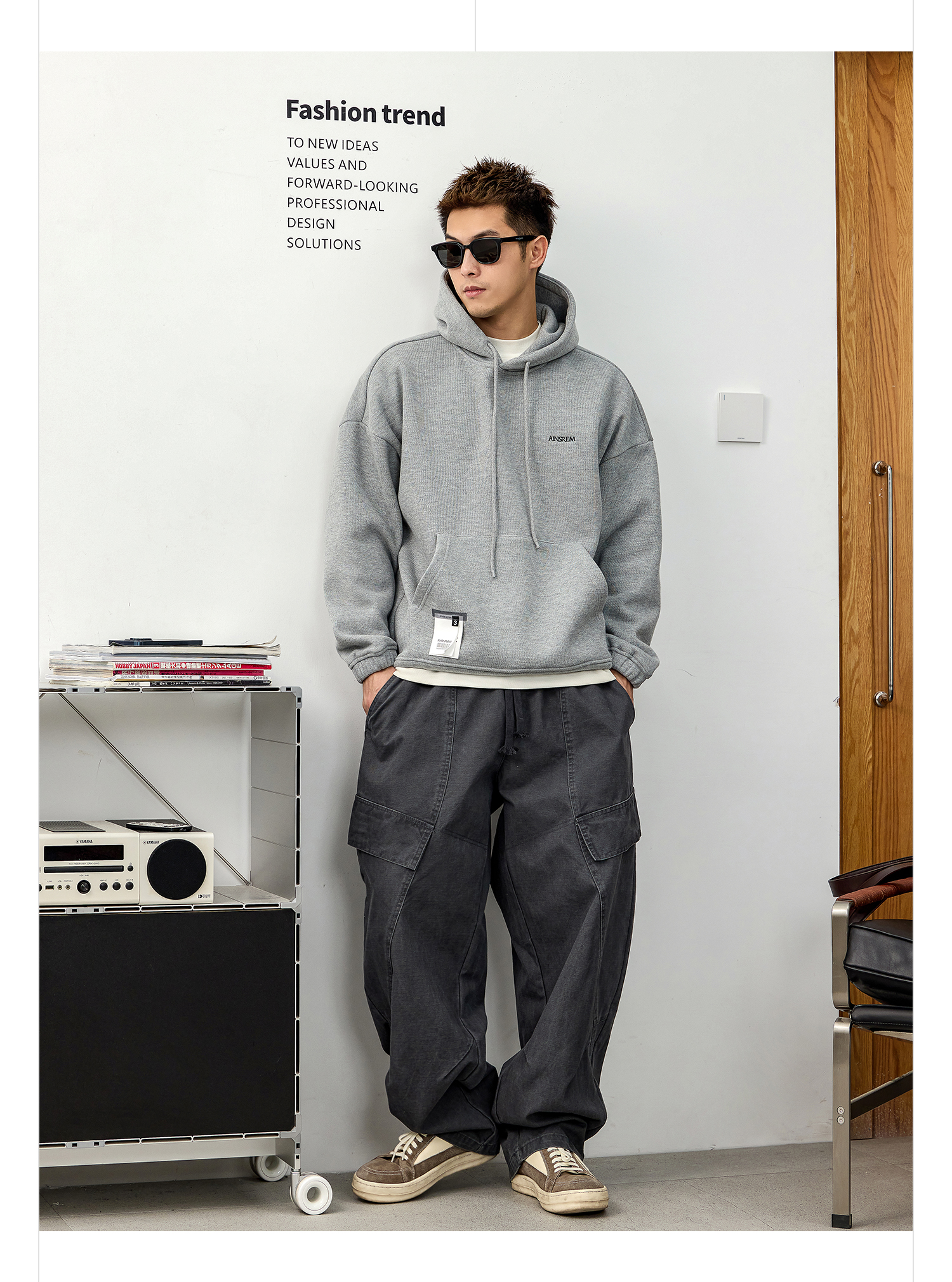 徐太浪【贴布设计 抽绳收腰】灰色卫衣男秋冬休闲运动风帽衫外套
