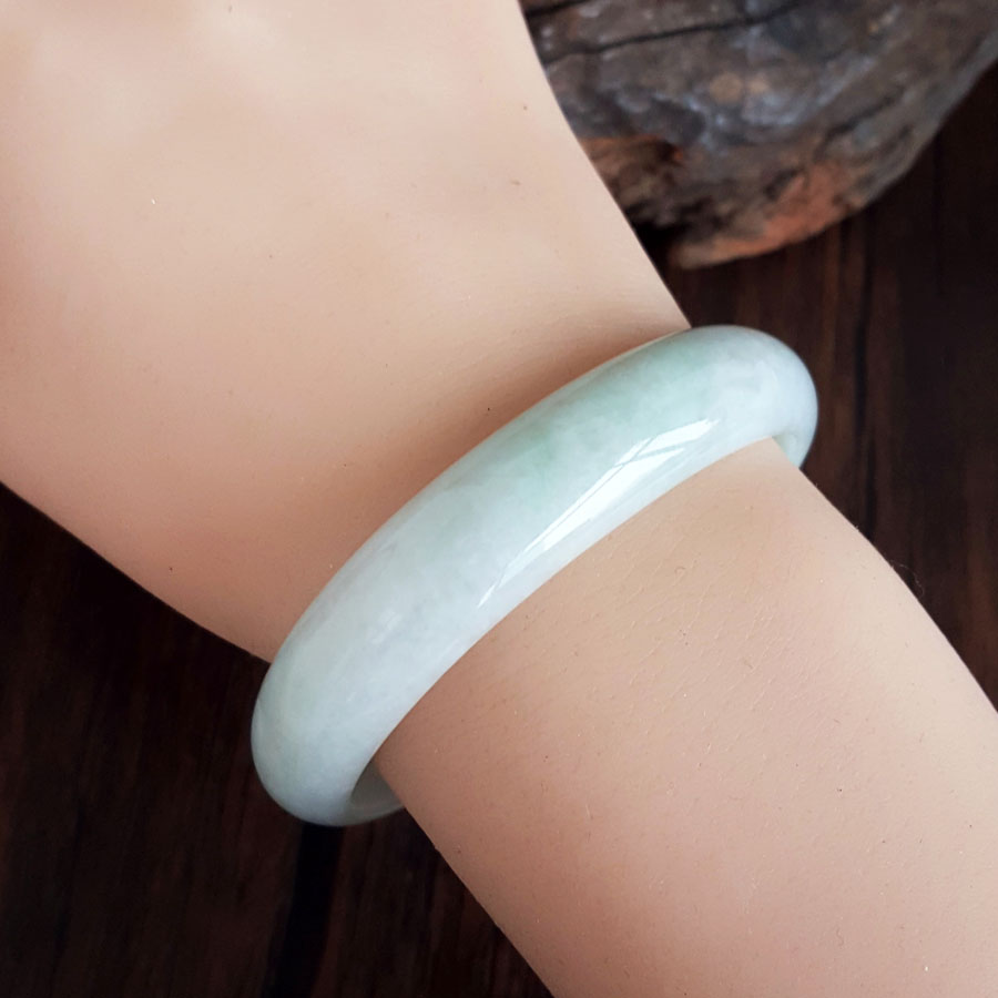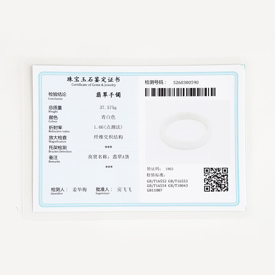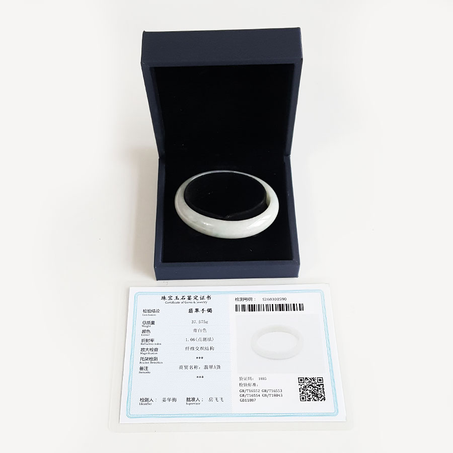 名称 | 天然无纹裂糯种青白底56号翡翠贵妃手镯 |