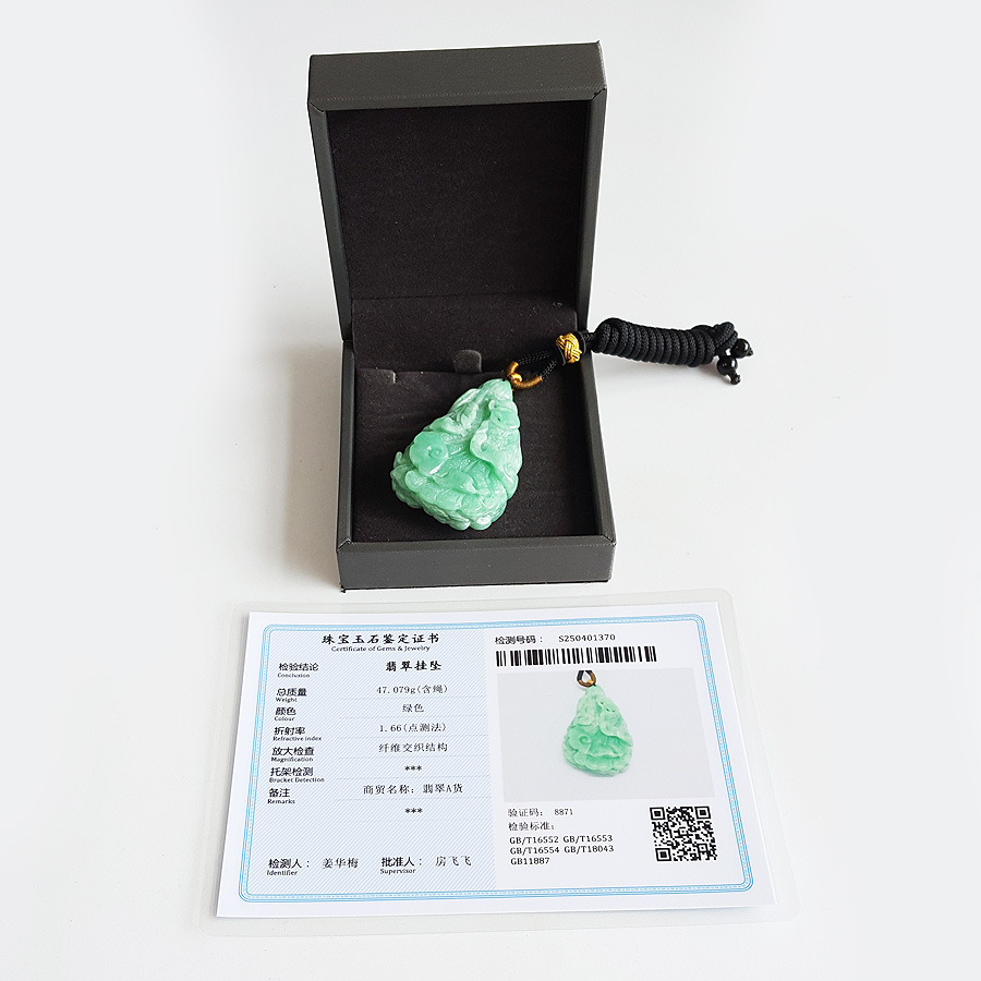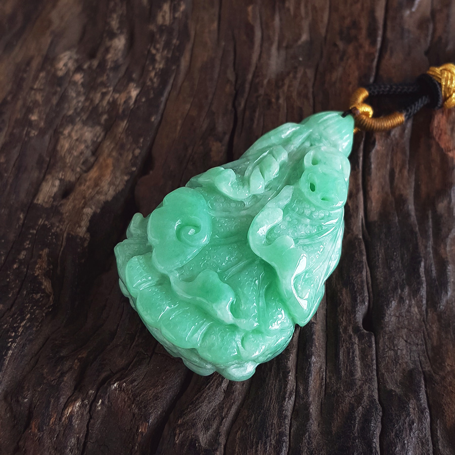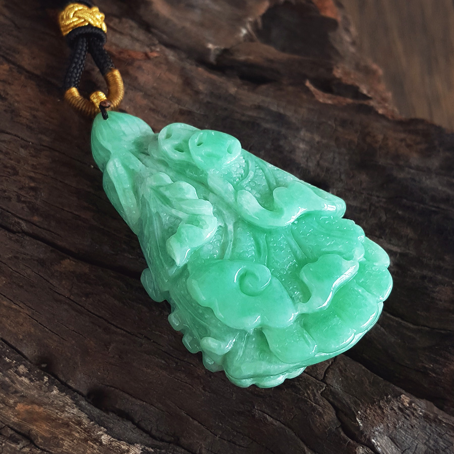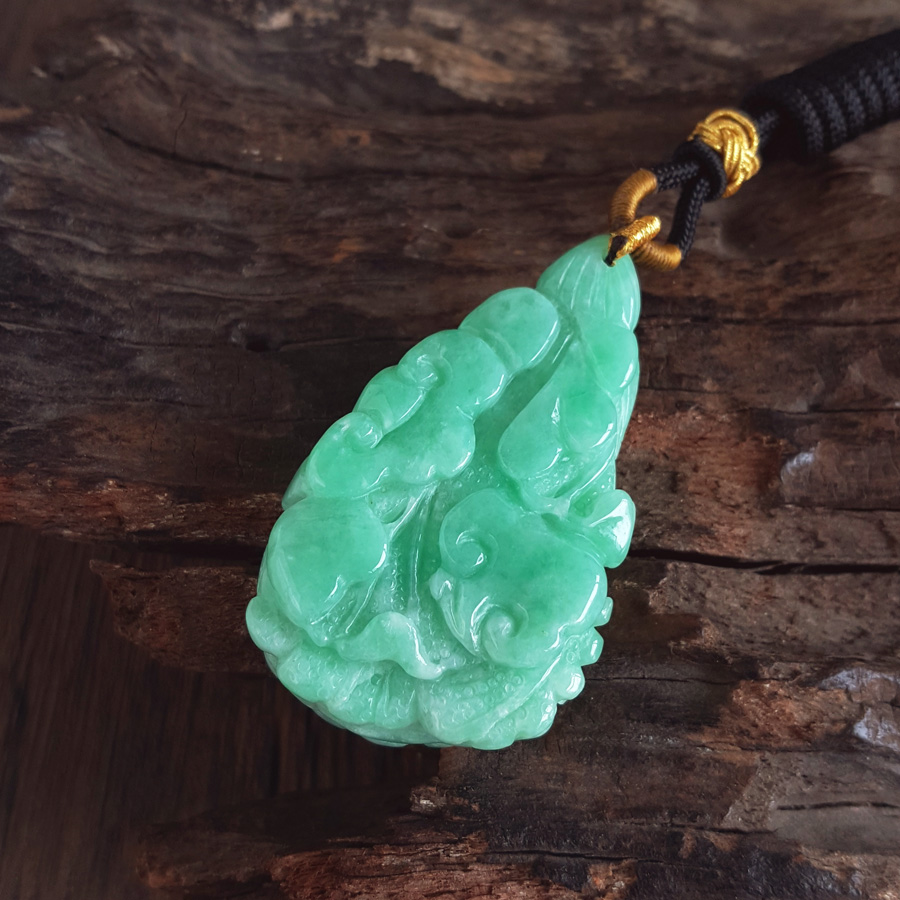 名称 | 天然细腻糯种雕祥云(吉祥如意)绿底翡翠吊坠项链 |