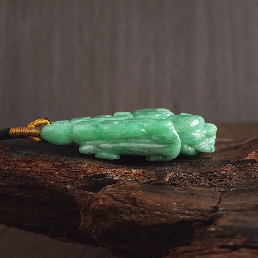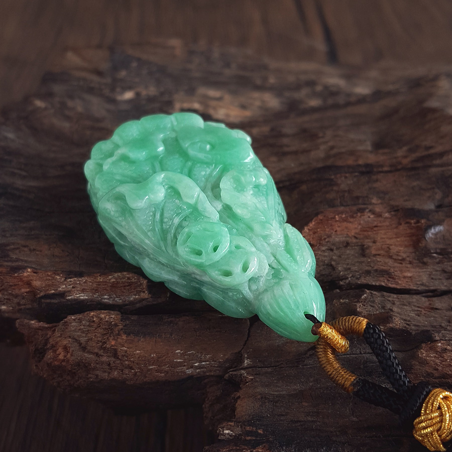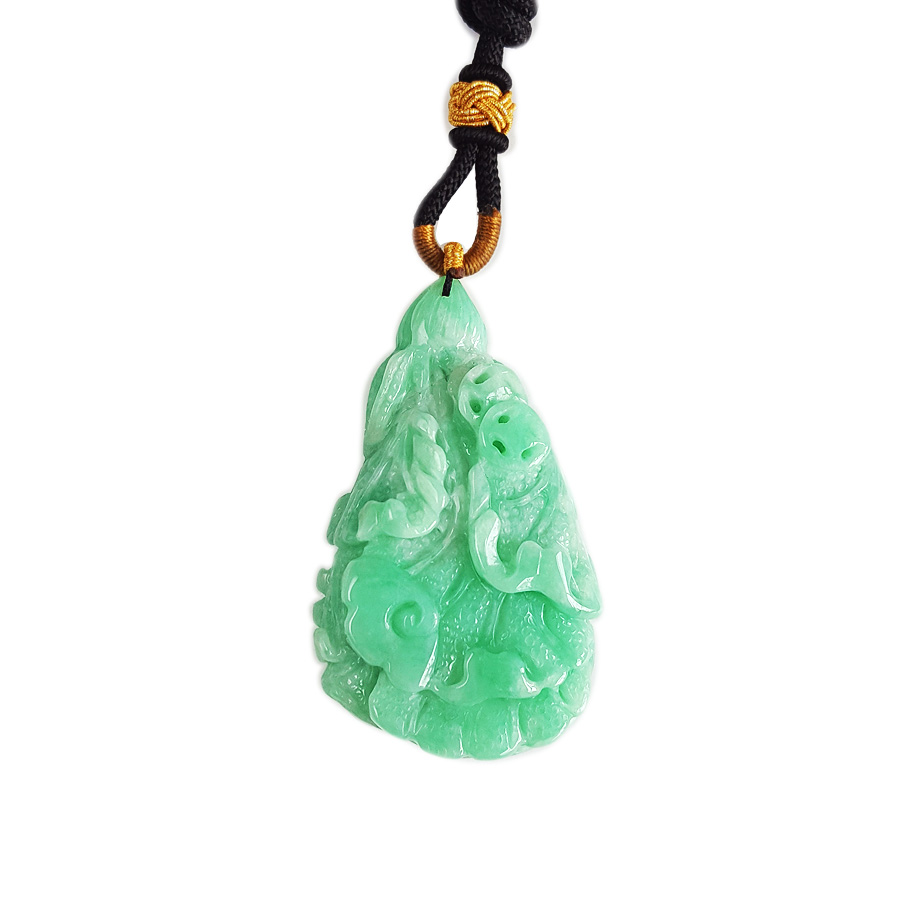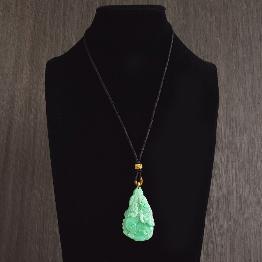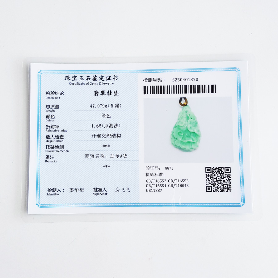 名称 | 天然细腻糯种雕祥云(吉祥如意)绿底翡翠吊坠项链 |
